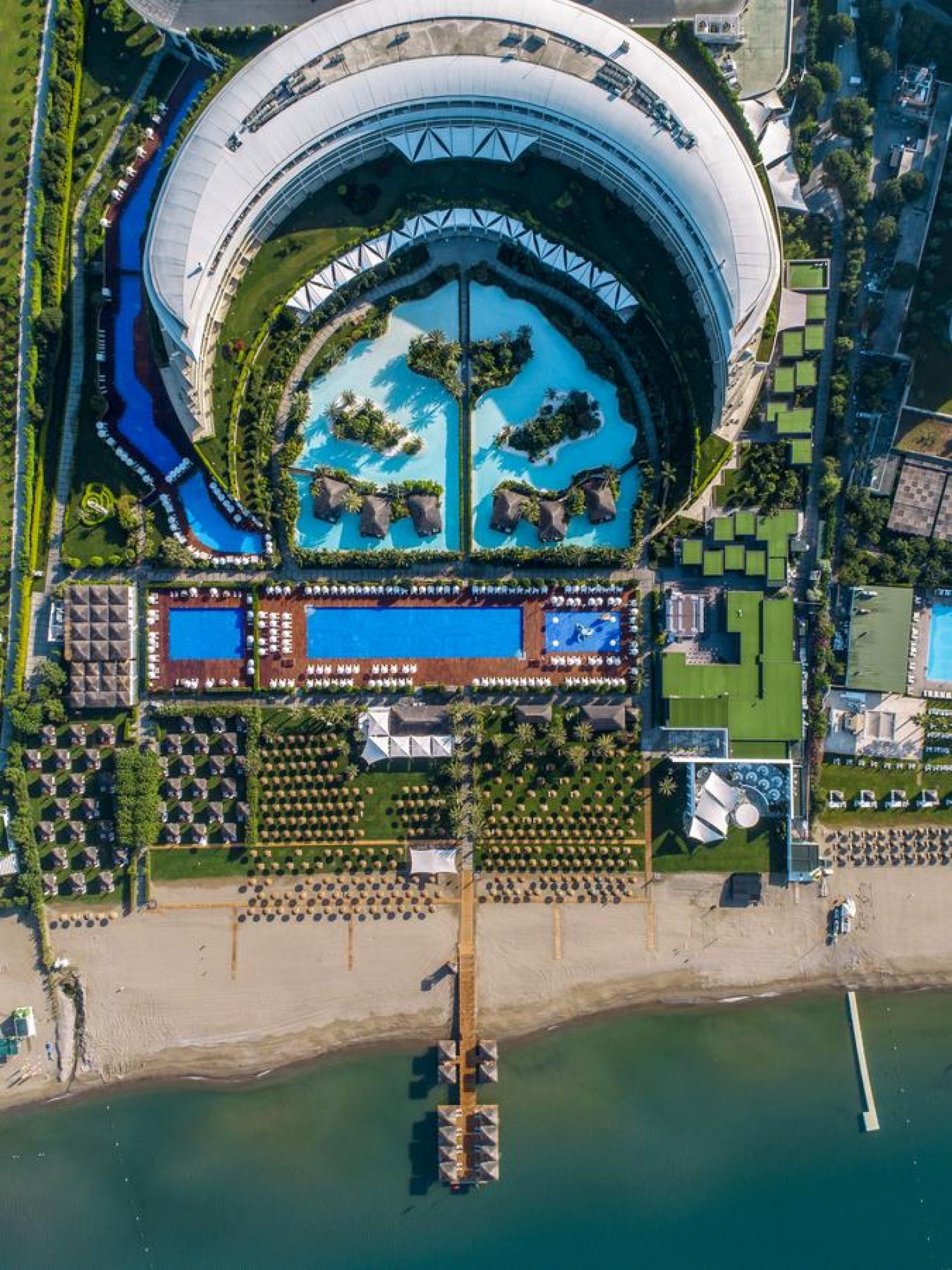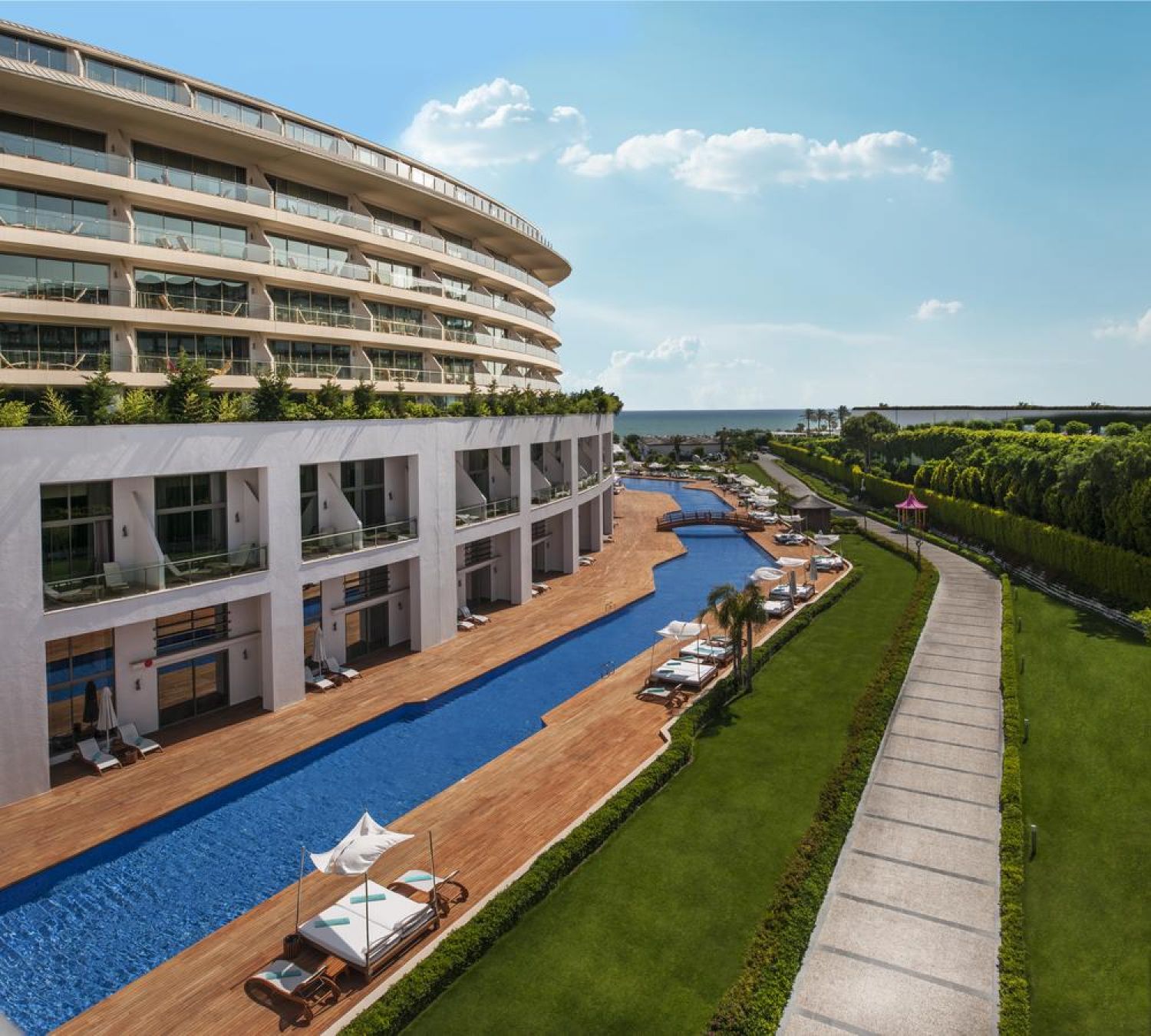 Хотелът разполага с 512 суита и вили.Стилните суити са обзаведени в успокояващи цветове и предоставят много пространство. Всички помещения за настаняване са оборудвани с: джакузи и душ, сешоар, халат, чехли, централен климатик, телевизор, телефон, мини бар (разхладителни напитки, бира, чипс, ядки, шоколад – зарежда се ежедневно, безплатно), сейф (в стаите, безплатно), балкон.