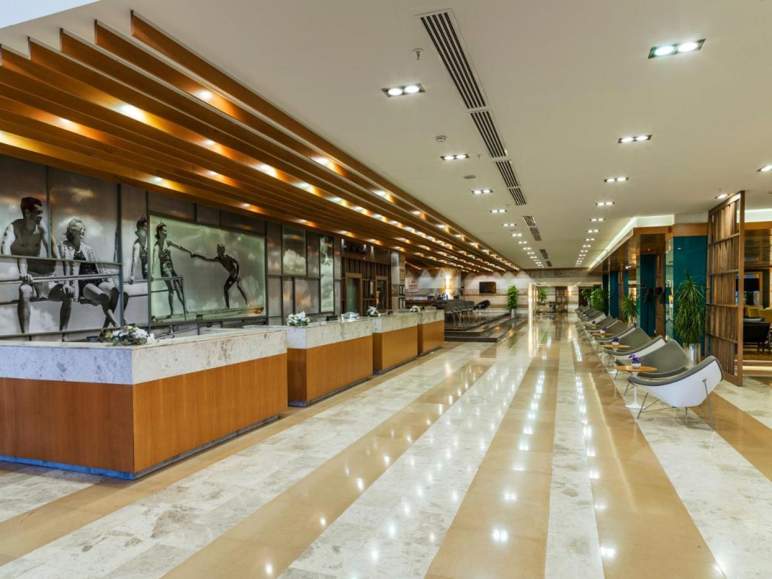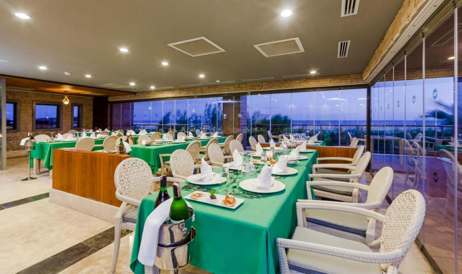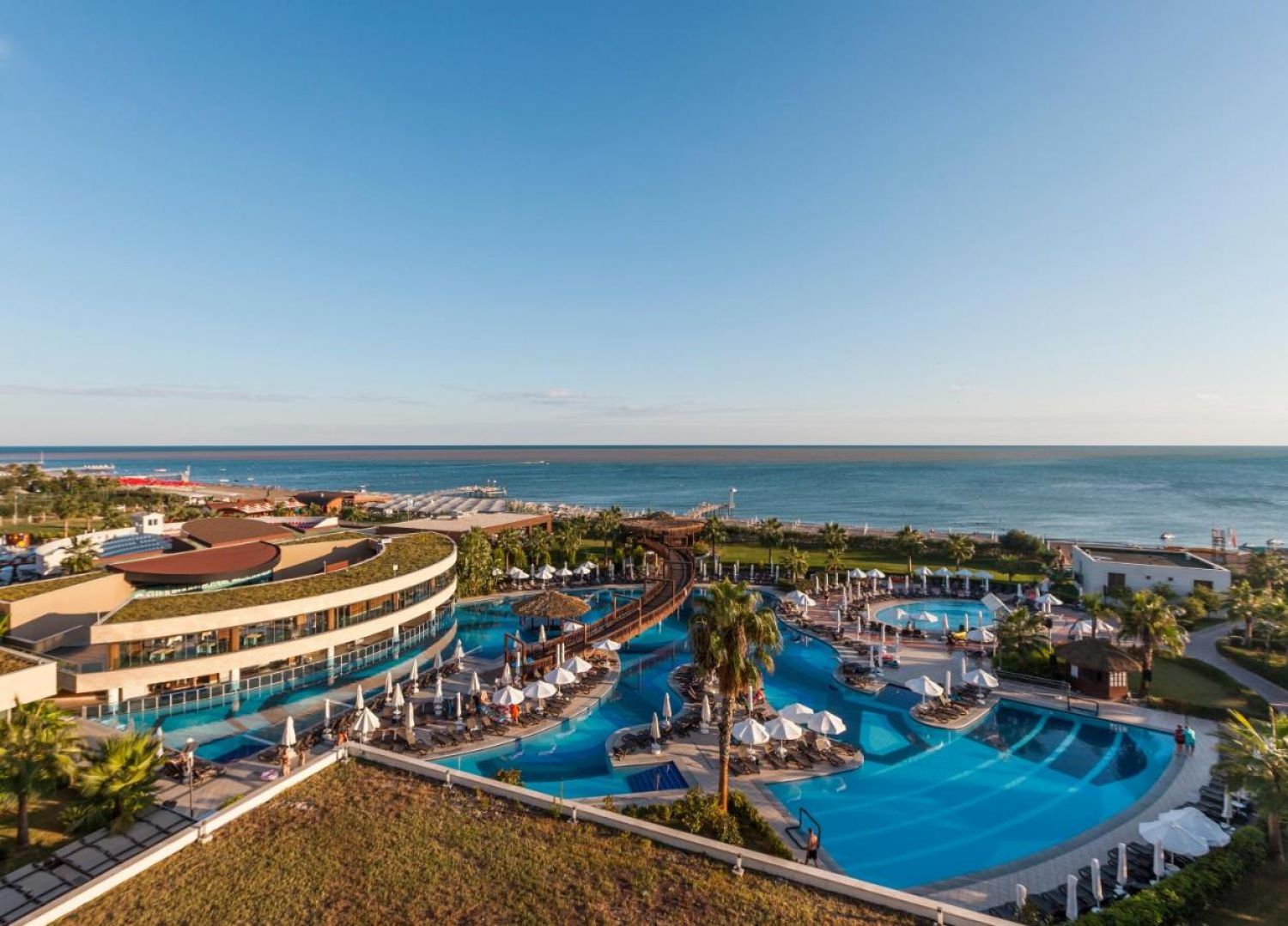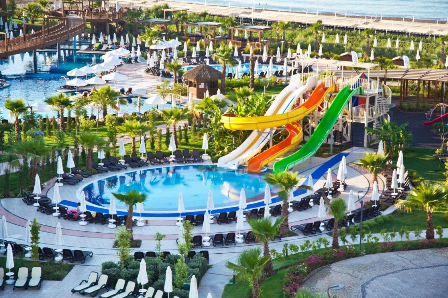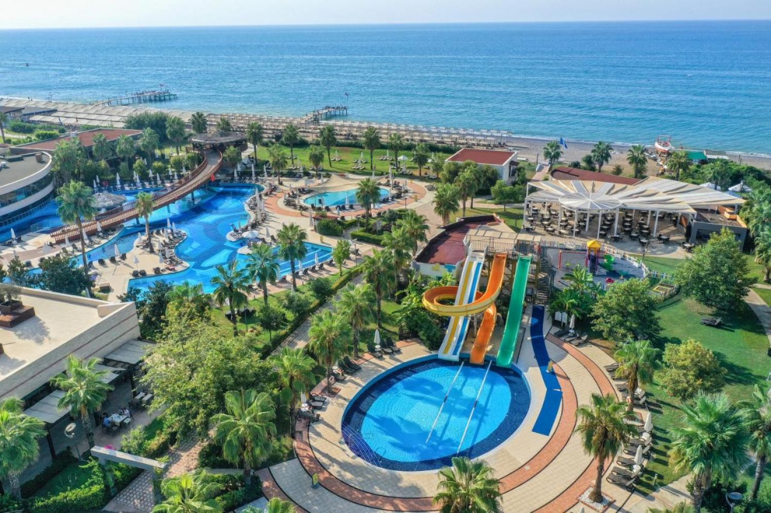 Основен ресторант, а-ла-карт ресторант(италиански, интернационален)- съгласно концепцията на хотела, 3 бара, витамин бар, диско бар, външен и вътрешен басейн, аквапарк, водни спортове, СПА център, сауна, хамам, фитнес, билярд, кино салон, тенис на маса, баскетбол, анимация, магазини, WIFI- съгласно концепцията на хотела.