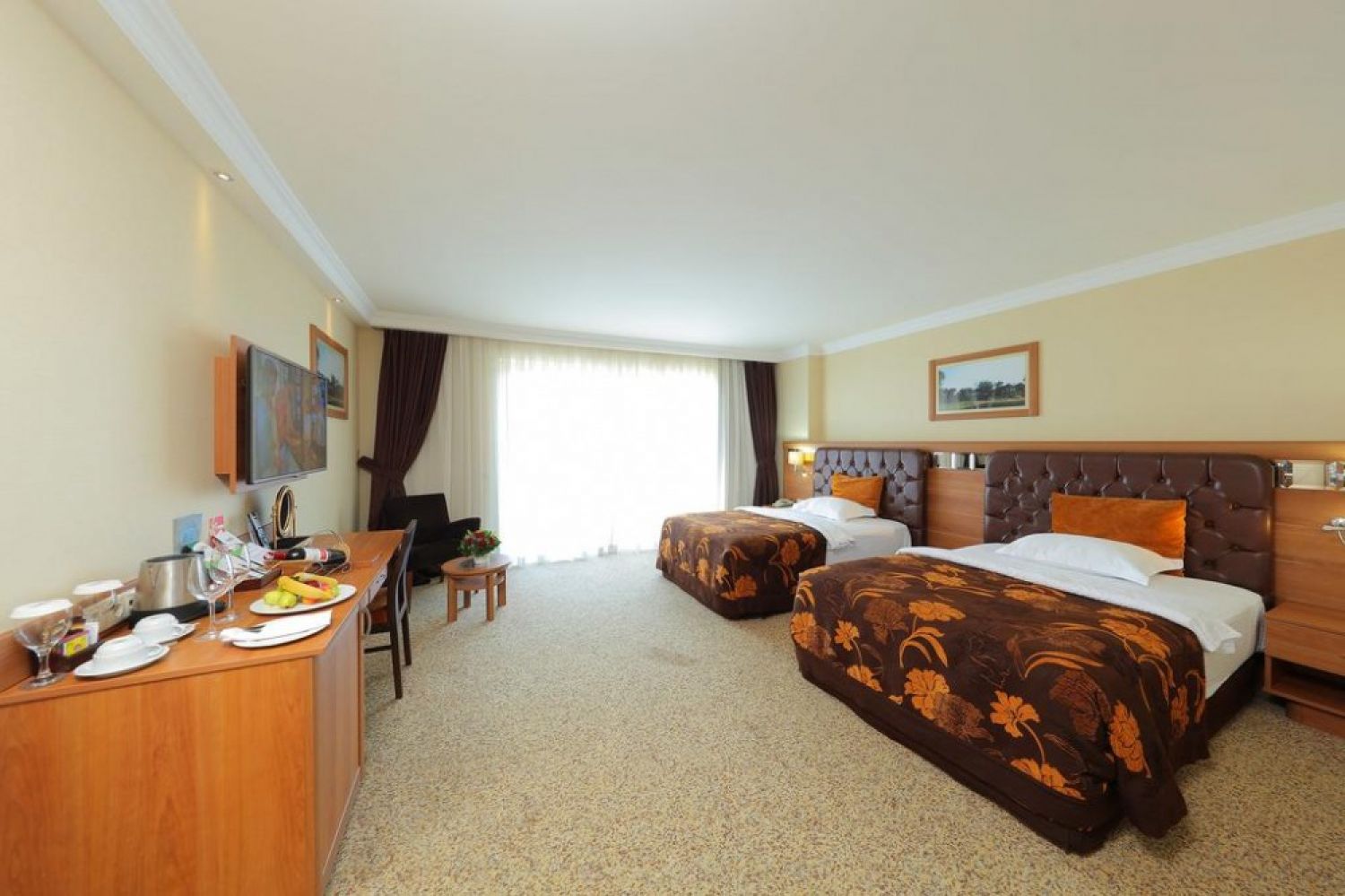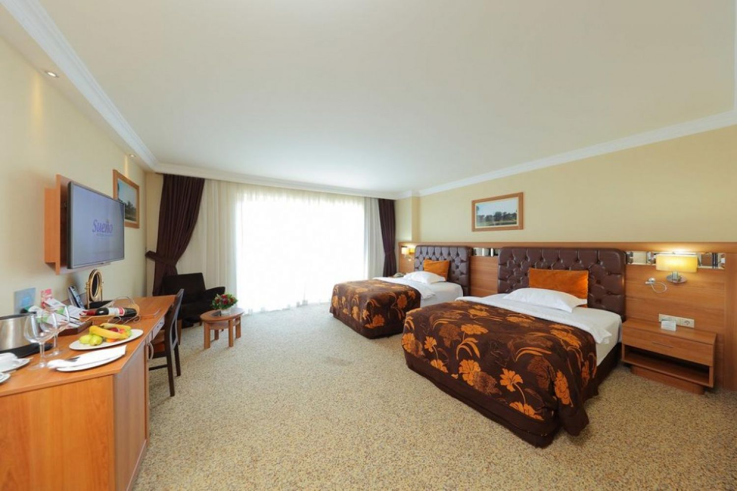 Основен ресторант, 2 а-ла карт ресторанта, 4 бара, открит и закрит басейн, библиотека, СПА - център, минимаркет, 3 футболни игрища, 2 конферентни зали За децата: детегледачка, мини клуб(4-12г.), открит басейн Безплатни услуги: сауна, турска баня, аеробика, баскетбол, волейбол Платени услуги: масаж, голф(пред хотела), видео игри, билярд, уроци по тенис, безжичен интернет, бизнес център, водни спортове.