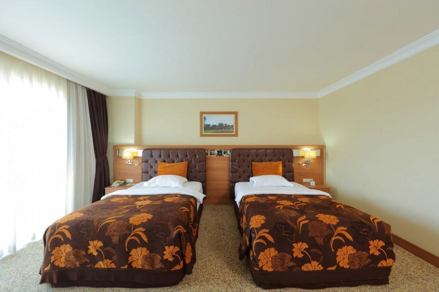 Хотелът разполага с общо 174 стаи. Всички стаи са оборудвани със: централен климатик, сателитна телевизия, телефон, баня с вана, минибар , сейф (платен). Почистване на стаите - ежедневно, смяна на спално бельо - 3 пъти седмично.