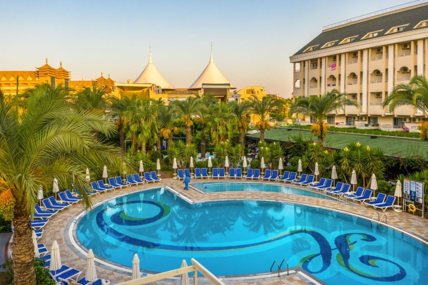 Разположение: Хотелът се намира в Евренсеки. Разположен на 200 м от морето и частния си пясъчен плаж, в голяма тропическа градина, на 6 км от Сиде и на 65 км от Анталия.