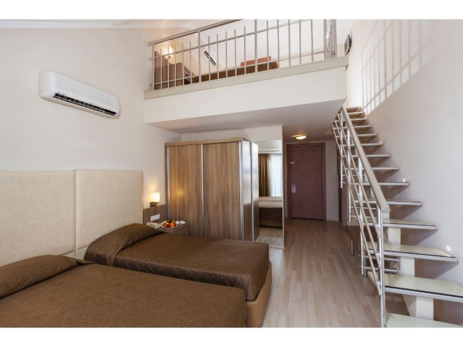 Dublex Family Rooms – 32 м2, семейните стаи тип Мезонет могат да бъдат, както в основната сграда така и в пристройката на последен етаж. Във входната зона има двойно легло или две единични легла. В горната част за спане има двойно легло. На двата етажа има самостоятелна баня с душ кабина. Стаите разполагат с електронна система за заключване на вратите, централен климатик, LCD телевизор, сейф под наем, електрическа кана с комплект за кафе и чай, телефон с директно избиране, WiFi интернет, баня с душ, сешоар, под - ламинат, балкон, минибар (вода, минерална вода се зарежда ежедневно.)