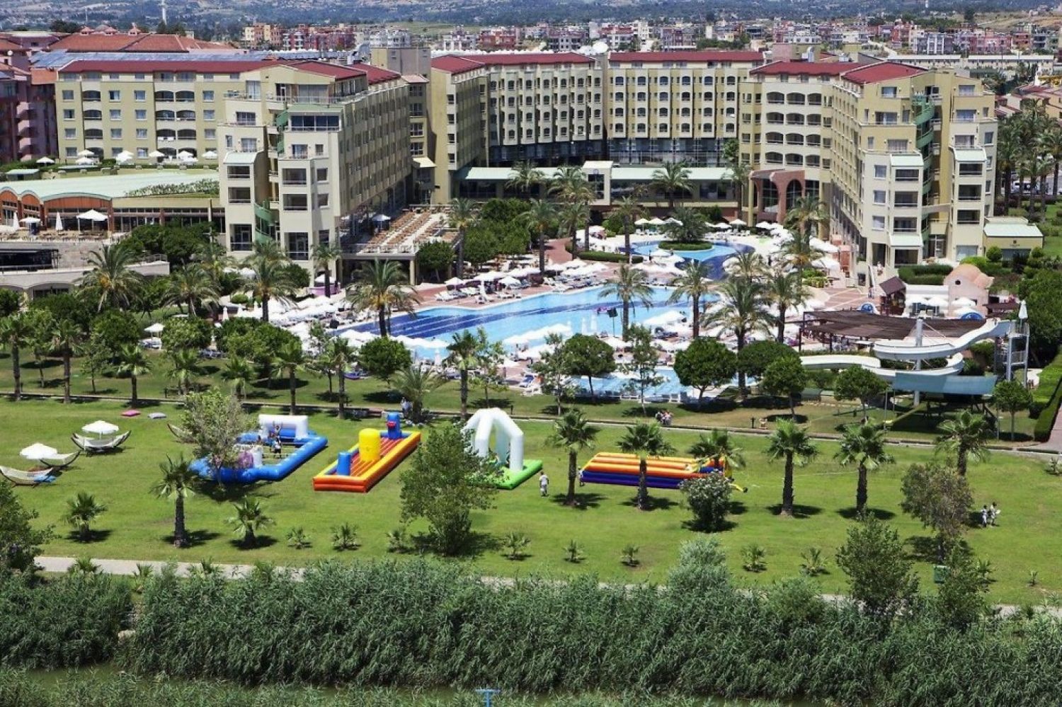 Разположение: Хотелът е открит през 2003 г. и е последно реновиран през 2022 г. с обща площ от 95 000 м2. Намира се на 75 км. от летище Анталия, в района на Сиде на 13 км. от Манавгат, на брега на морето.
