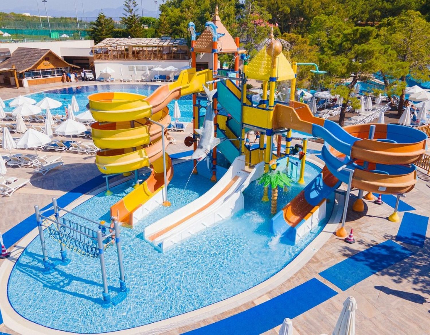 На територията на хотела: Oсновен ресторант (разполага и с диетична кухня), 6 ресторанта a - лa - карт (далекоизточен, рибен, италиански, мексикански - платени; турски, барбекю (от 15.06 – 15.09) – с предварителни записвания, посещението на всеки ресторант веднъж – безплатно, през зимата работят само 2 ресторанта), 13 бара (един от тях работи 24 часа, през зимата работят само 6 от тях), 6 открити басейна, закрит отопляем басейн (от ноември до април), 8 водни пързалки, лекарски кабинет, фризьор, магазини, пералня, химическо чистене, коли под наем, паркинг, 8 конферентни зали.