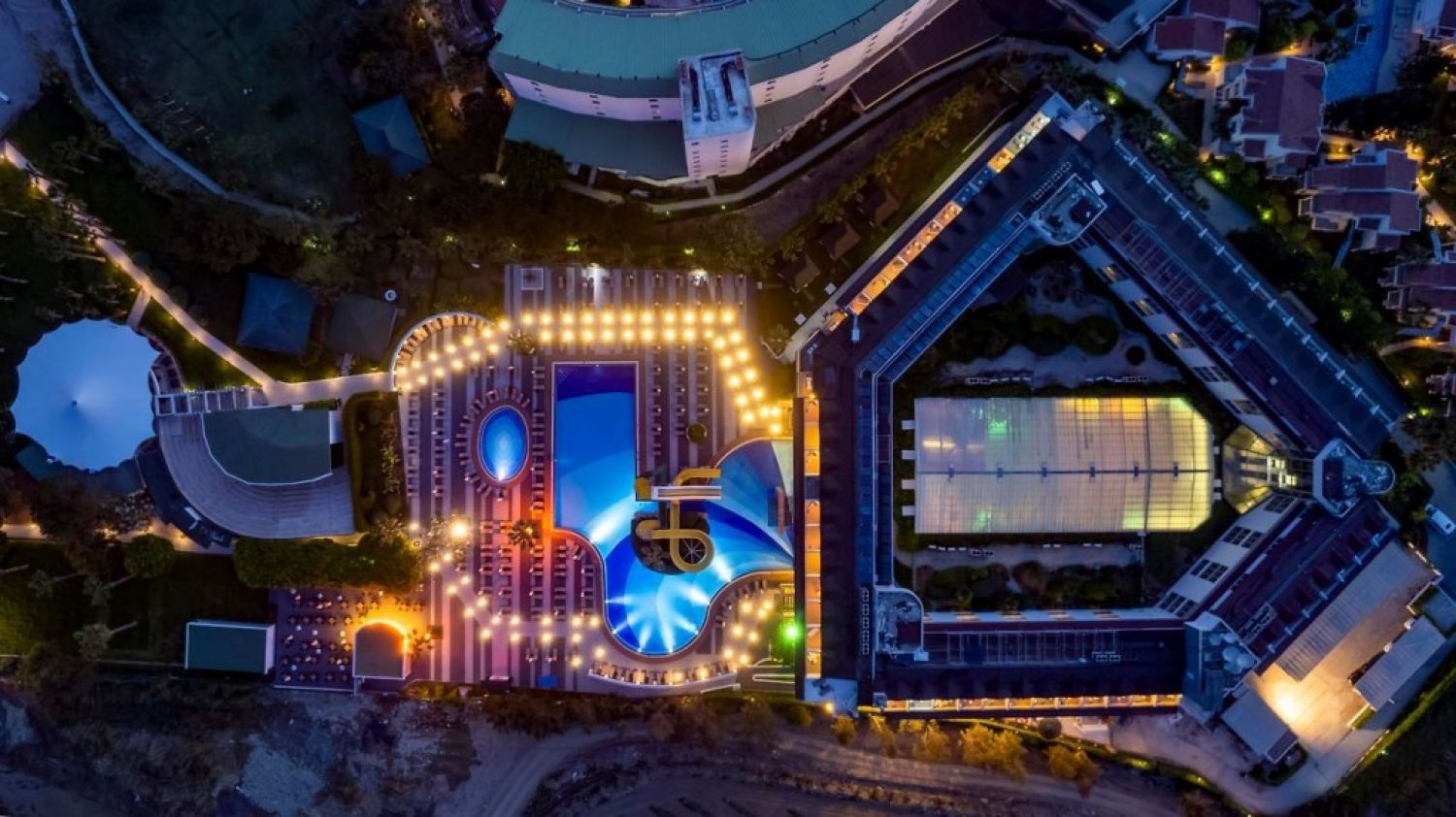 На територията на хотела: Основен ресторант, ботаник ресотрант (част от основния) рибен ресторант, 2 а – ла карт ресторанта ( турски и италиански) 4 бара, 1 диско бар, сладкарница, 2 открити басейна от които единия е детски, закрит басейн с джакузи, закрит детски басейн, мини – клуб (4-12) мини кино, анимация, СПА център, конферентна зала, салон за красота, обмяна на валута