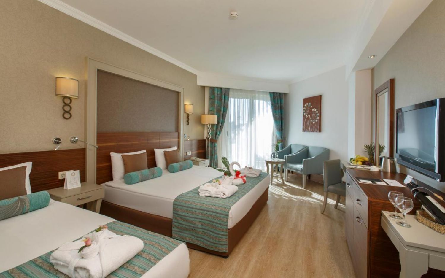 Основен ресторант, 1 а-ла-карт ресторант (турски/италиански/рибен – срещу заплащане), снек бар на плажа, сладкарница, 4 бара, 3 открити и 1 закрит басейн, аквапарк с 6 водни пързалки, СПА център, магазини, паркинг.