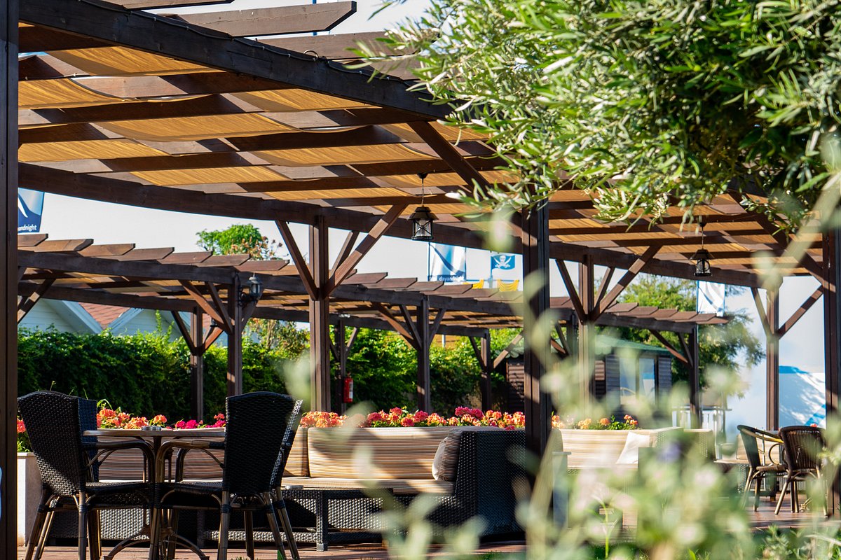 Собствен пясъчно-чакълест плаж. Чадъри, шезлонги, матраци н а плажа и при басейна– безплатно.