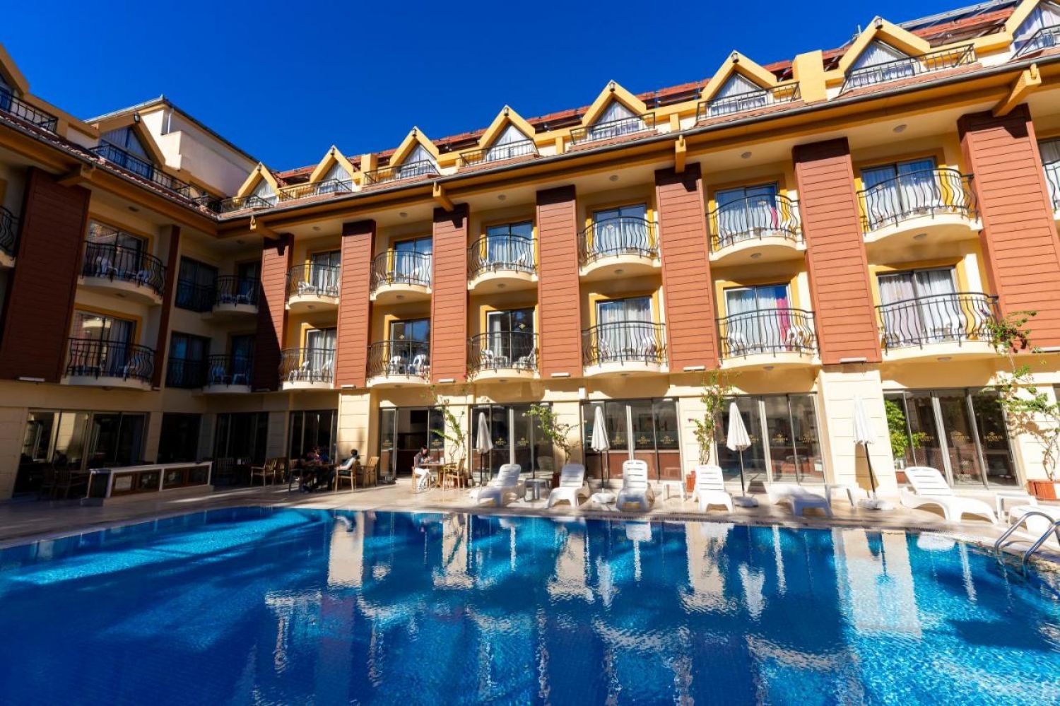 Хотелът е разположен на 55 км. от Анталия, на 100 м. центъра на Кемер, на 220 м. от брега на морето. Построен през 2006 г. с обща площ 2100 м2.