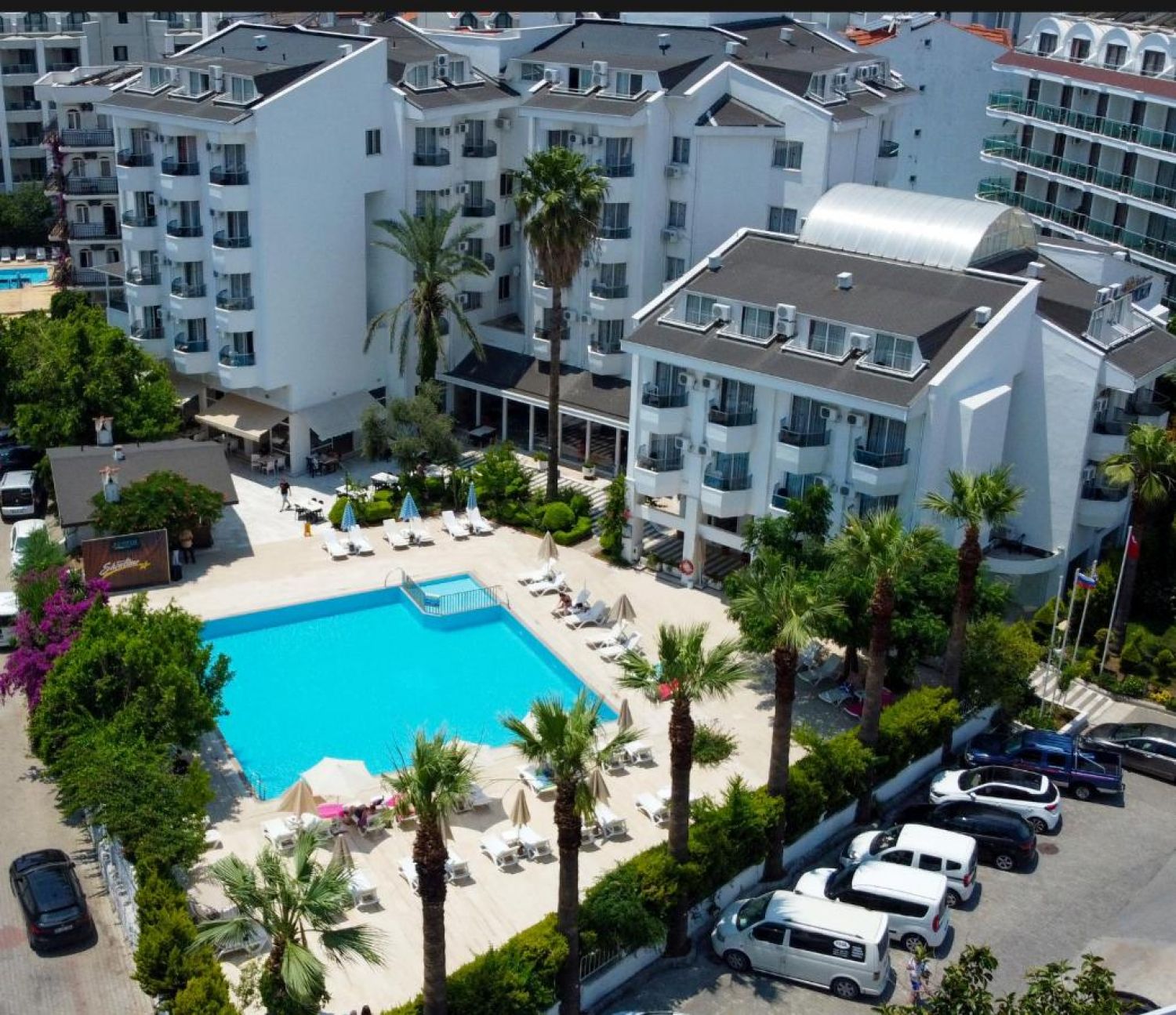 Хотелът се намира на 122 км. от летище Милас, на 96км от летище Даламан, на 700 м. от центъра на Мармарис, на 50 м. от морския бряг. Построен през 1987 г. с обща площ от 3 300 м2, последно реновиран 2014 г.