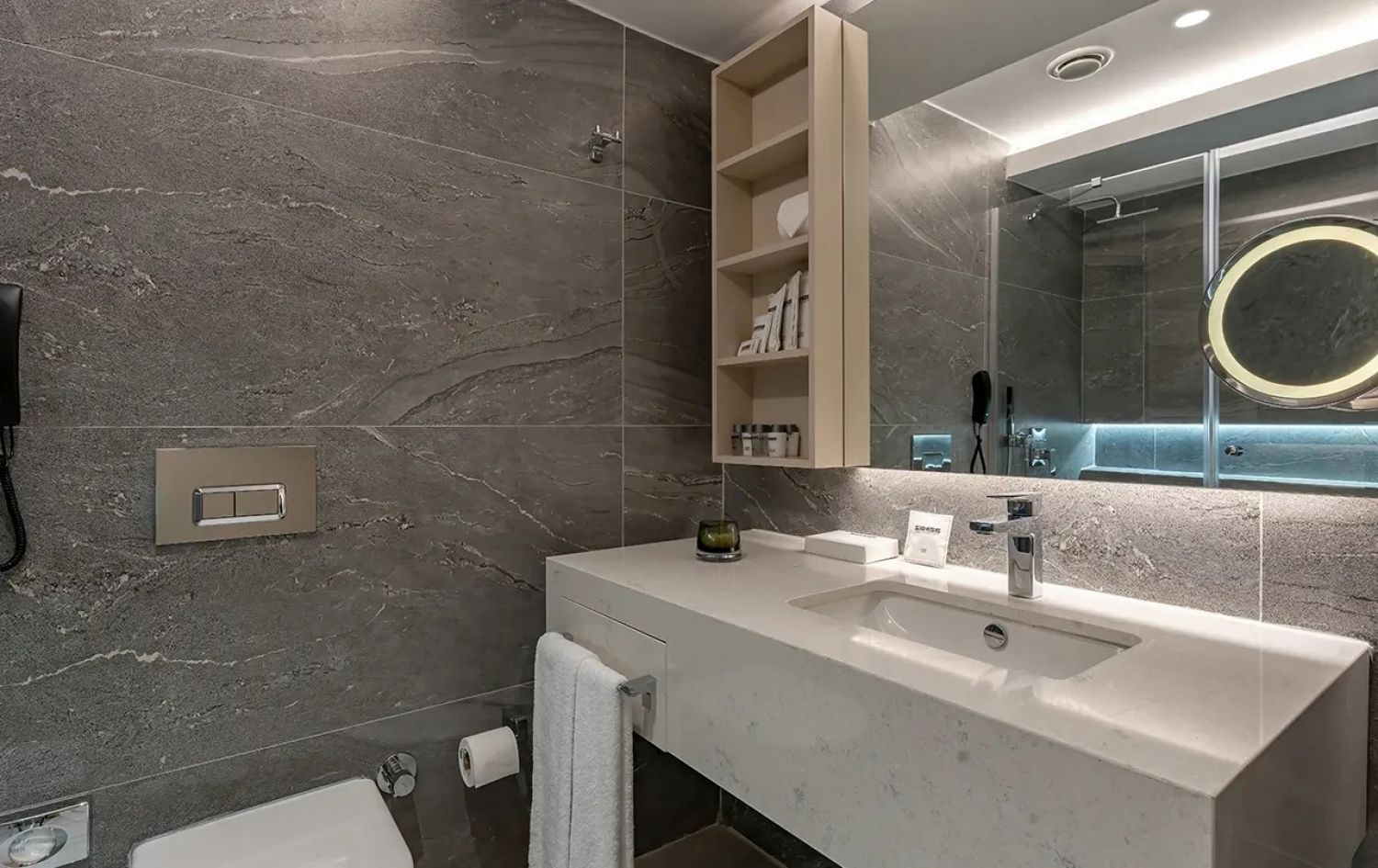 Всички стаи са оборудвани с климатик, телевизор, телефон, баня с душ, сешоар, сет за чай/кафе, минибар (безплатен), сейф (безплатен). Почистване на стаите и смяна на кърпите – всеки ден, смяна на спалното бельо – на всеки два дни.