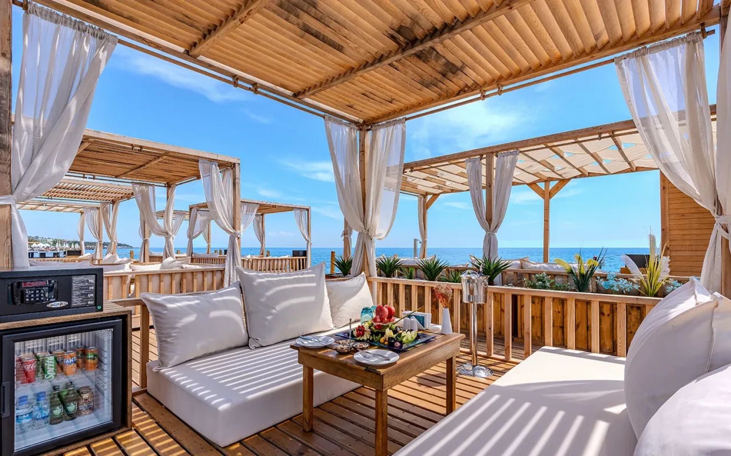 Собствен, пясъчно – чакълест, притежаващ сертификат „Син флаг“, с дължина на плажната ивица 200м. Чадъри, шезлонги и плажни кърпи на плажа и при басейна – безплатно.