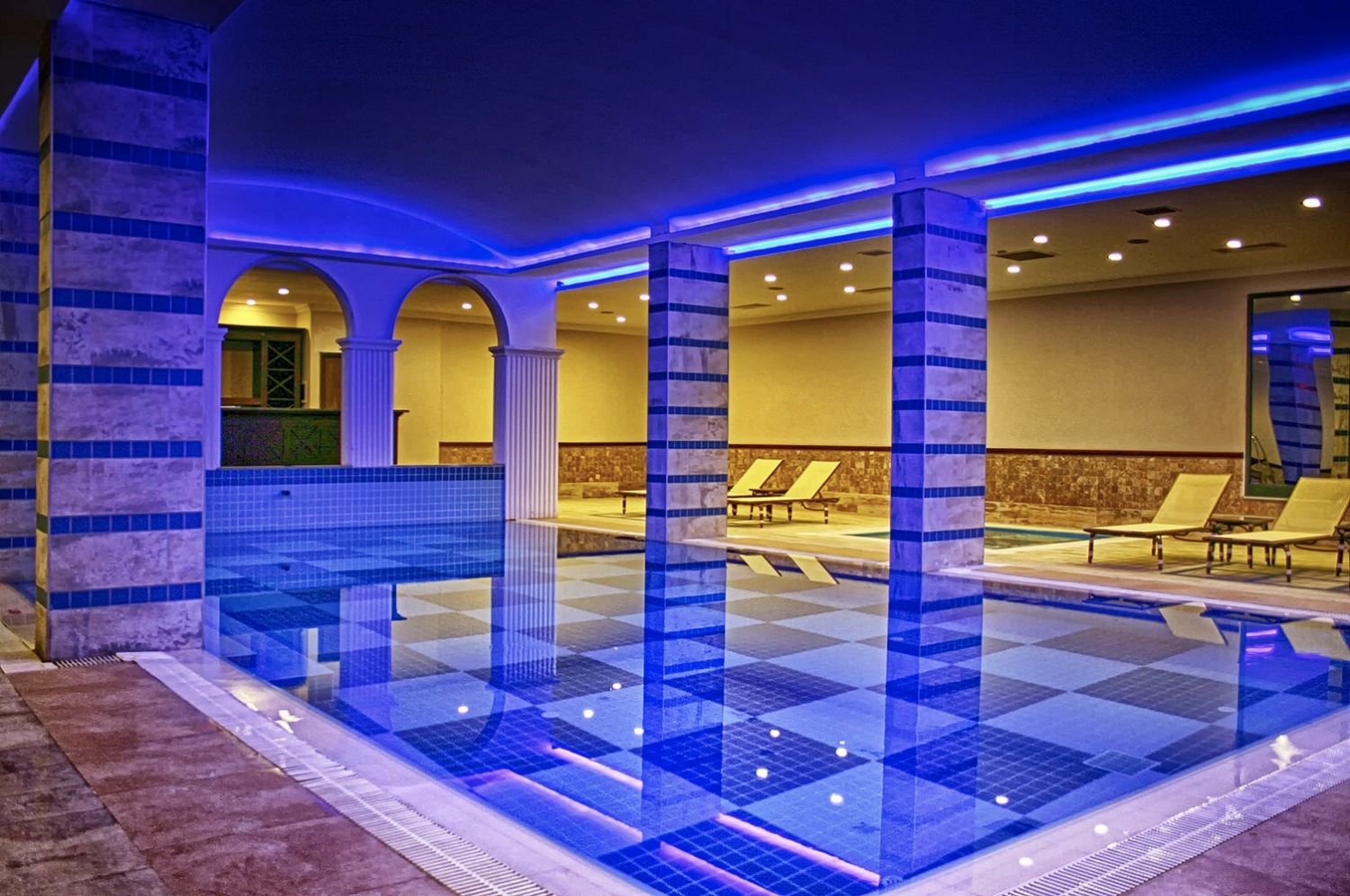 Основен ресторант, 3 а-ла-карт ресторанта (италиански, турски, рибен – срещу допълнително заплащане), 3 снек ресторанта - възможност за приготвяне на специални ястия за гости с алергии, 8 бара, сладкарница, 5 открити басейна, вътрешен отопляем басейн, аквапарк с 8 пързалки, фитнес, СПА център, магазини, 3 конферентни зали с оборудване, Wi-fi интернет – според концепцията на хотела.