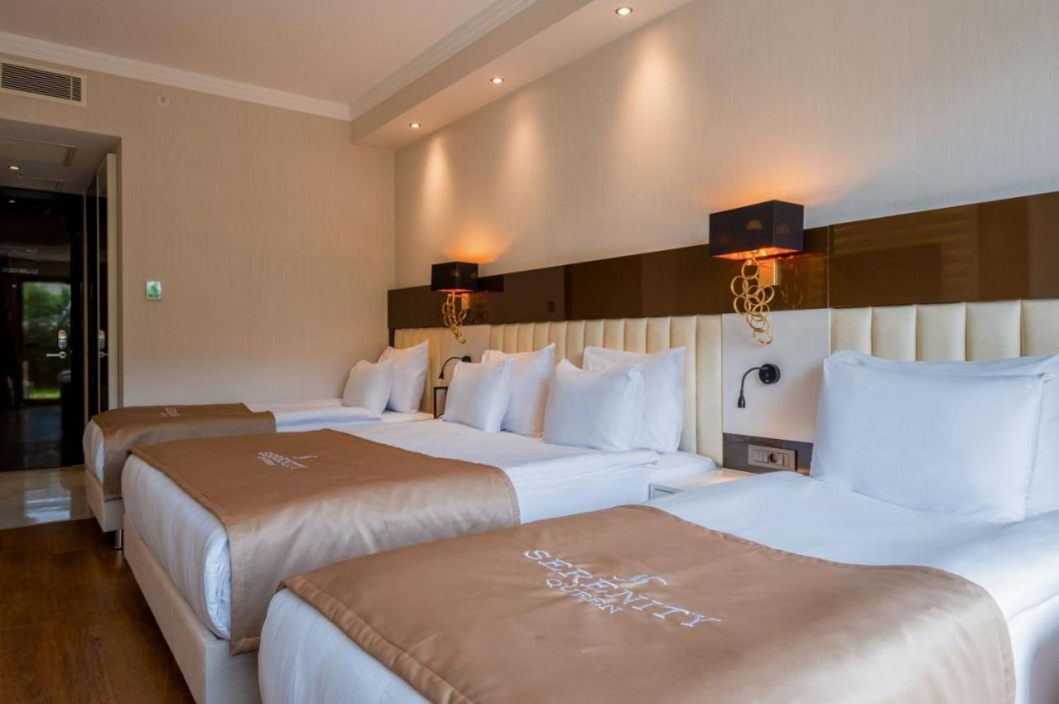 От които 5 Promo room (без балкон – 22 м2), 30 Deluxe sea view (изглед море 26 - 30 м2), 160 Deluxe room, 16 Garden room with Terrace - с тераси, 20 Junior Suite Room (хол + спалня 32 – 34 м2).
