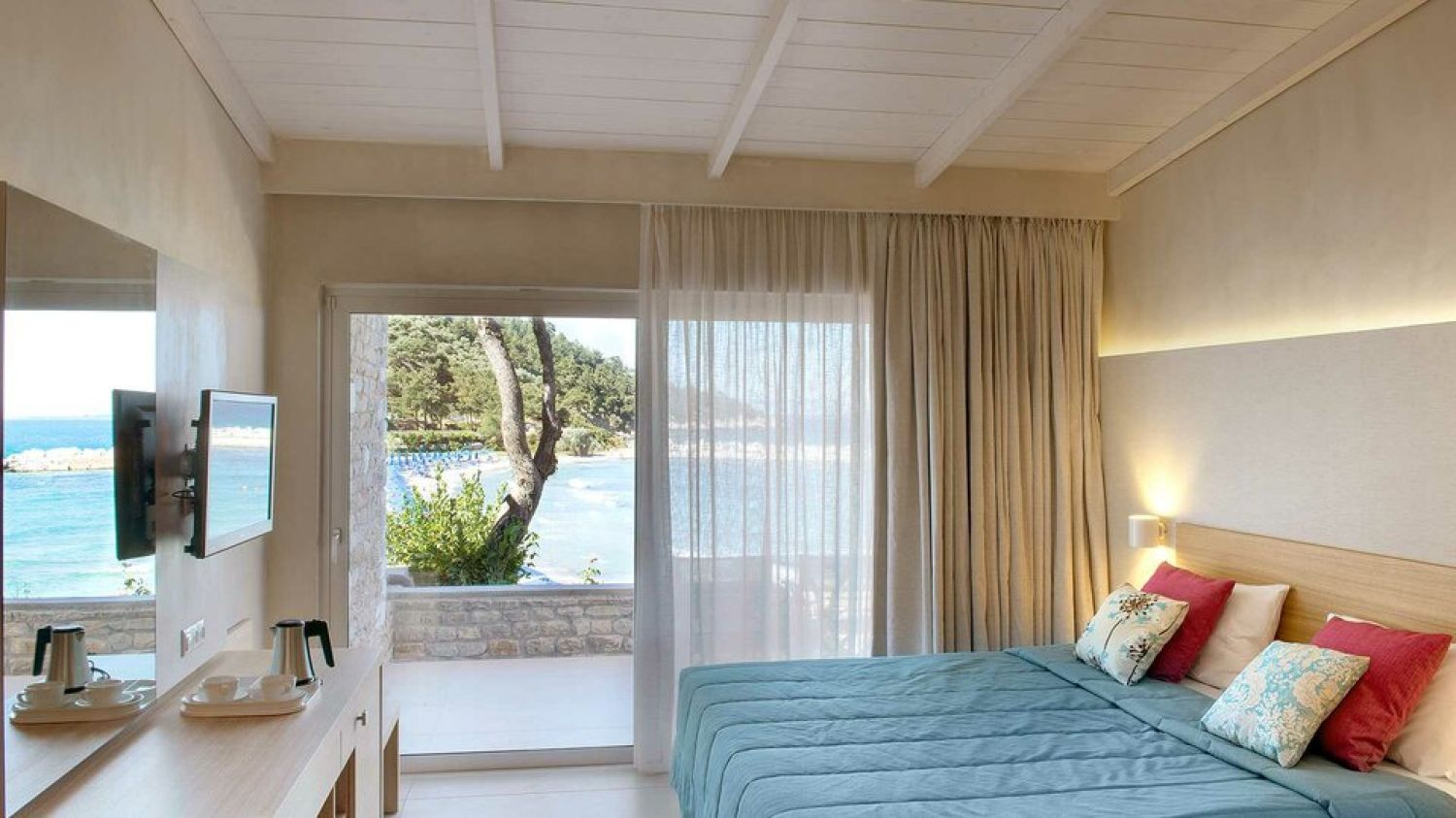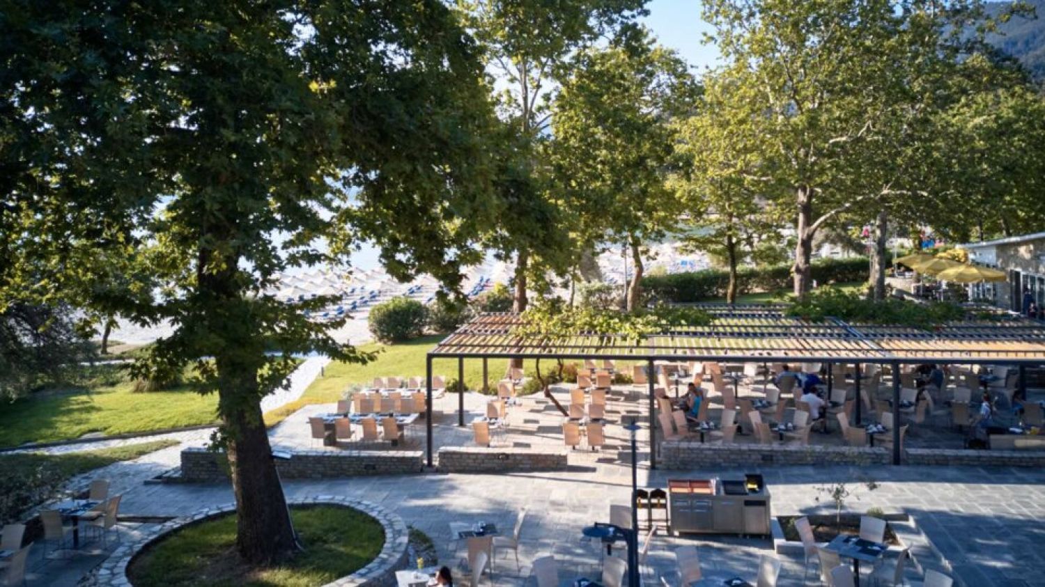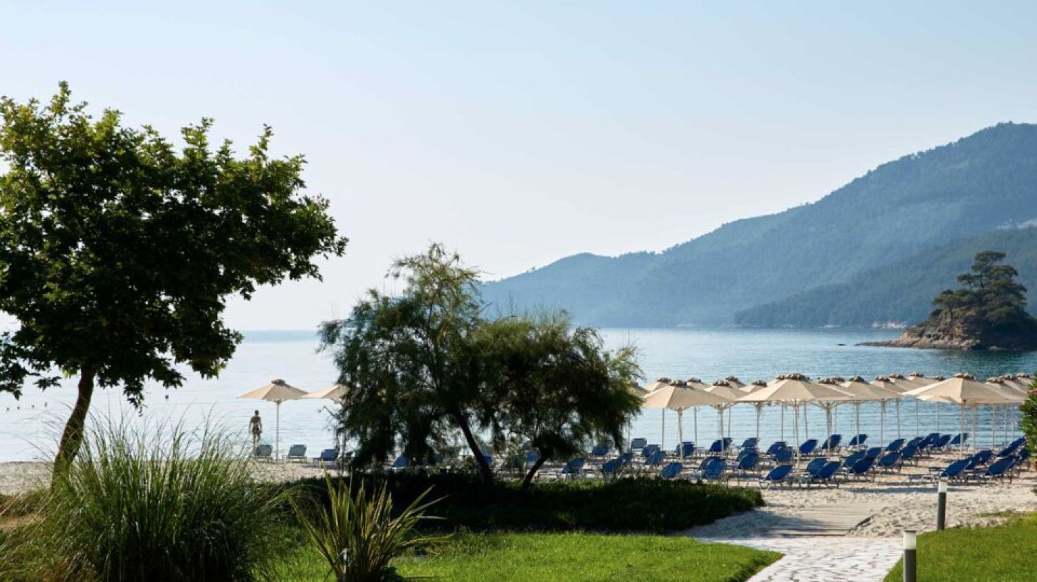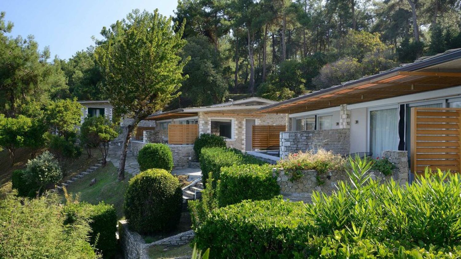 On sprawling grounds of rare natural beauty, dwelling on a pine-covered hillside that finally subsides into a scenic cove overlooking the Aegean sea, this polished resort is 2km from the Limenas port and 28km from the Kavala airport. Makryammos Bungalows takes up 30 acres of forrest land untouched by time, with more than 40 ground floor bungalows inspired by local architecture, built in traditional style of stone and timber, surrounded by beautiful gardens stretching along the Makryammos bay. Newly renovated, these bungalows feature private verandas with amazing views of the sea or peace and quiet of the forest. Atmospheric, relaxing and fun bars and restaurants promise a gastronomic journey of the Greek and international cuisine. Kids club offers a team of professionals to guide the little guests through their quest to explore the secrets of the sea, meet the playful deer and peacocks inhabiting the resort or collect the fragrant herbs at the resort's greenhouse. Families and couples alike are welcome!