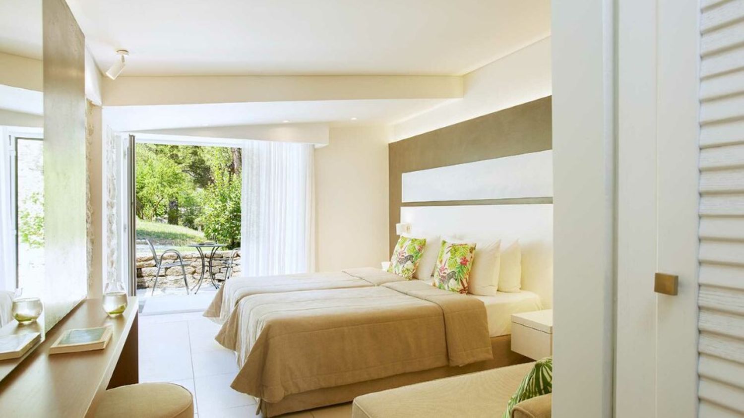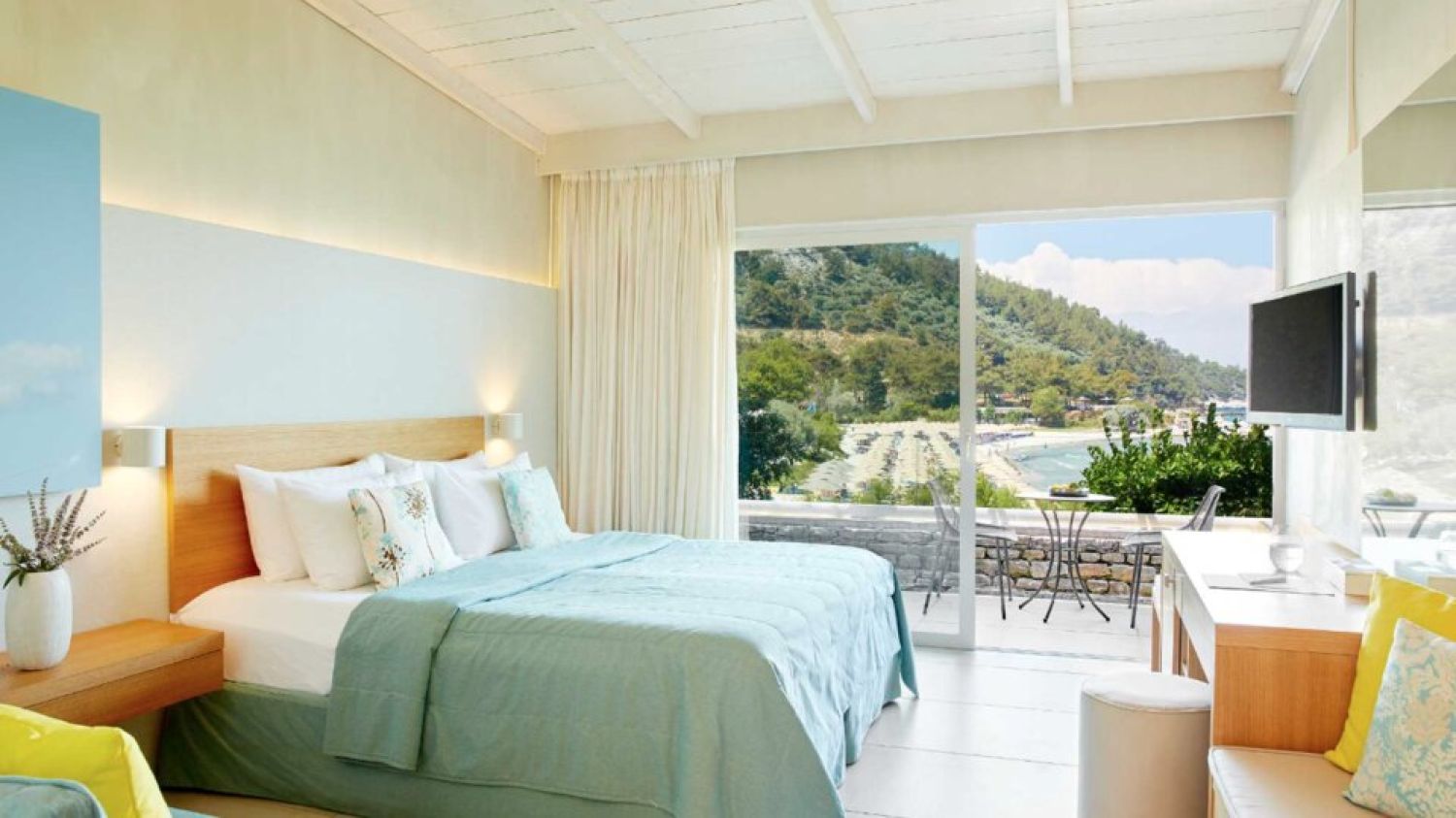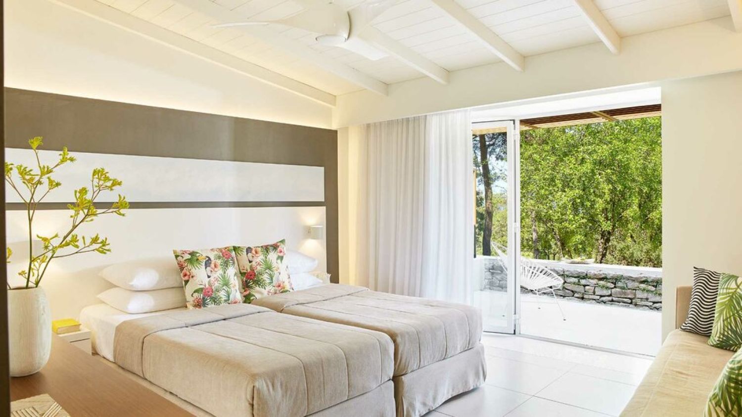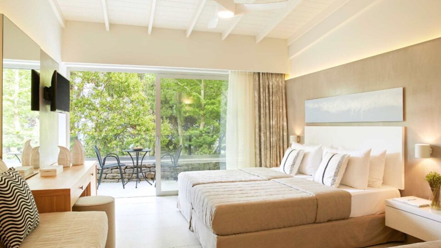 On sprawling grounds of rare natural beauty, dwelling on a pine-covered hillside that finally subsides into a scenic cove overlooking the Aegean sea, this polished resort is 2km from the Limenas port and 28km from the Kavala airport. Makryammos Bungalows takes up 30 acres of forrest land untouched by time, with more than 40 ground floor bungalows inspired by local architecture, built in traditional style of stone and timber, surrounded by beautiful gardens stretching along the Makryammos bay. Newly renovated, these bungalows feature private verandas with amazing views of the sea or peace and quiet of the forest. Atmospheric, relaxing and fun bars and restaurants promise a gastronomic journey of the Greek and international cuisine. Kids club offers a team of professionals to guide the little guests through their quest to explore the secrets of the sea, meet the playful deer and peacocks inhabiting the resort or collect the fragrant herbs at the resort's greenhouse. Families and couples alike are welcome!
