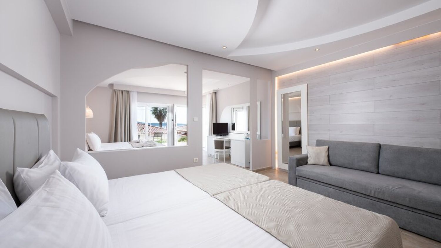 Alexandros Palace Hotel & Suites, one of the finest hotels in the beautiful area of Tripiti, near Mount Athos, is built on a lush green slope that reaches a golden beach and sparkling blue waters. Located in one of the most beautiful areas in Greece, embraced by the pure, Greek nature and its unspoilt, raw beauty, Alexandros Palace is ideal for families with children, couples, food and nature lovers. The Alexandros Palace hotel is characterized by both traditional and modern architecture and style. The hotel comprises of 243 guest rooms in total, all modernly furnished with contemporary equipment, scattered among the beautiful sloping low-rise buildings. The two-storey building of the new wing, comprises of 97 luxurious hotel rooms with unique style, combining refined modern architecture with retro elements and all the comforts of a 5-star hotel. The hotel is located 100 km from the Thessaloniki international airport and 7km from the village of Ouranopolis, the gates of the Mount Athos.