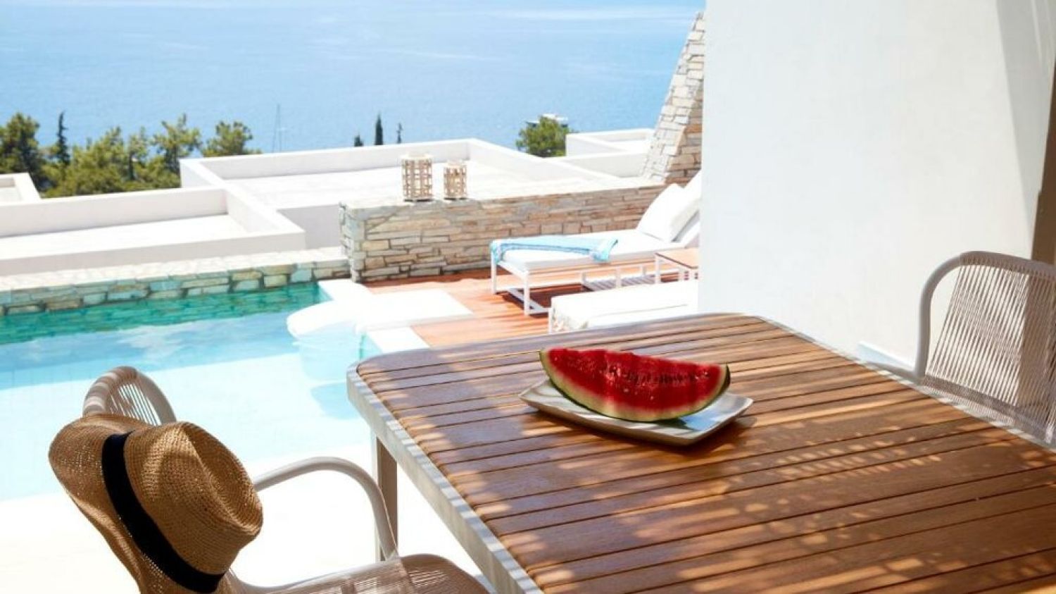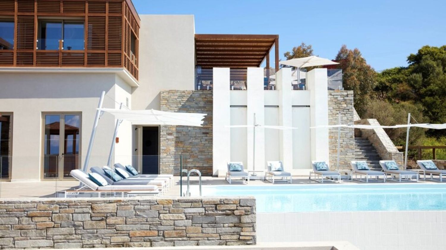 Eagles Villas in Halkidiki Greece is the personification of luxury, freedom, exclusivity, and privacy under the glittering Mediterranean sun. Villas come up with breathtaking views to the bay, different dining options and a rich activities programme. Each luxurious villa features its own state-of-the-art private pool. Explore and dip your toes and soul into Halkidiki where a wealth of experiences takes centre stage. Discover the cobalt blue waters, lush green hills, local cuisine, and everything in between and beyond. Eagles Villas - Small Luxury Hotels of The World guests are also part of the whole Eagles Palace resort, so they are entitled to use its expansive facilities such as the Eagles award winning spa, the large private beach, water sports, PADI diving centers and the four different renowned Eagles Palace restaurants and bars. Ouranopolis village is 4,5km away and the Thessaloniki airport is 112 km away.