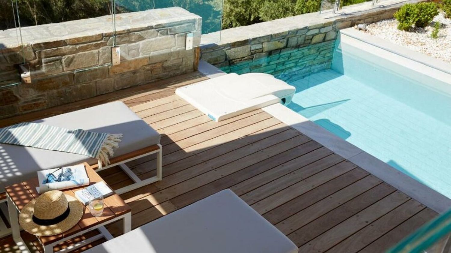 - Umbrellas and beach sets: on pool