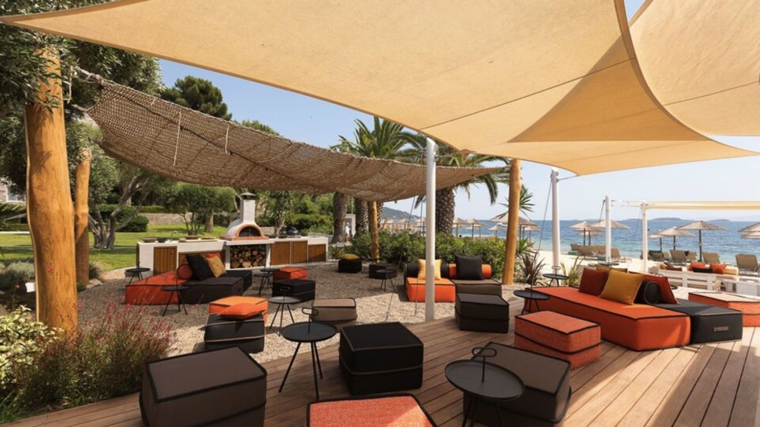 - Umbrellas and beach sets: order from beach bar