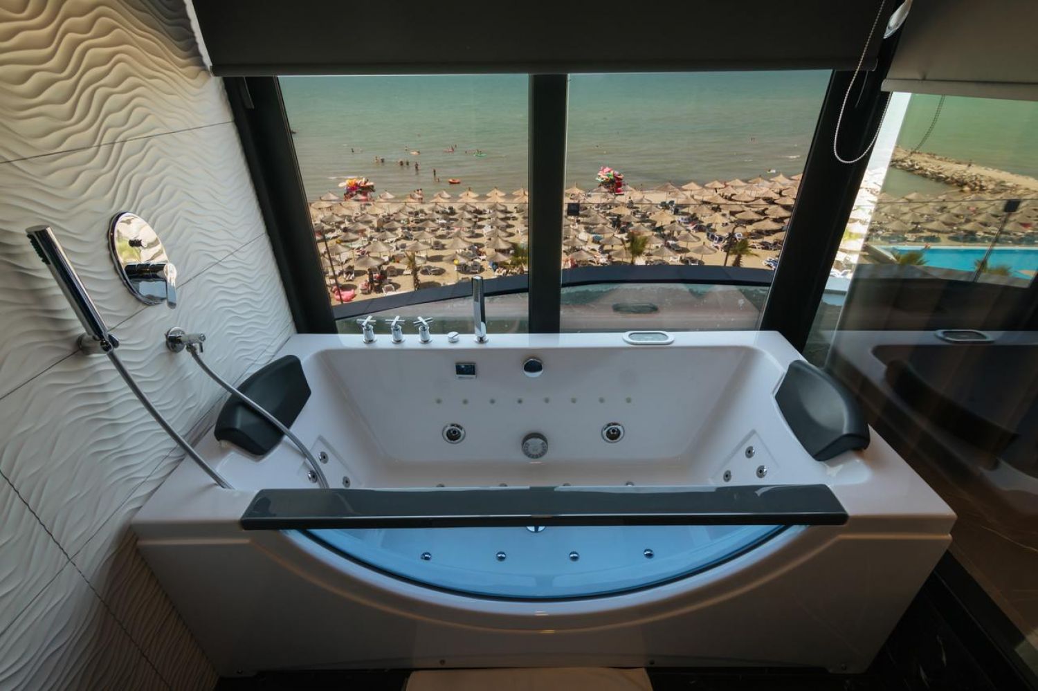 Собствен пясъчен плаж. Чадъри, шезлонги и плажни кърпи на плажа и басейна - безплатно.