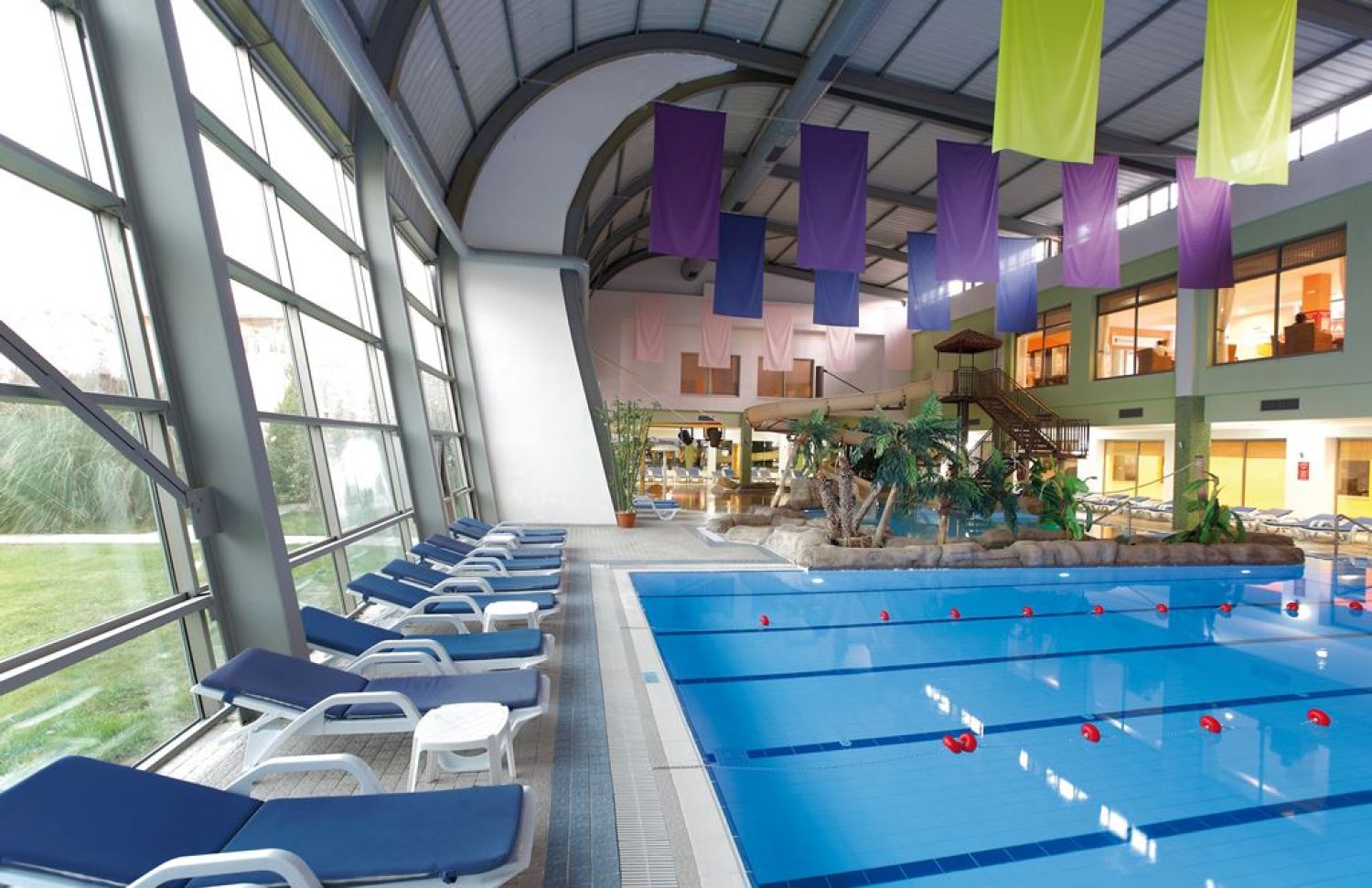 Детски клуб и площадка за игри, огромен аквапарк с множество водни пързалки, басейни и атракции.