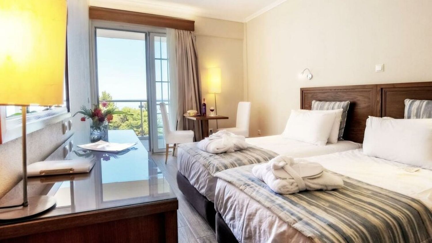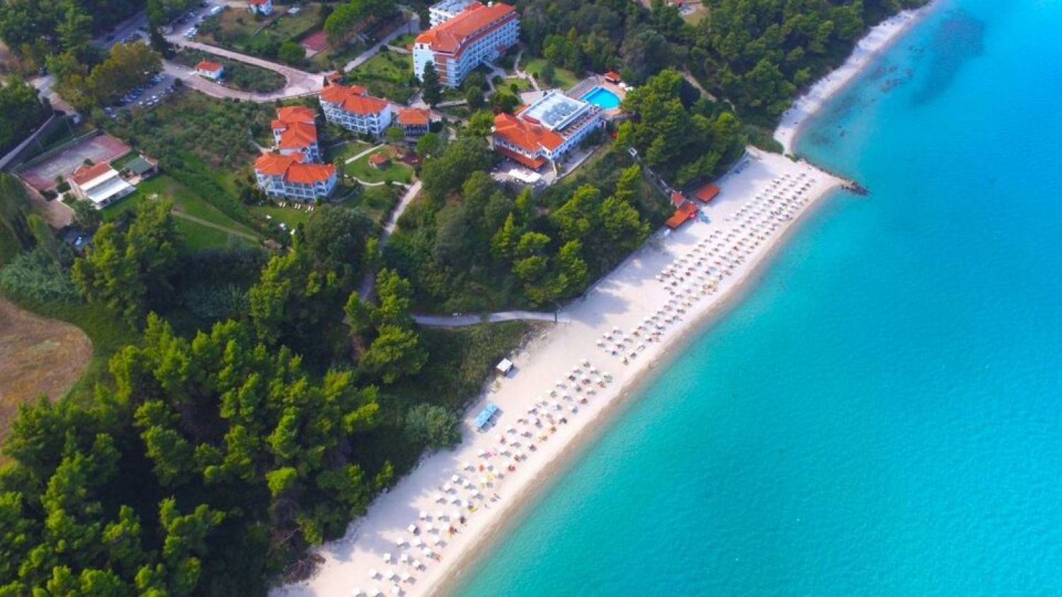 Perched atop a picturesque bay, amidst a serene pine forest, Alexander the Great hotel offers an intimate atmosphere, friendly staff and tasty delicacies based on the local cuisine. The hotel overlooks one of the most beautiful beaches of Kassandra peninsula, reachable by stairs or a small lift, at the disposal to all guests. Embracing environmentally friendly practices, the hotel proudly holds the Blue Flag & Green Key awards, seamlessly blending modernity with traditional charm in its recently refurbished rooms and common areas. The bustling village of Kriopigi is at 1.5km distance while the Thessaloniki airport is only an hour drive away, making Hotel Alexander the Great a haven of comfort and sustainability.