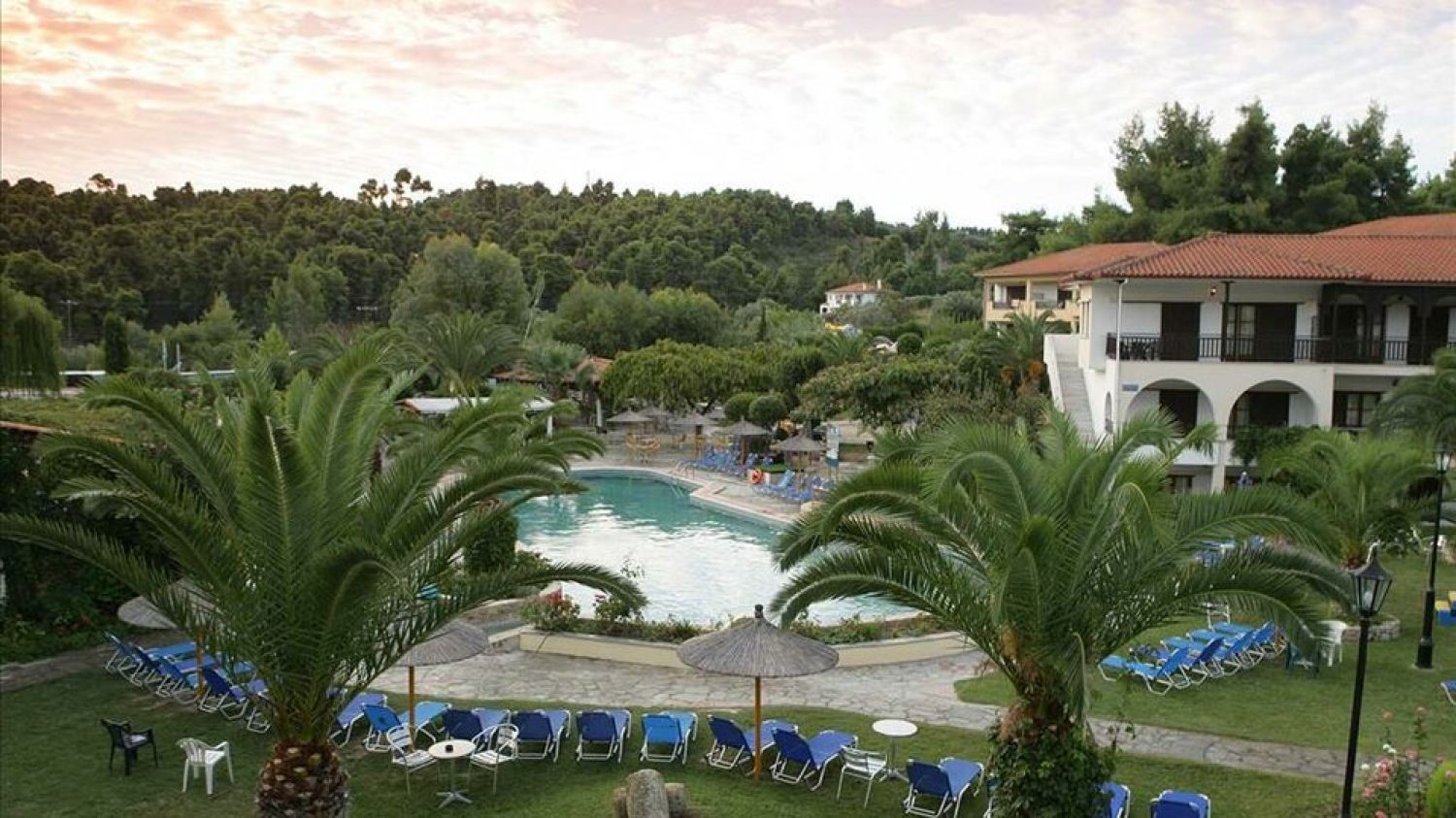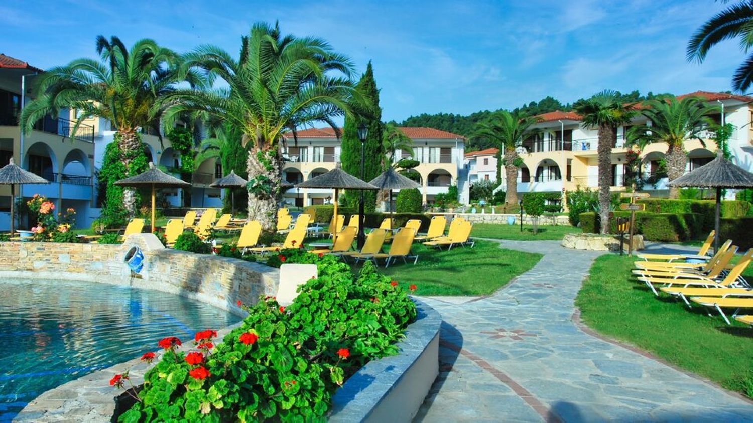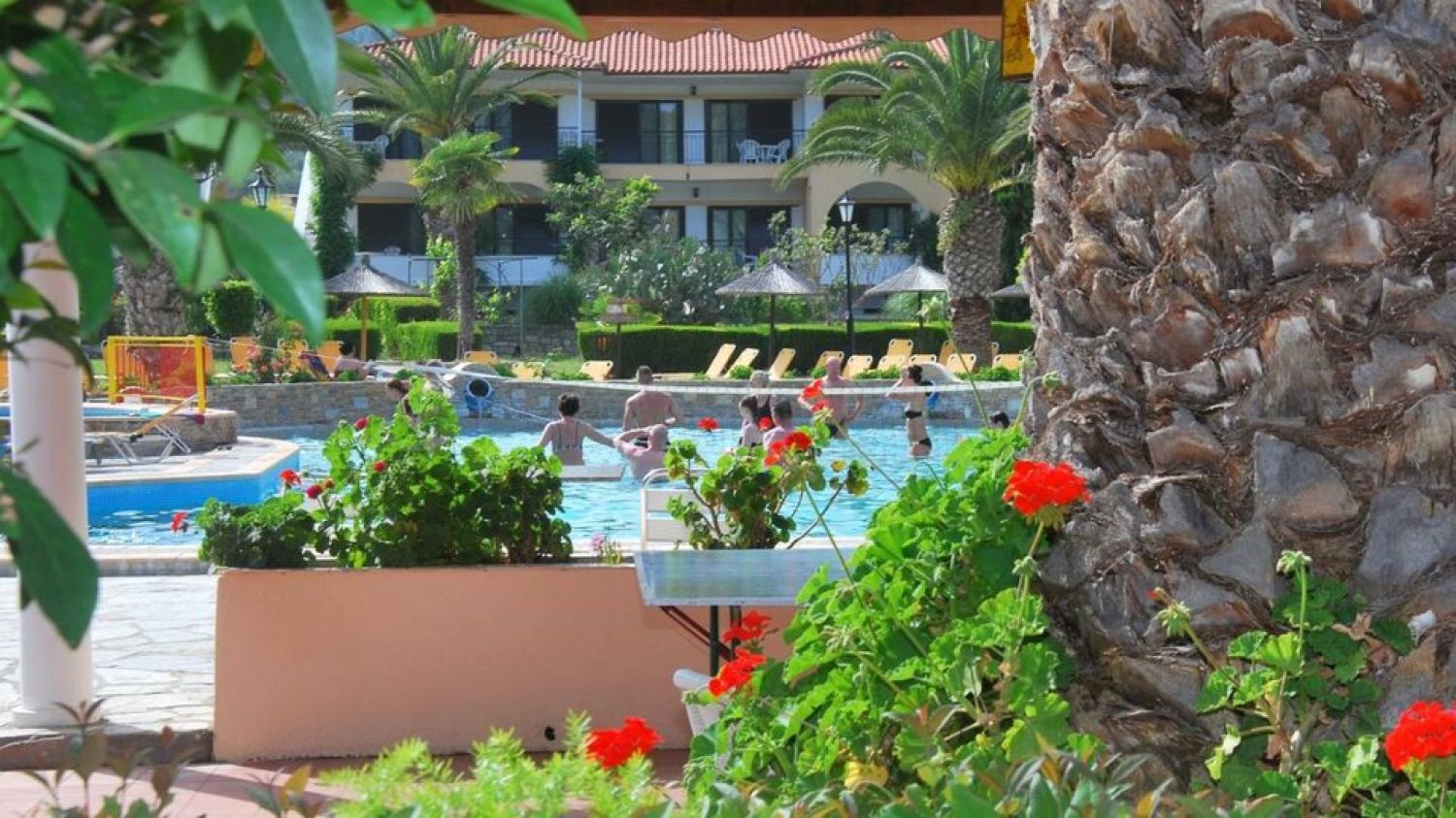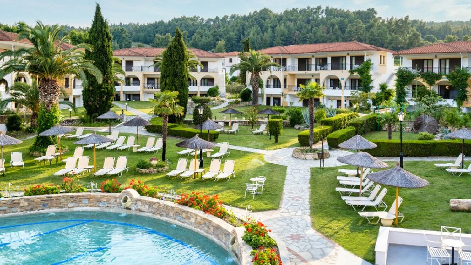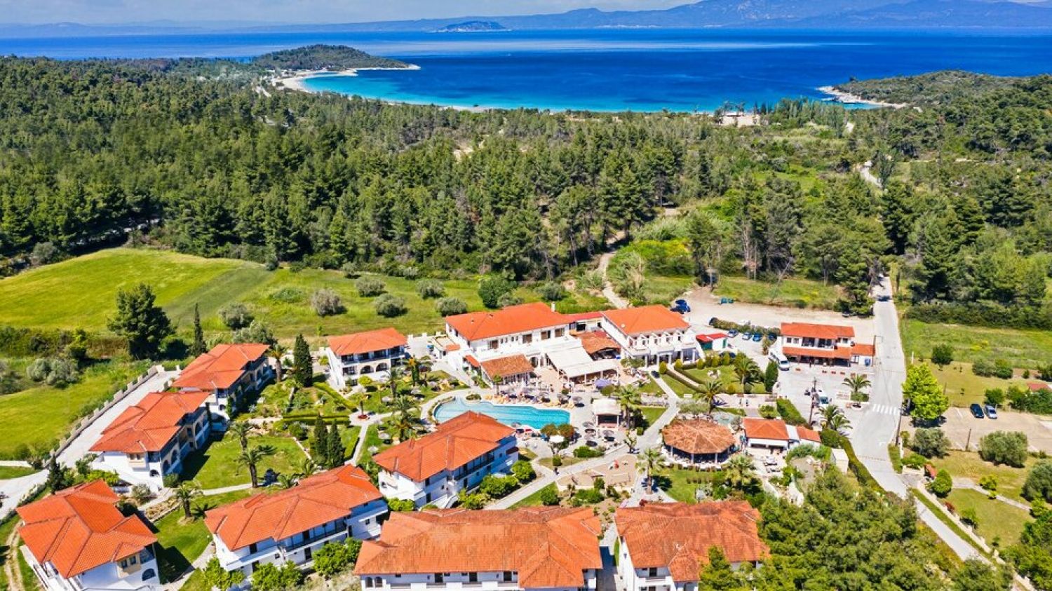 At the southern tip of the Cape of Kassandra in Paliouri, you can discover the Chrousso Village Hotel, a fine complex of beautifully appointed lodgings, within 4 hectares of lush gardens of roses, bougainvillea, geraniums and rosemary. The hotel stands out in the size of the outdoor areas brimming with rich flora and fragrant pines, ready to offer accommodation and a variety of rich flavors, designed and oriented to family holidays and kids. Set amidst lush gardens, this laid-back all-inclusive seasonal hotel is a 10-minute walk from Xenia Beach and 2 km from the picturesque Paliouri village, and only an hour-an-a-half drive away from the Thessaloniki airport.