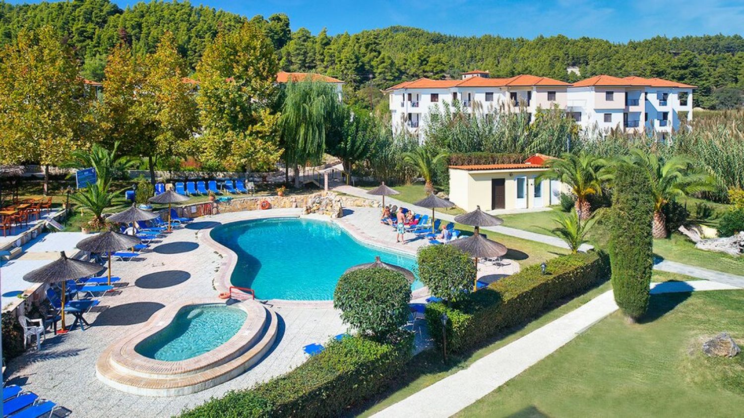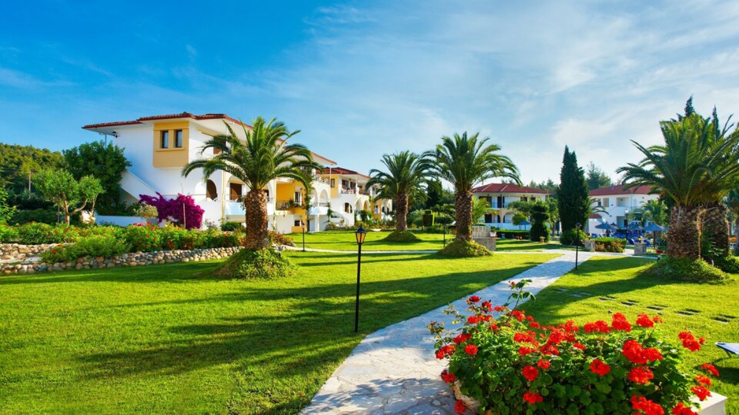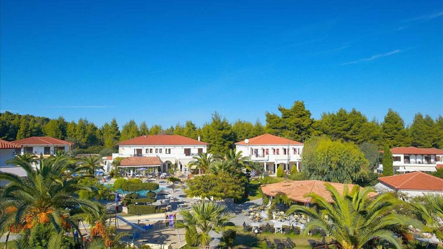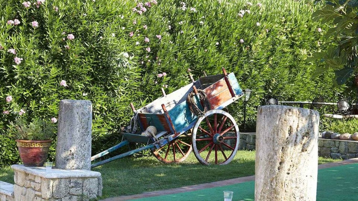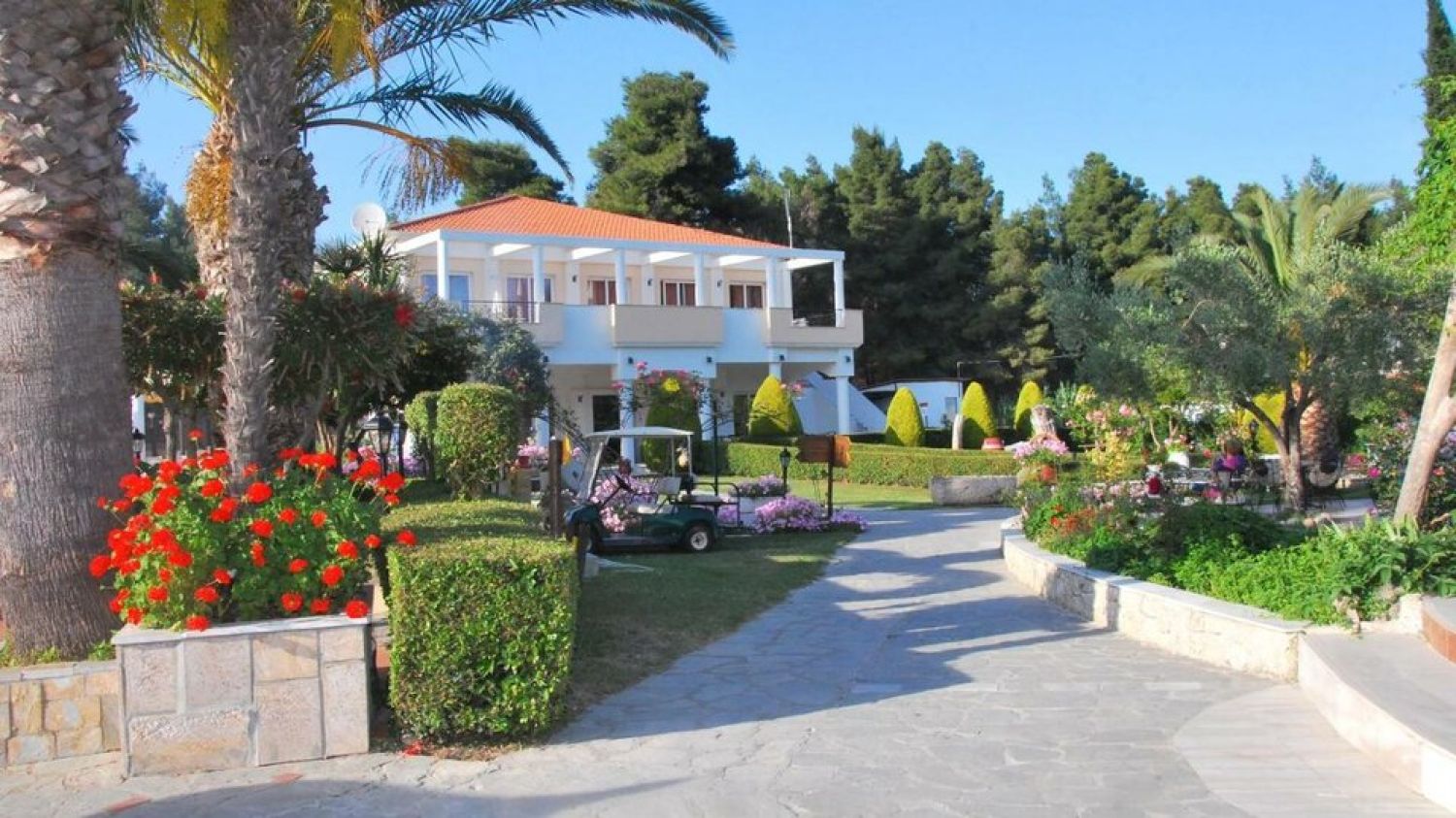 At the southern tip of the Cape of Kassandra in Paliouri, you can discover the Chrousso Village Hotel, a fine complex of beautifully appointed lodgings, within 4 hectares of lush gardens of roses, bougainvillea, geraniums and rosemary. The hotel stands out in the size of the outdoor areas brimming with rich flora and fragrant pines, ready to offer accommodation and a variety of rich flavors, designed and oriented to family holidays and kids. Set amidst lush gardens, this laid-back all-inclusive seasonal hotel is a 10-minute walk from Xenia Beach and 2 km from the picturesque Paliouri village, and only an hour-an-a-half drive away from the Thessaloniki airport.