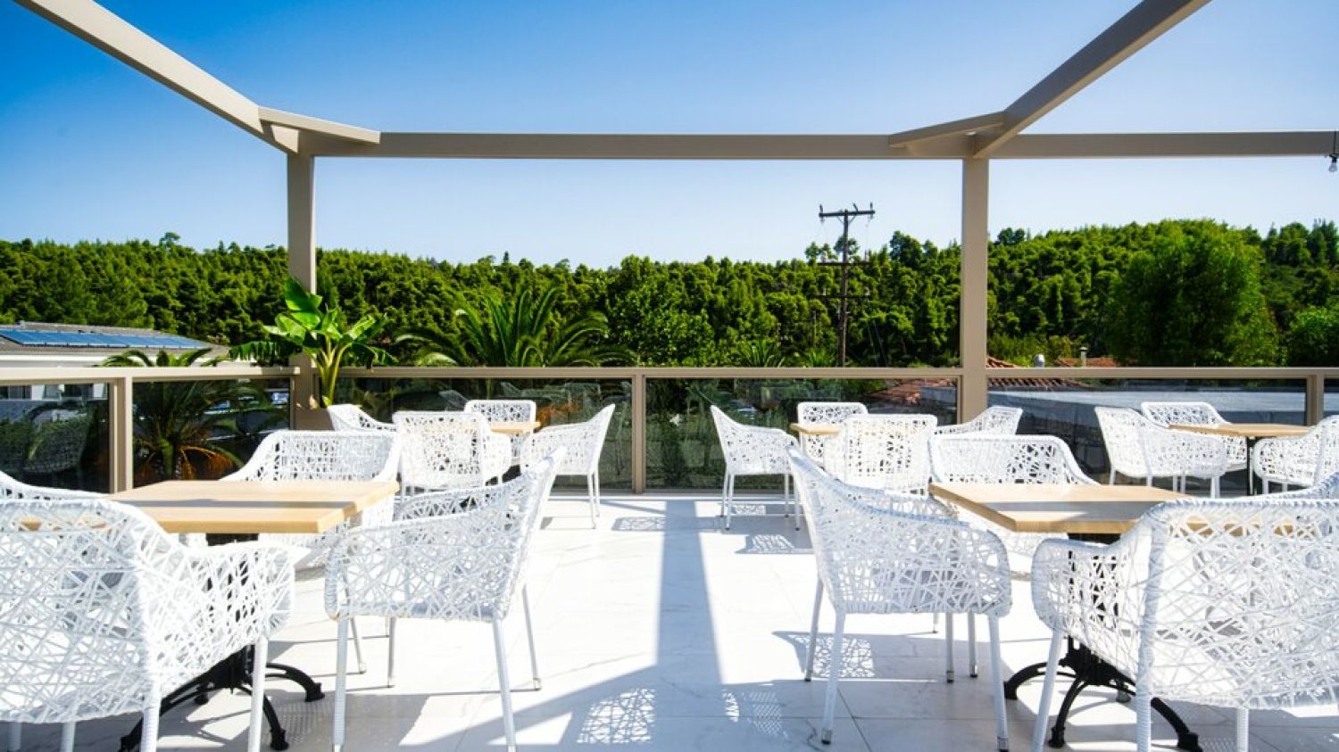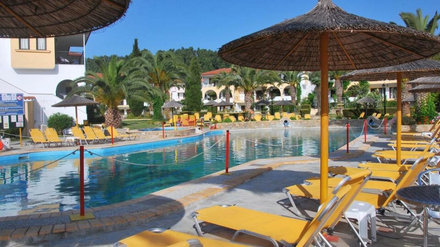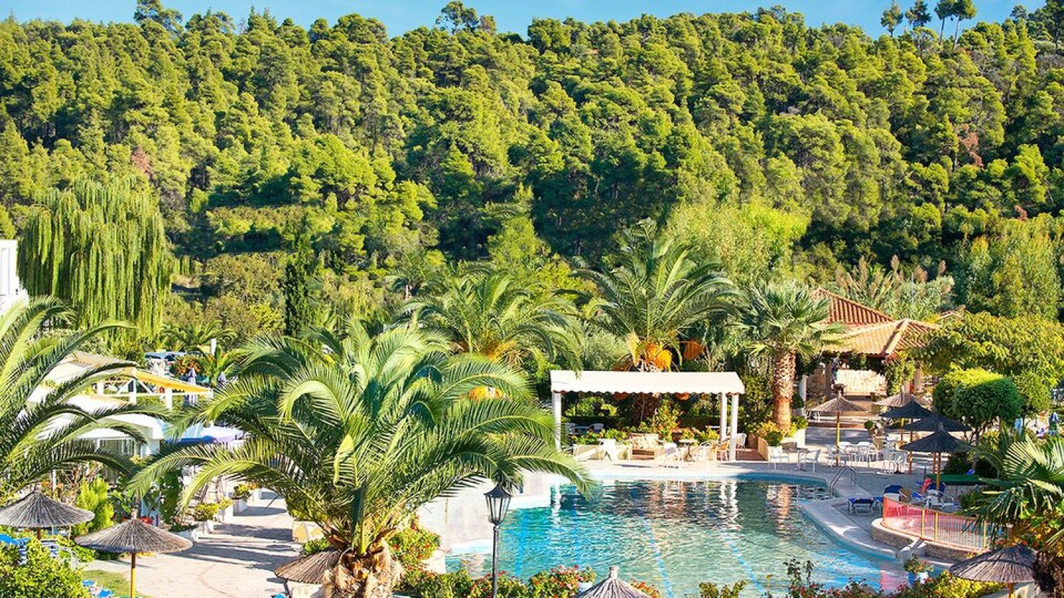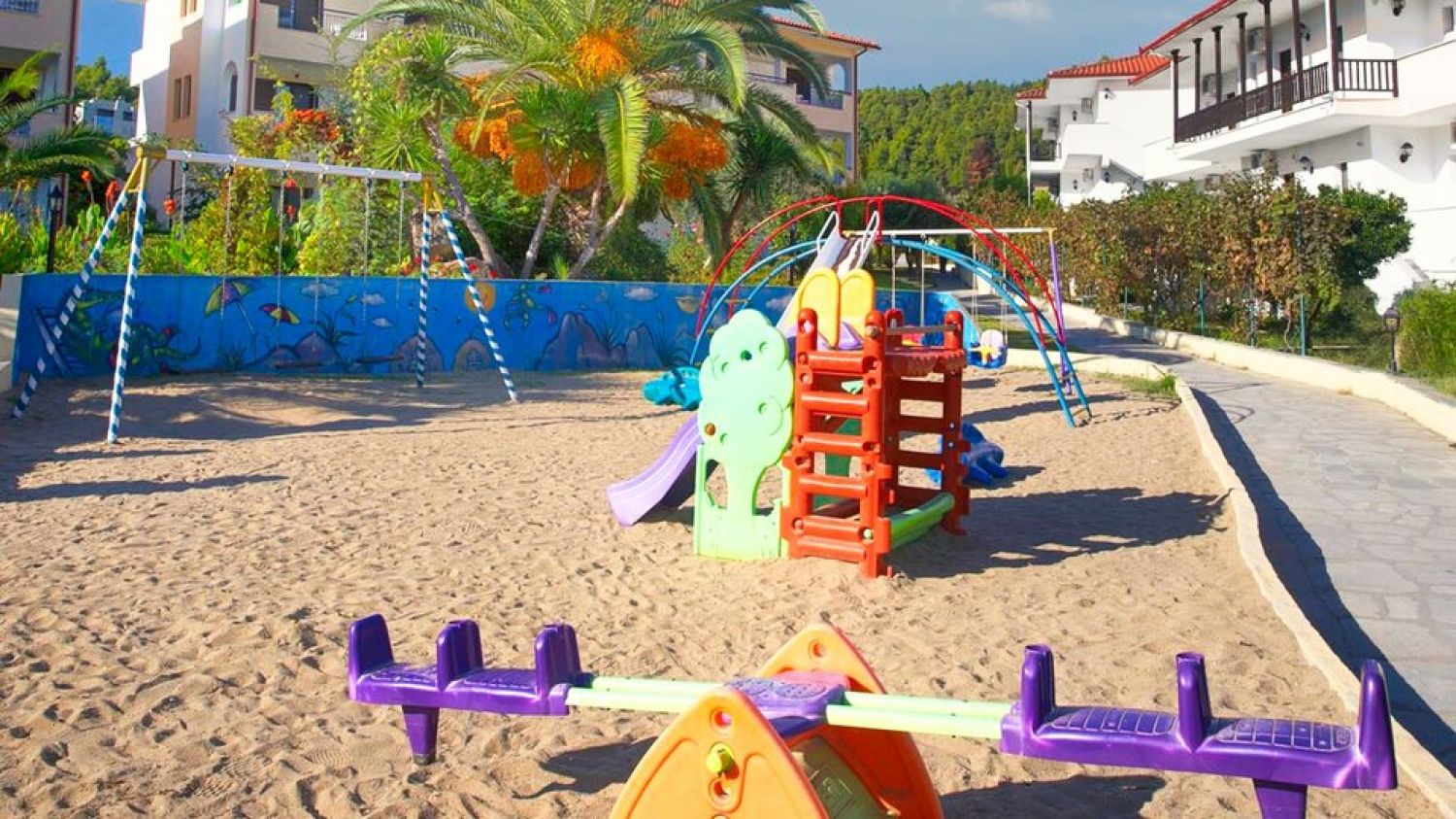 At the southern tip of the Cape of Kassandra in Paliouri, you can discover the Chrousso Village Hotel, a fine complex of beautifully appointed lodgings, within 4 hectares of lush gardens of roses, bougainvillea, geraniums and rosemary. The hotel stands out in the size of the outdoor areas brimming with rich flora and fragrant pines, ready to offer accommodation and a variety of rich flavors, designed and oriented to family holidays and kids. Set amidst lush gardens, this laid-back all-inclusive seasonal hotel is a 10-minute walk from Xenia Beach and 2 km from the picturesque Paliouri village, and only an hour-an-a-half drive away from the Thessaloniki airport.