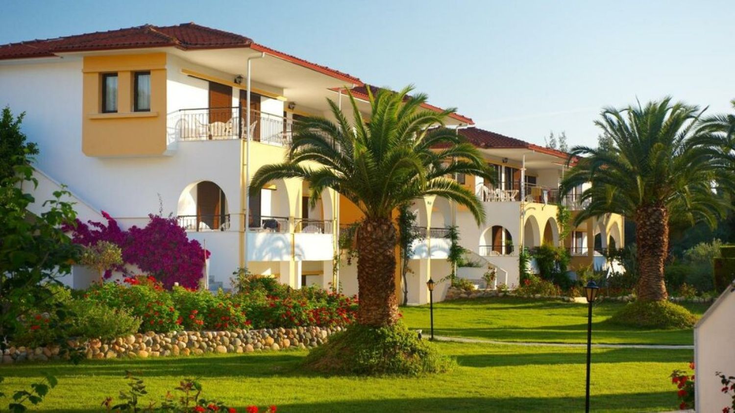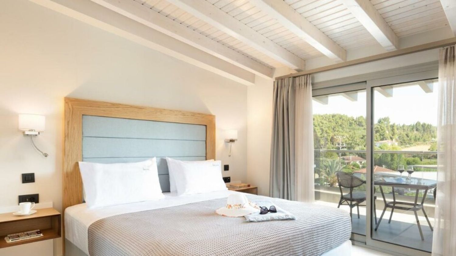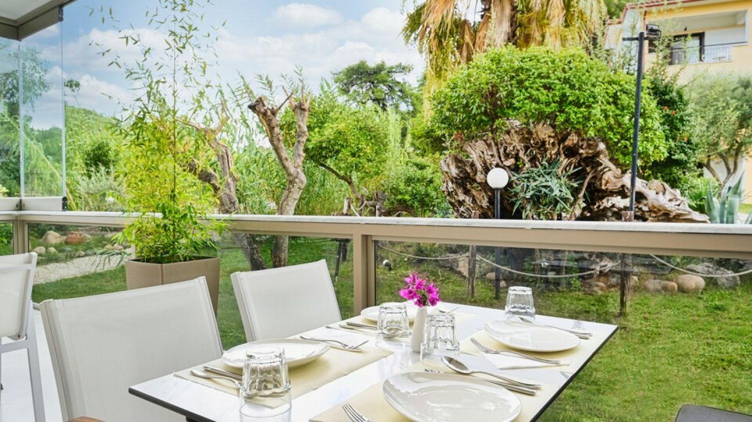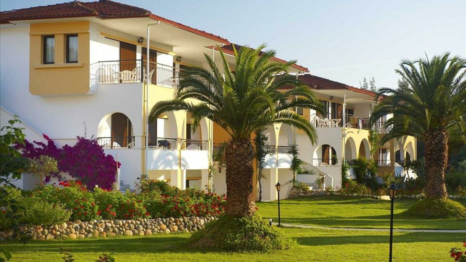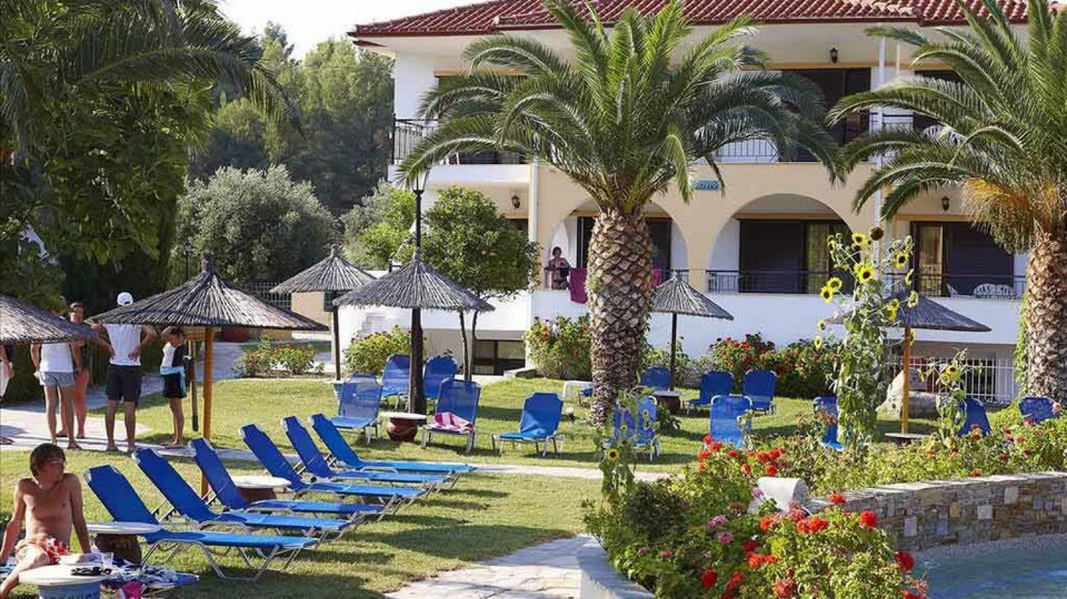 At the southern tip of the Cape of Kassandra in Paliouri, you can discover the Chrousso Village Hotel, a fine complex of beautifully appointed lodgings, within 4 hectares of lush gardens of roses, bougainvillea, geraniums and rosemary. The hotel stands out in the size of the outdoor areas brimming with rich flora and fragrant pines, ready to offer accommodation and a variety of rich flavors, designed and oriented to family holidays and kids. Set amidst lush gardens, this laid-back all-inclusive seasonal hotel is a 10-minute walk from Xenia Beach and 2 km from the picturesque Paliouri village, and only an hour-an-a-half drive away from the Thessaloniki airport.