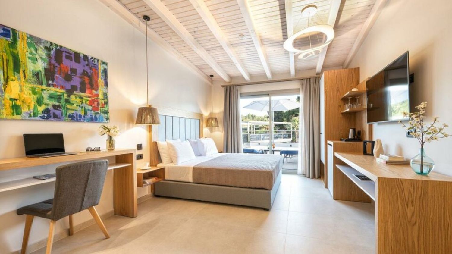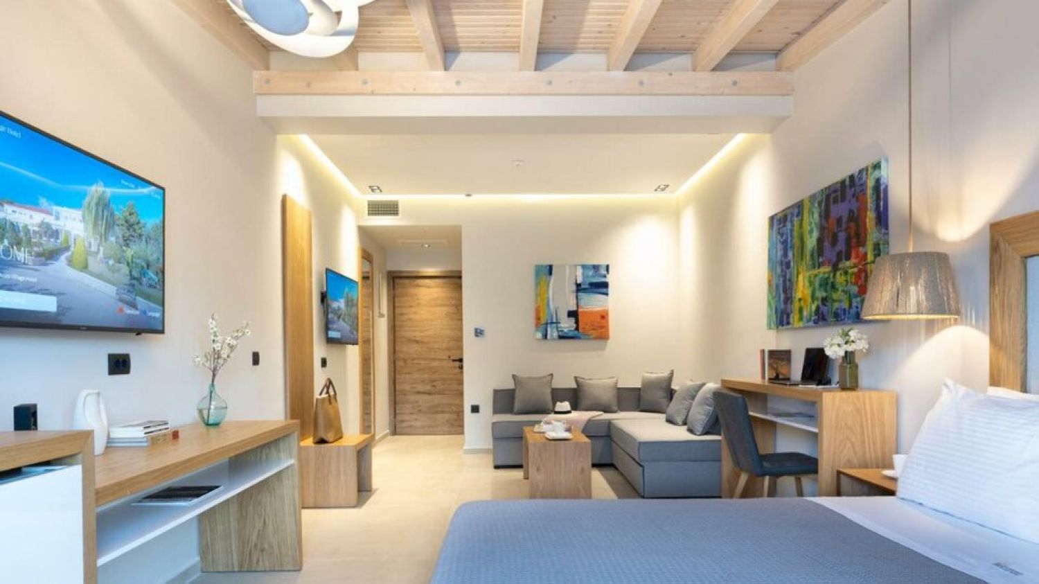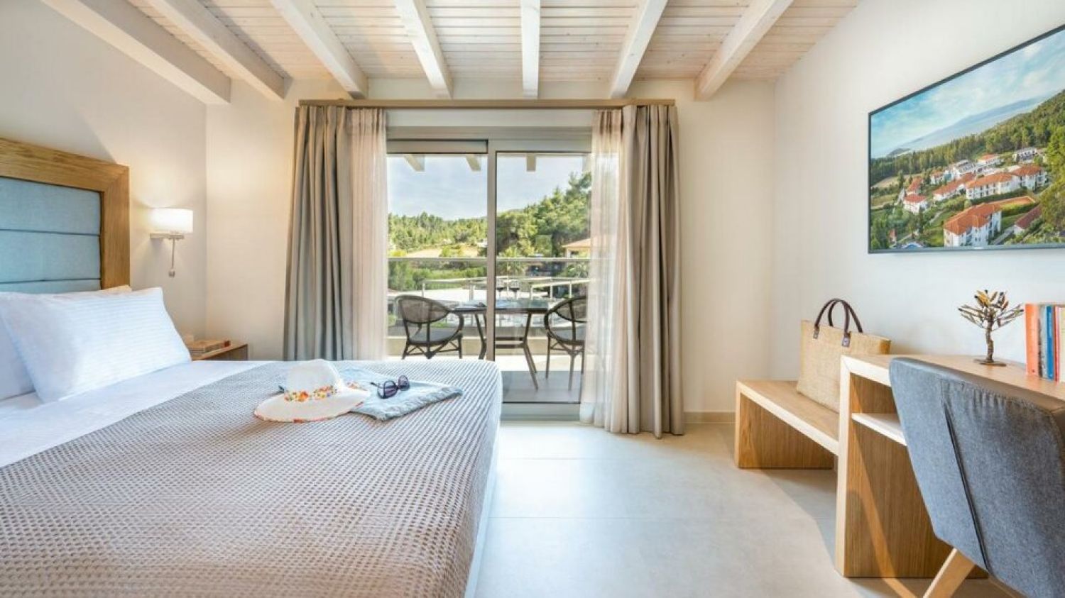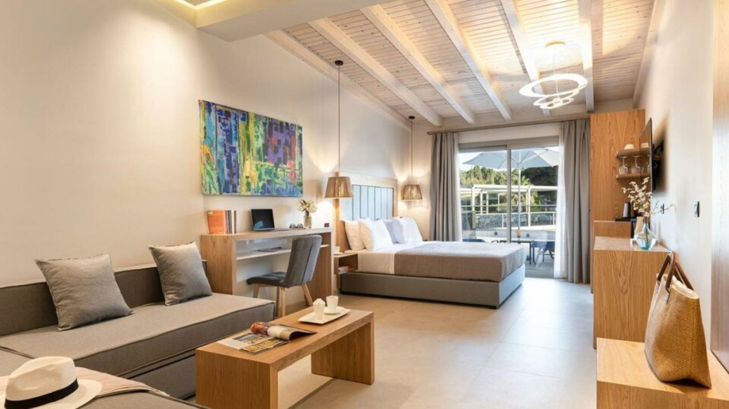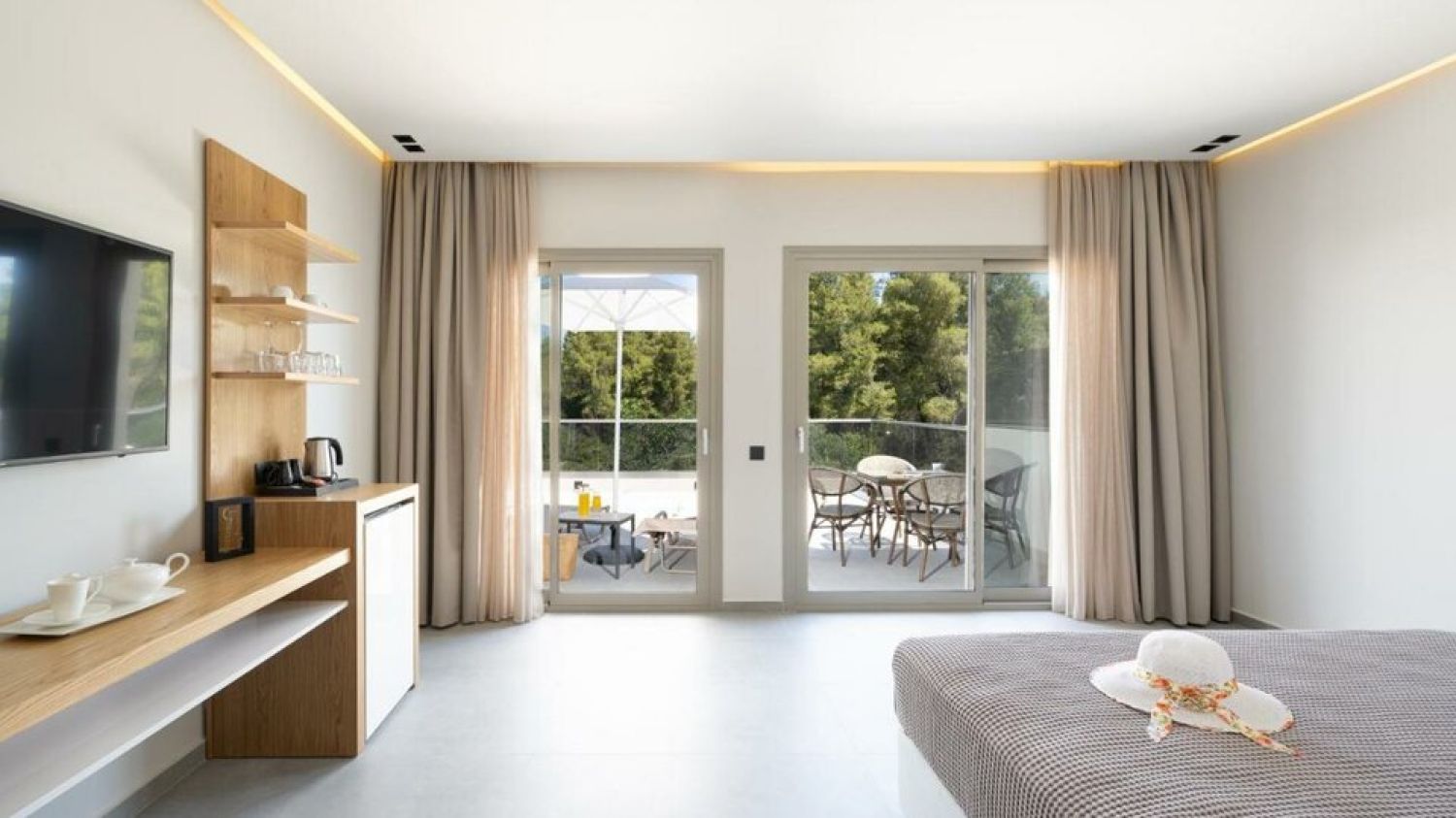 At the southern tip of the Cape of Kassandra in Paliouri, you can discover the Chrousso Village Hotel, a fine complex of beautifully appointed lodgings, within 4 hectares of lush gardens of roses, bougainvillea, geraniums and rosemary. The hotel stands out in the size of the outdoor areas brimming with rich flora and fragrant pines, ready to offer accommodation and a variety of rich flavors, designed and oriented to family holidays and kids. Set amidst lush gardens, this laid-back all-inclusive seasonal hotel is a 10-minute walk from Xenia Beach and 2 km from the picturesque Paliouri village, and only an hour-an-a-half drive away from the Thessaloniki airport.