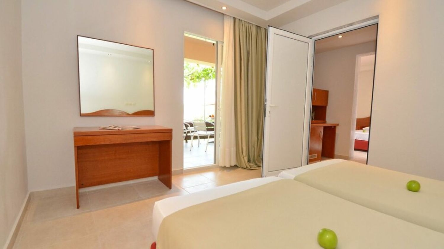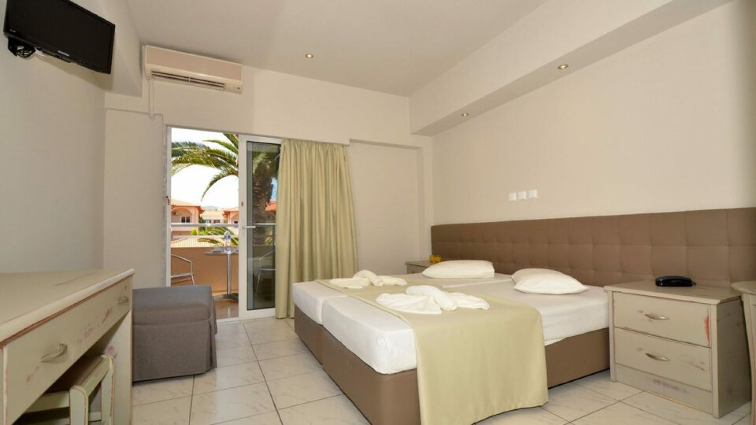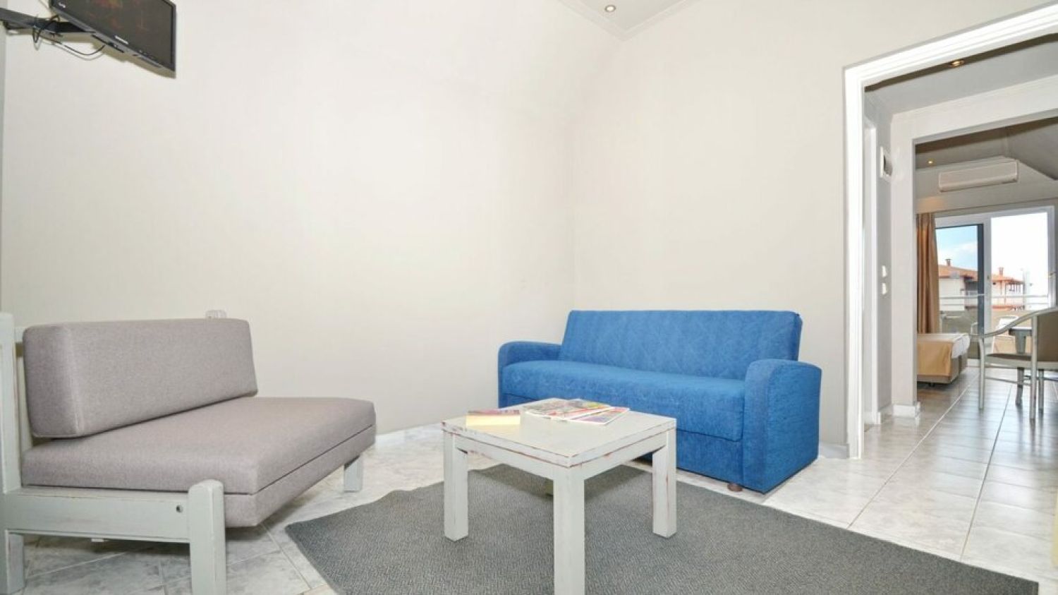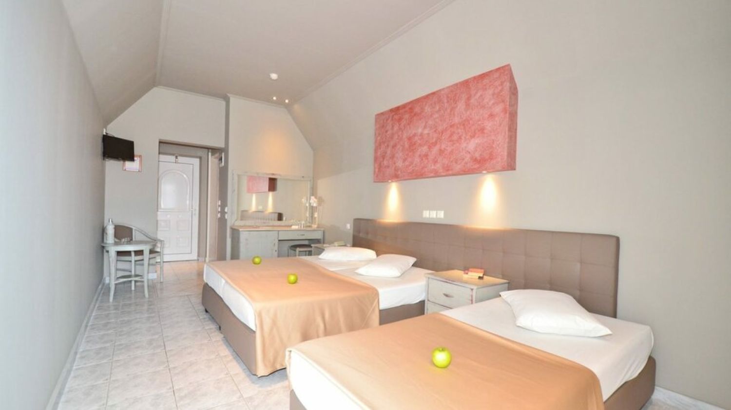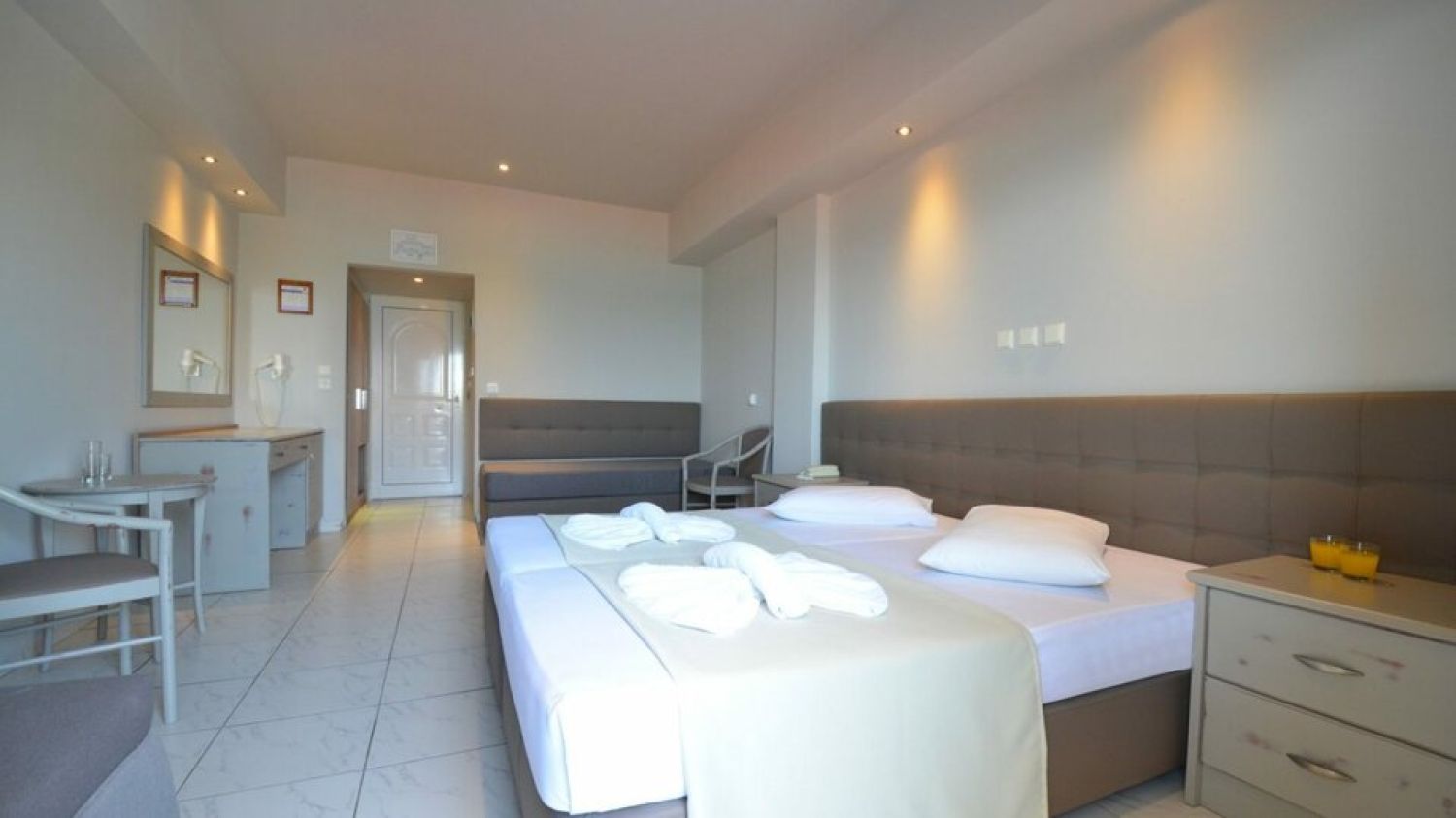 Set on Hanioti beach along the Aegean Sea, Sousouras hotel and bungalows features a main building with the restaurant and pool bar and 9 large buildings set among a beautiful Mediterranean garden. Recently renovated rooms and pool area promise a relaxing, laid-back holiday in a family atmosphere. 80 pleasant and spacious guestrooms and bungalows, made of colors and materials in harmony with the beautiful natural surroundings, are waiting to provide you with a genuinely comfortable stay. Hanioti is a small coastal town in the peninsula of Kassandra, in Halkidiki, a picturesque and vibrant destination, ideal for spending relaxing holidays on the beach front Sousouras hotel. This excellent value for money half board hotel is located near the center of Hanioti, 4 km from Pefkochori, and 95 km from Thessaloniki Airport. A/C with extra charge 7eur per day.