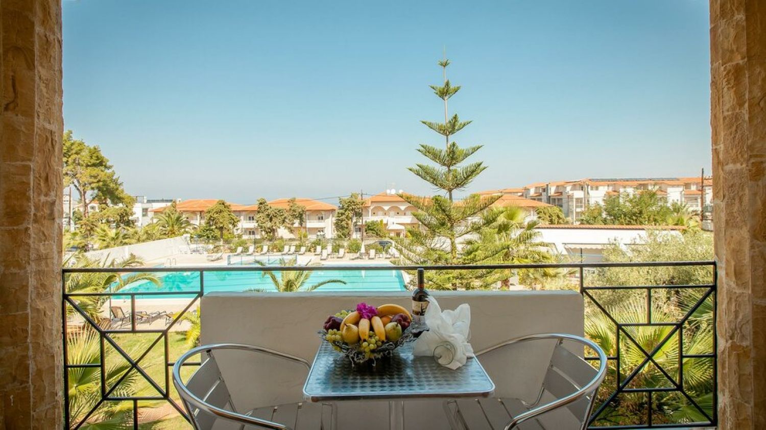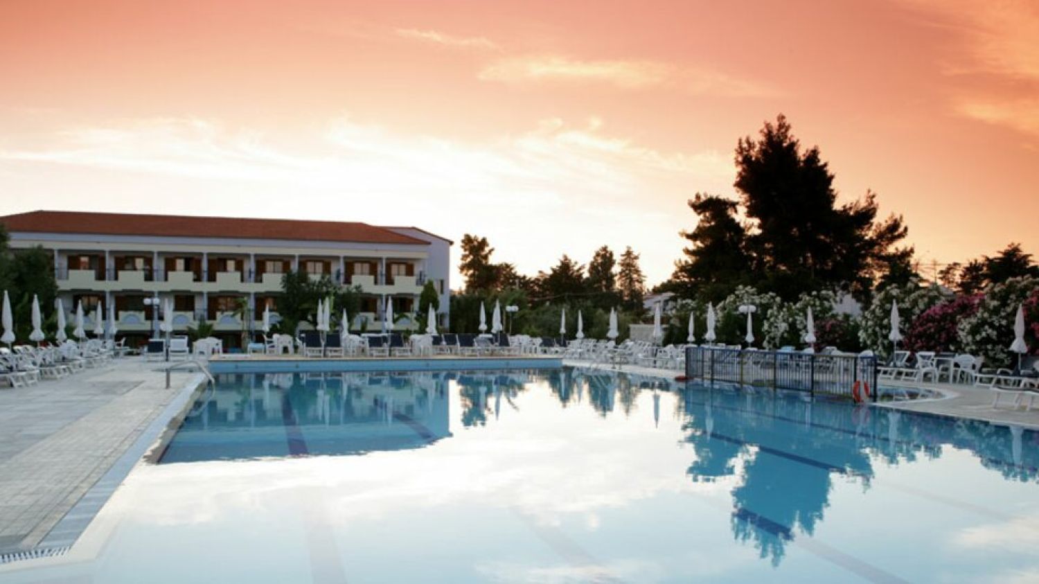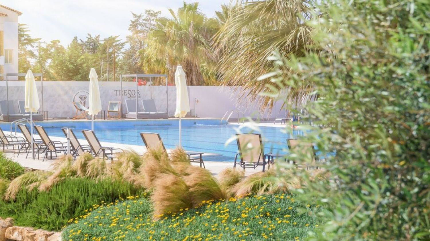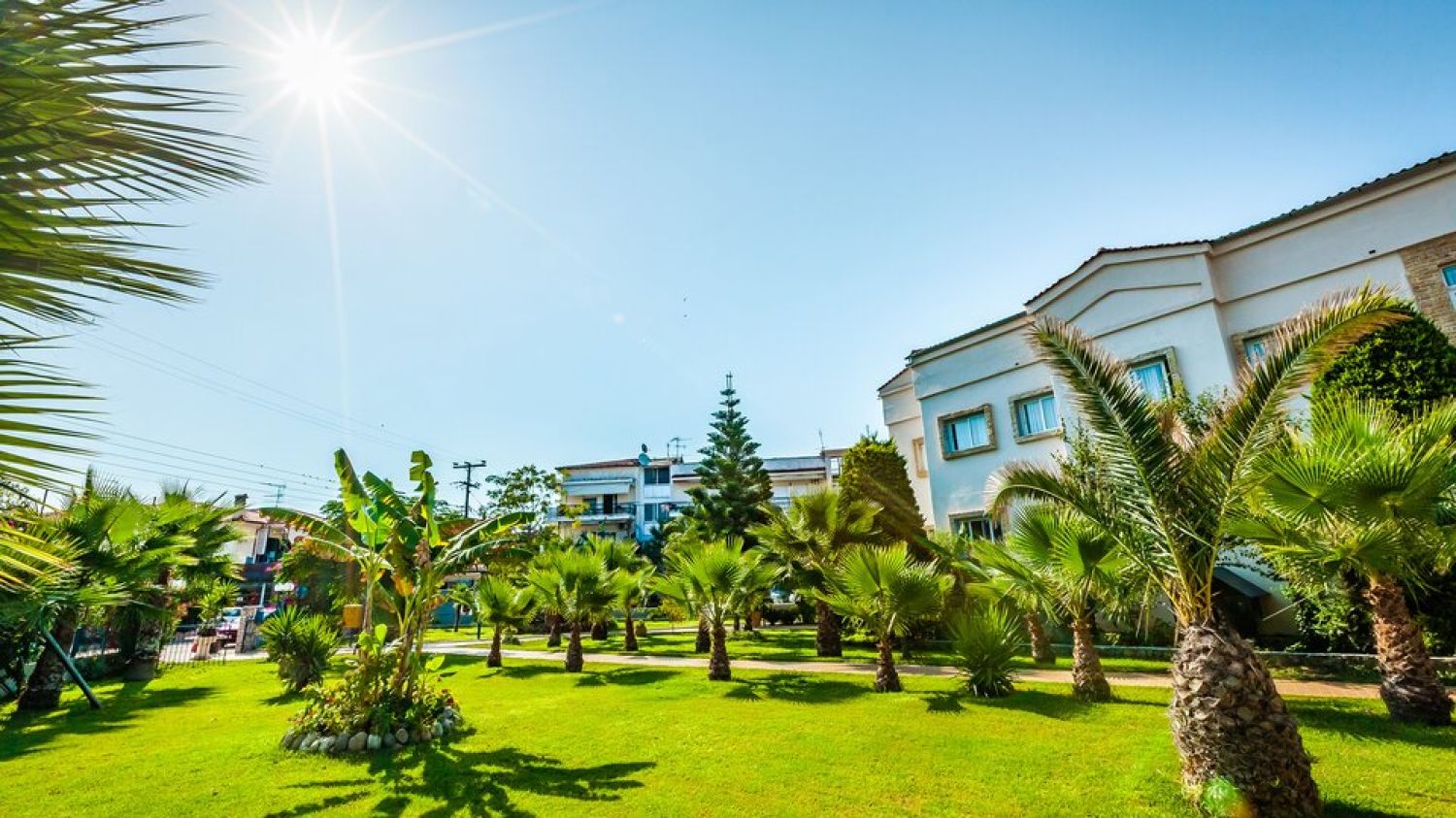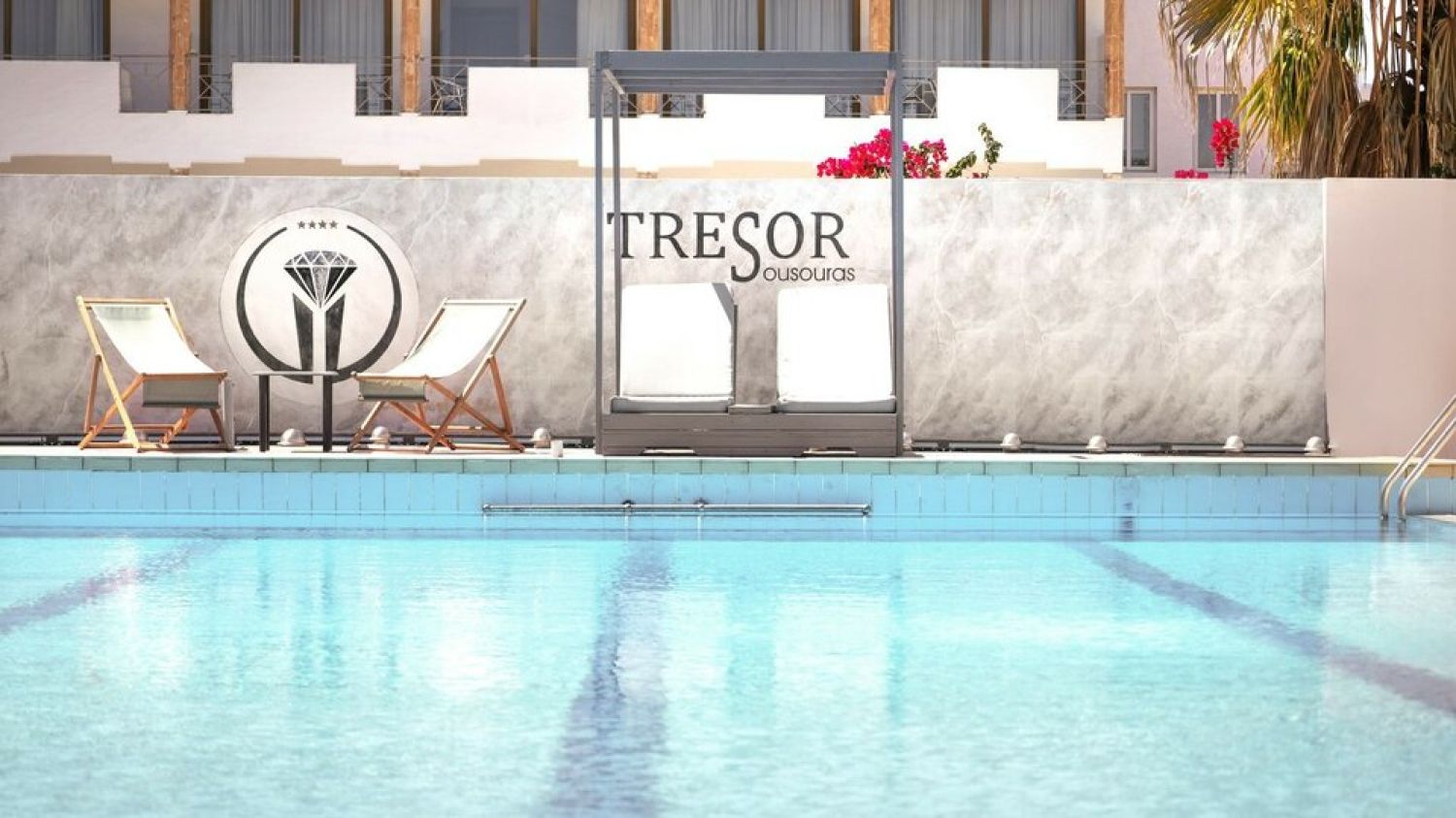 Escape to a haven of relaxation and friendly hospitality at Tresor Sousouras, a charming 4-star hotel situated in the heart of vibrant Hanioti. Formerly known as Hanioti Palace, this delightful property has undergone tasteful renovations in its rooms and suites, ensuring guests' comfort. Perfectly located for exploration, Tresor Sousouras boasts an unbeatable location, placing you just steps away from the action, the lively main square of Hanioti, brimming with shops, restaurants, and cafes, located just 100 meters away. The sparkling Aegean Sea at the public beach is a mere 80 meters from the hotel. Unwind by the hotel's inviting 25-meter swimming pool, surrounded by blossoming, well-tended gardens. Soak up the sun on comfortable loungers, or cool off with a refreshing dip. Children can enjoy their own dedicated pool and playground area, creating a perfect family-friendly atmosphere. Start your day with a delicious buffet breakfast at the hotel's main restaurant, which also serves delectable dinners.