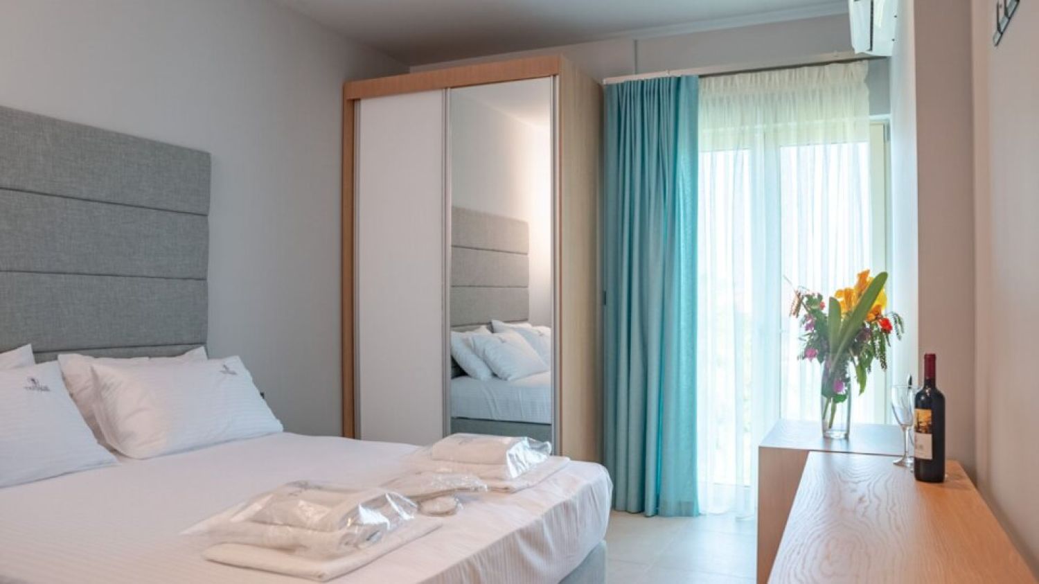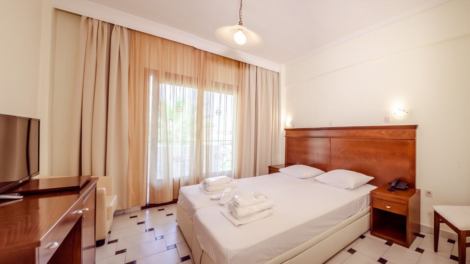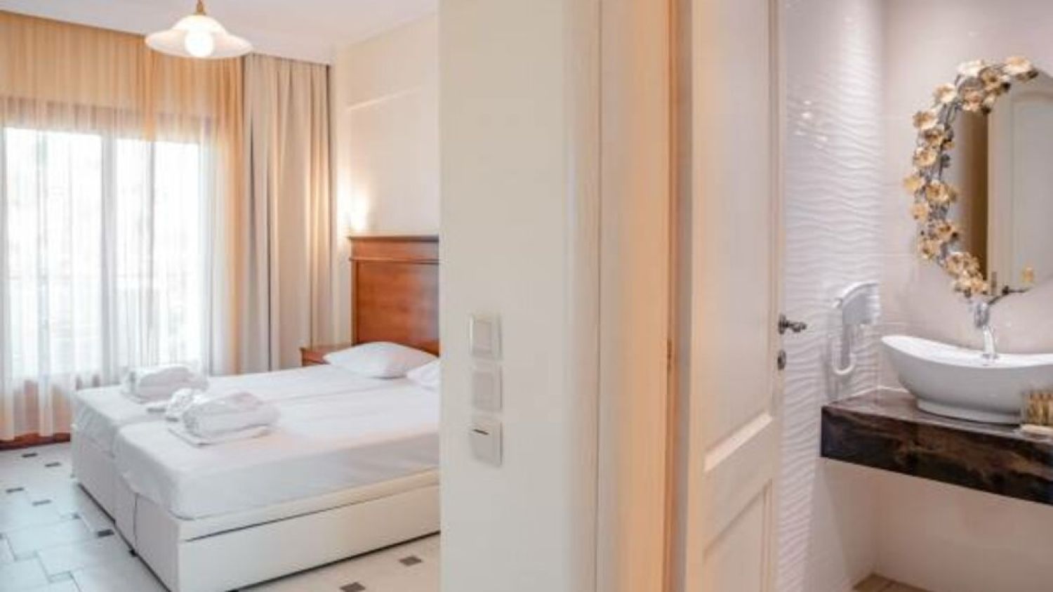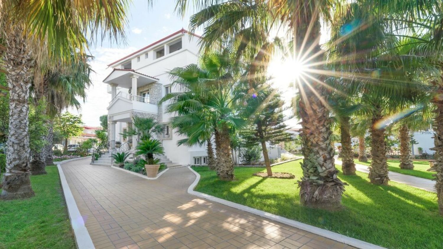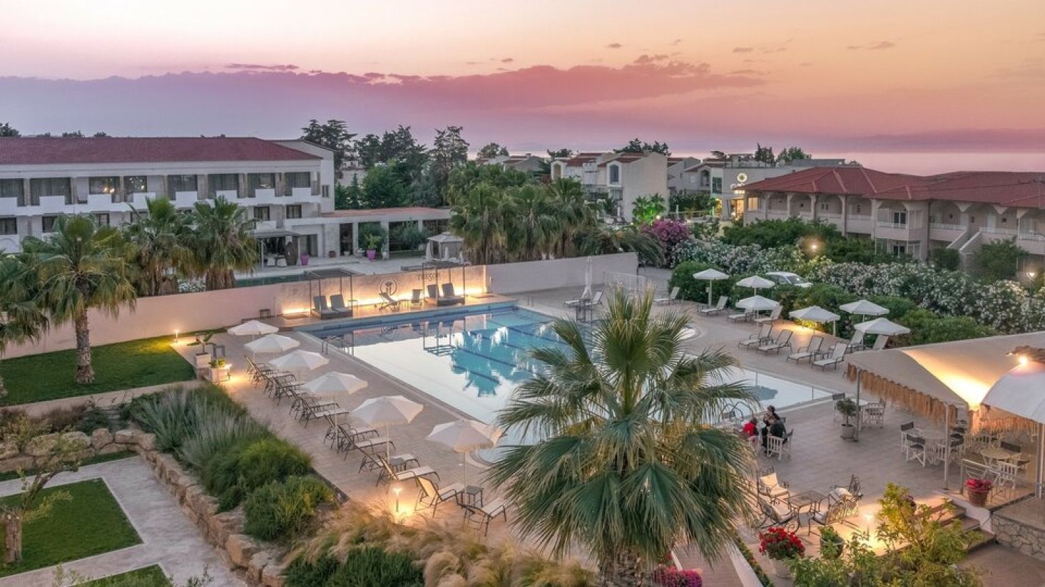 Escape to a haven of relaxation and friendly hospitality at Tresor Sousouras, a charming 4-star hotel situated in the heart of vibrant Hanioti. Formerly known as Hanioti Palace, this delightful property has undergone tasteful renovations in its rooms and suites, ensuring guests' comfort. Perfectly located for exploration, Tresor Sousouras boasts an unbeatable location, placing you just steps away from the action, the lively main square of Hanioti, brimming with shops, restaurants, and cafes, located just 100 meters away. The sparkling Aegean Sea at the public beach is a mere 80 meters from the hotel. Unwind by the hotel's inviting 25-meter swimming pool, surrounded by blossoming, well-tended gardens. Soak up the sun on comfortable loungers, or cool off with a refreshing dip. Children can enjoy their own dedicated pool and playground area, creating a perfect family-friendly atmosphere. Start your day with a delicious buffet breakfast at the hotel's main restaurant, which also serves delectable dinners.