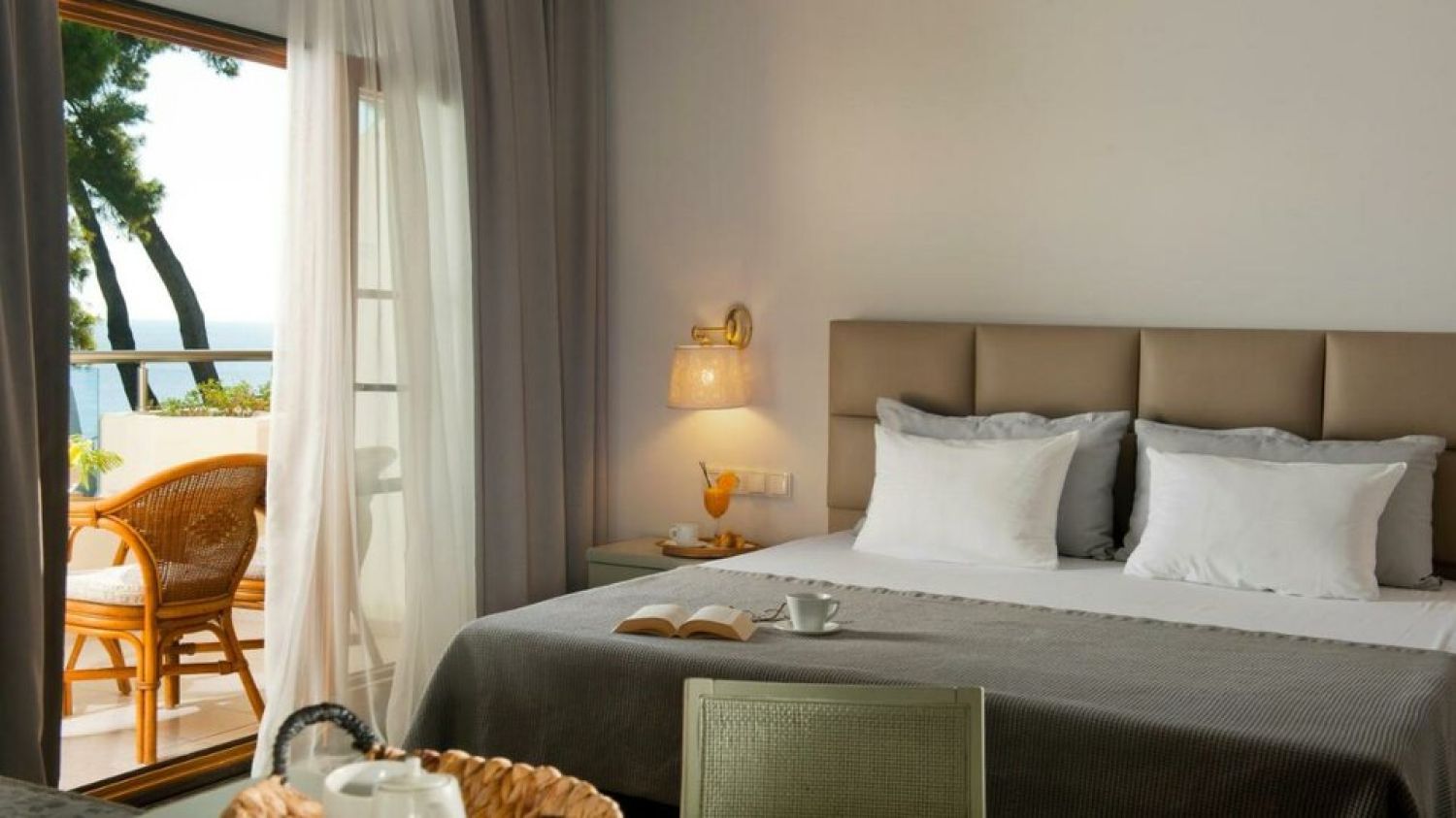 Located at the edge of the pine forrest, Possidi Holidays Resort & Suites is a superb 5-star getaway, with an incredible sandy beach on the western coast of Kassandra peninsula. The property features 135 rooms and suites scattered among the bungalows on the slopes of the hill backing the main building with the restaurant, reception, outdoor pool, and the tavern, among other facilities. Being away from the bustling villages of the ever-popular Kassandra, Possidi Holidays Resort offers peaceful relaxation with the Thessaloniki airport at 95km and the quaint village of Possidi at 3km distance.