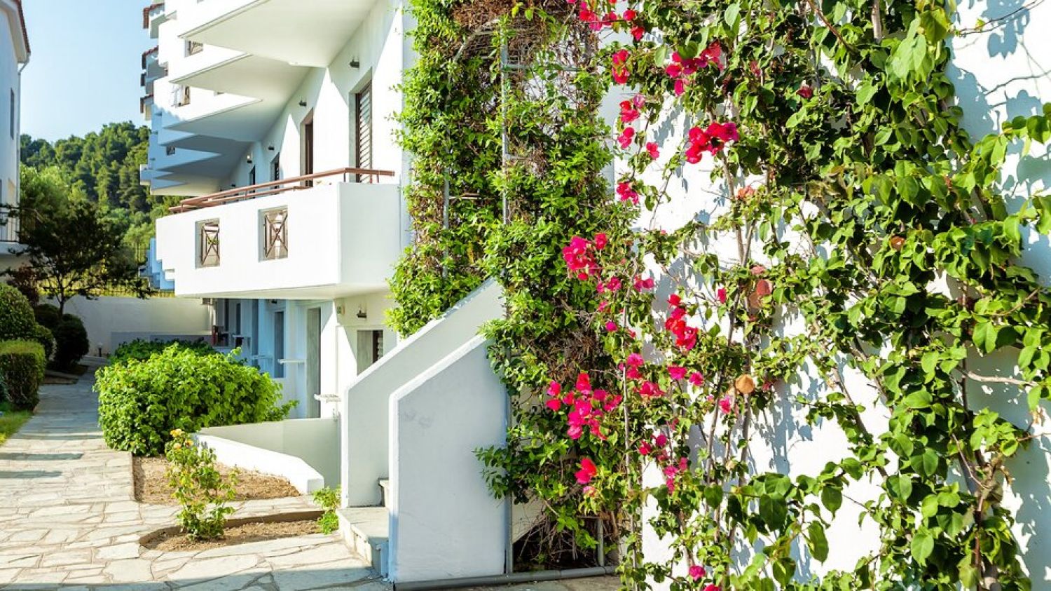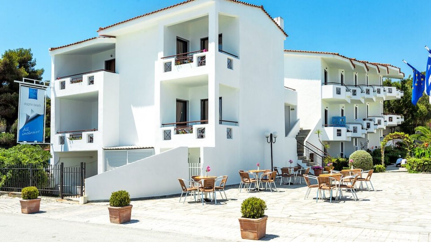 Xenios Dolphin Beach is a 3-star hotel, located on the beach in the beautiful and picturesque village of Possidi Kassandra, 22 km from Kallithea and 100 km from the airport “Macedonia” of Thessaloniki. Surrounded by greenery and pine trees on one side and white sand and blue sea on the other, this hotel is an ideal place for families with children. Featuring double or triple and family rooms spread across 3 buildings, surrounding an outdoor pool with pool bar, restaurant, reception, this unpretentious property operates both on half board and all inclusive basis.