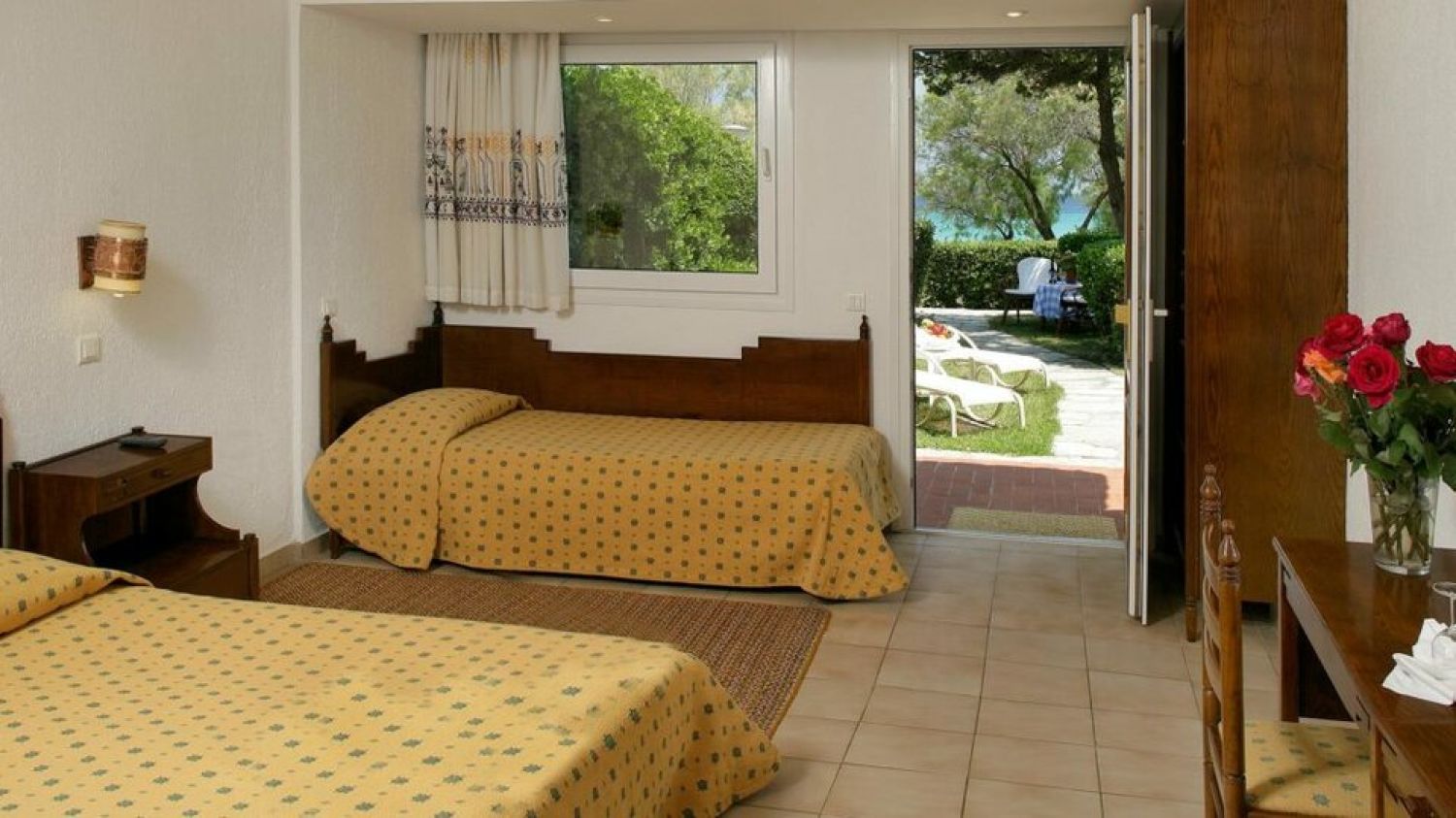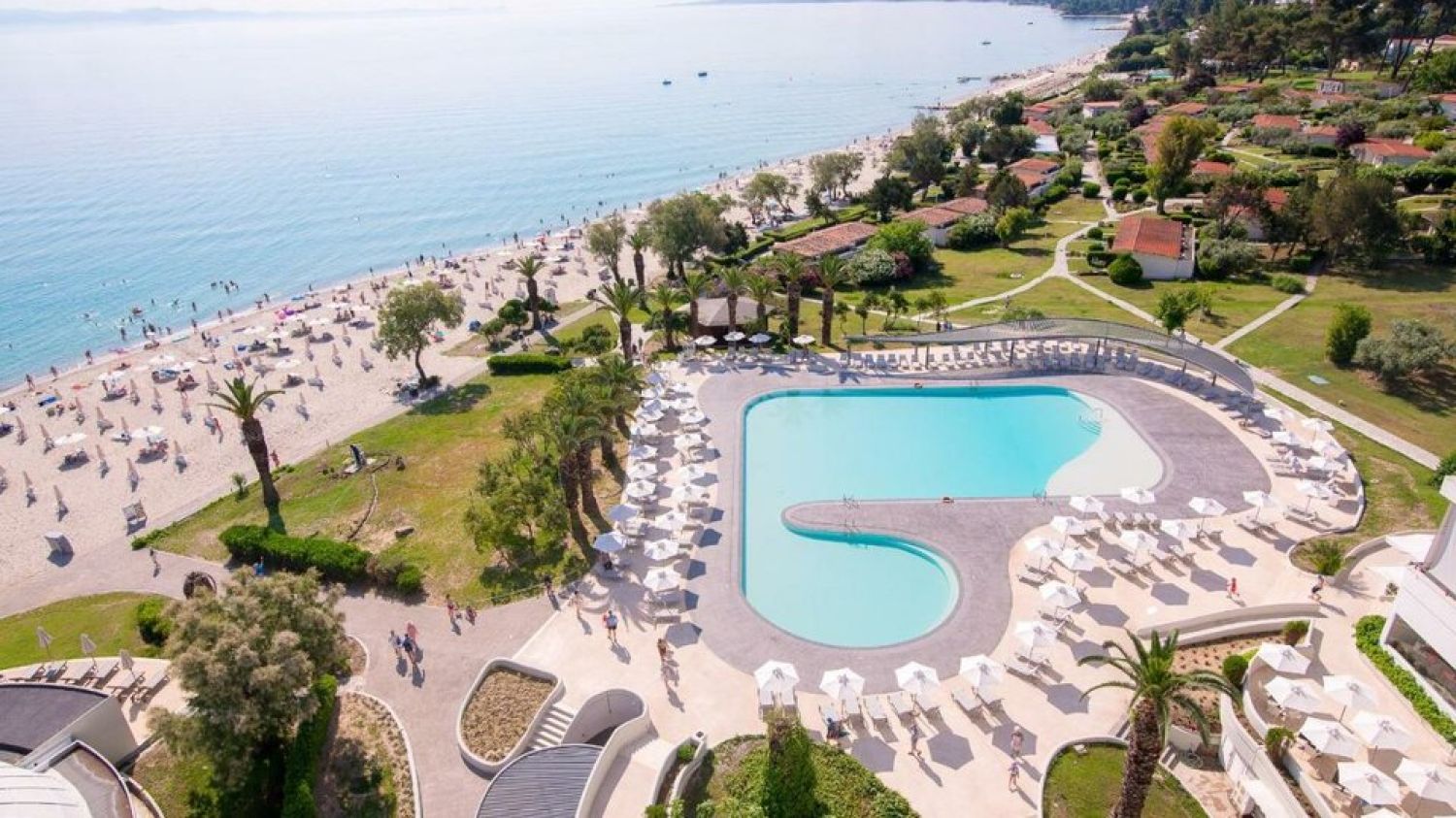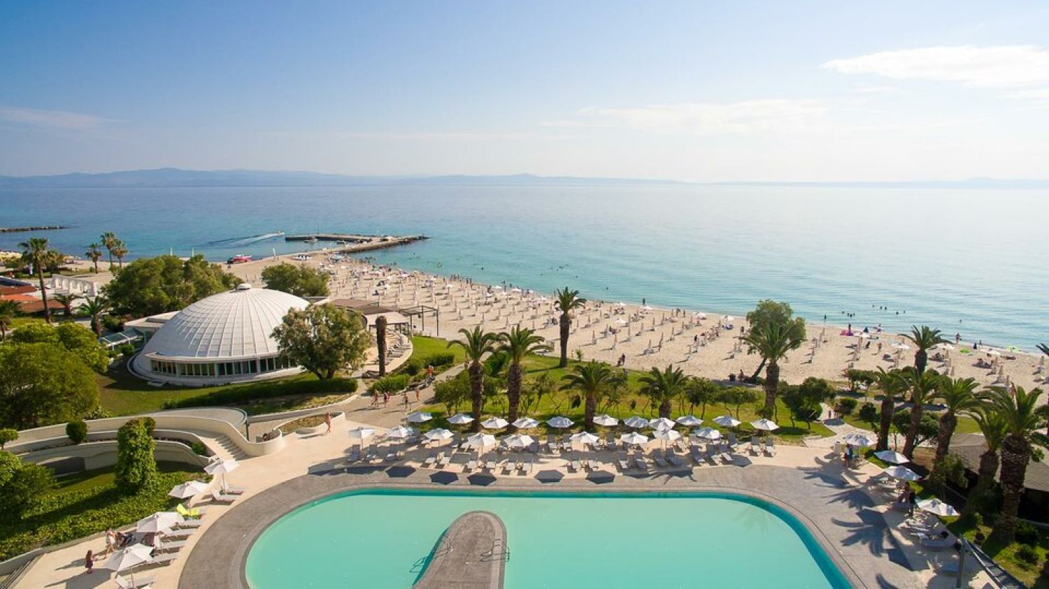 Set in an idyllic location on the east coast of the Kassandra peninsula of Halkidiki, this remarkable hotel enjoys a beach side position surrounded by lush green gardens. The Pallini Beach Hotel is located on its own private golden, sandy fully organized beach with the most wonderful and newly built beach bar White Dome. The imposing main building overlooks the 4 rows of bungalows scattered among the pine and palm trees stretching to the relaxing sun beds and umbrellas on one of the most popular beaches in the region. As it is a part of the larger hotel complex of G-hotels, guests have the opportunity to use the common facilities of the resort. Distance of only 1-hour drive from Thessaloniki makes this resort, without a doubt, the perfect choice for families or couples of all ages.
