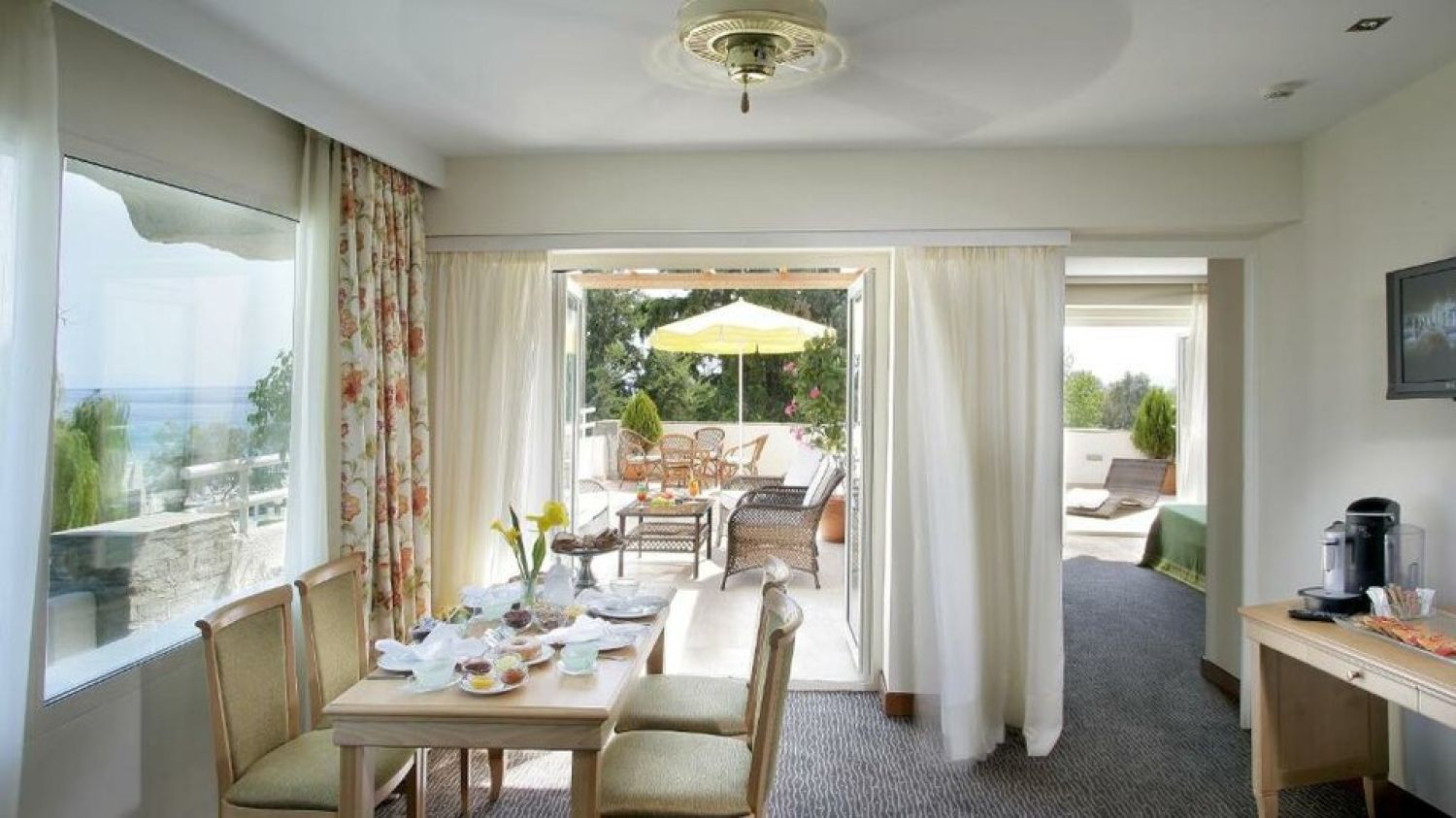 All rooms are facing the garden and the Gulf of Toroneos and all have air conditioning, mini bar, bathroom with jacuzzi, bathrobes, hair dryer and cosmetic products, terrace / balcony, safe, satellite TV, ADSL connection.