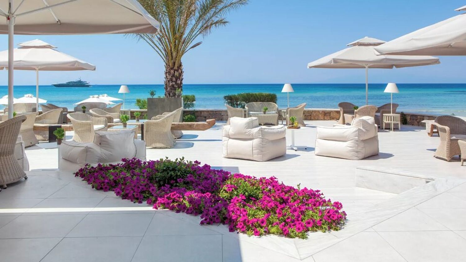 - Umbrellas and beach sets: at nearby beach bars (exterior partners)