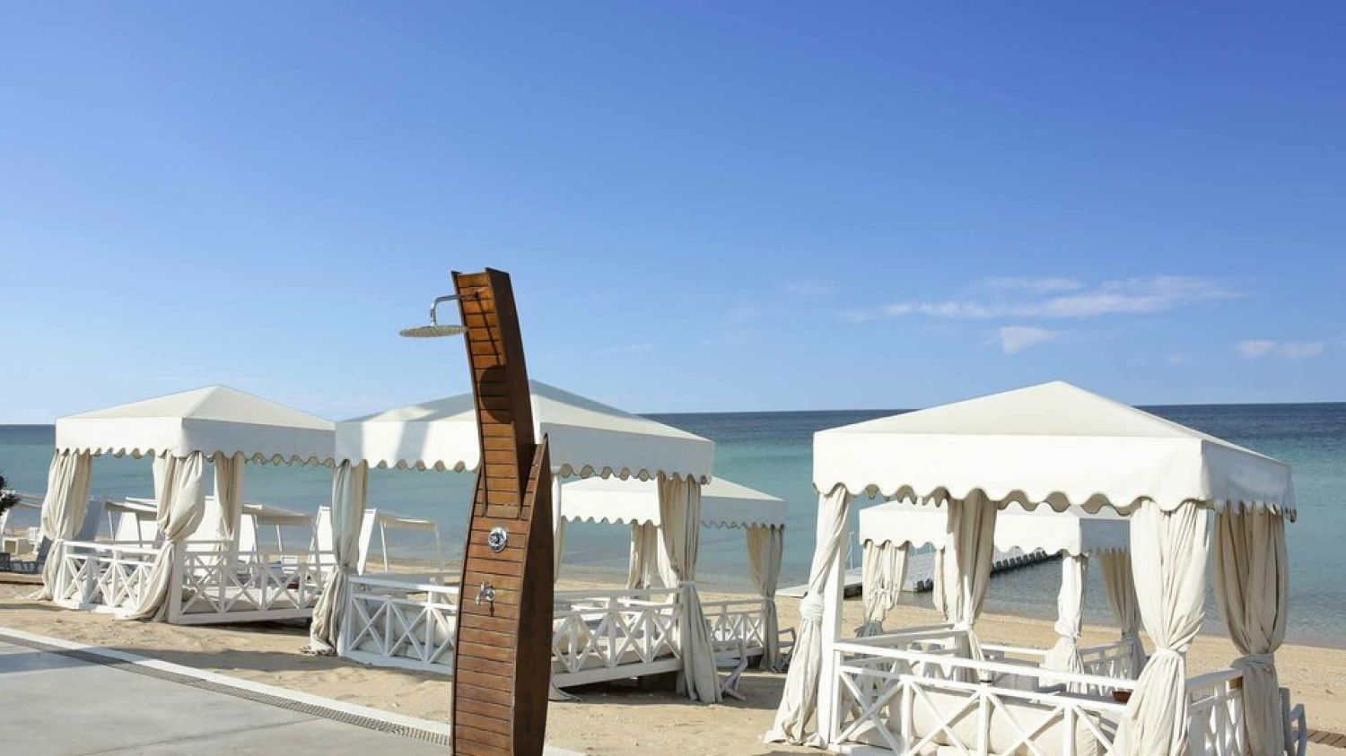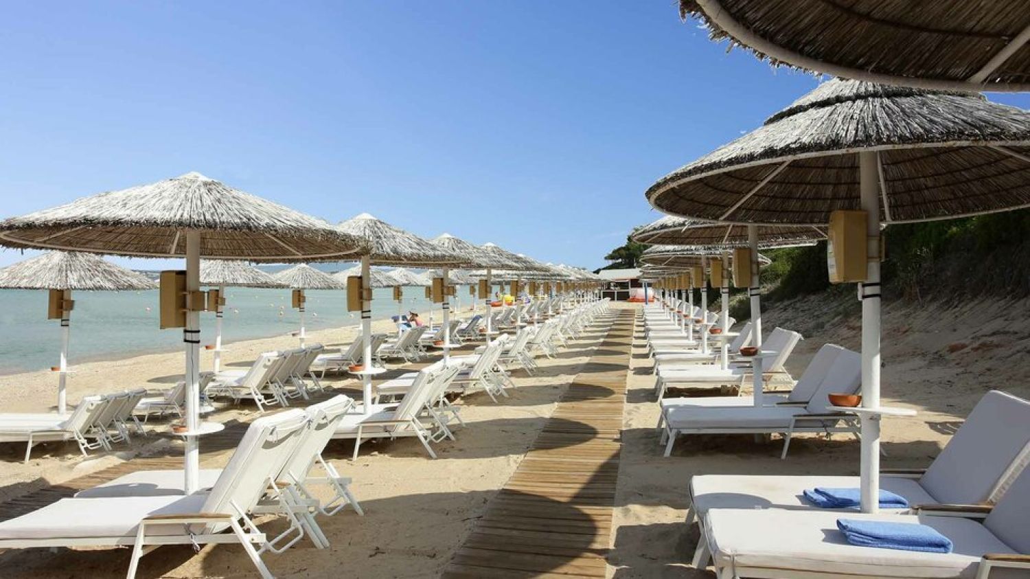 - Umbrellas and beach sets: at nearby beach bars (exterior partners)