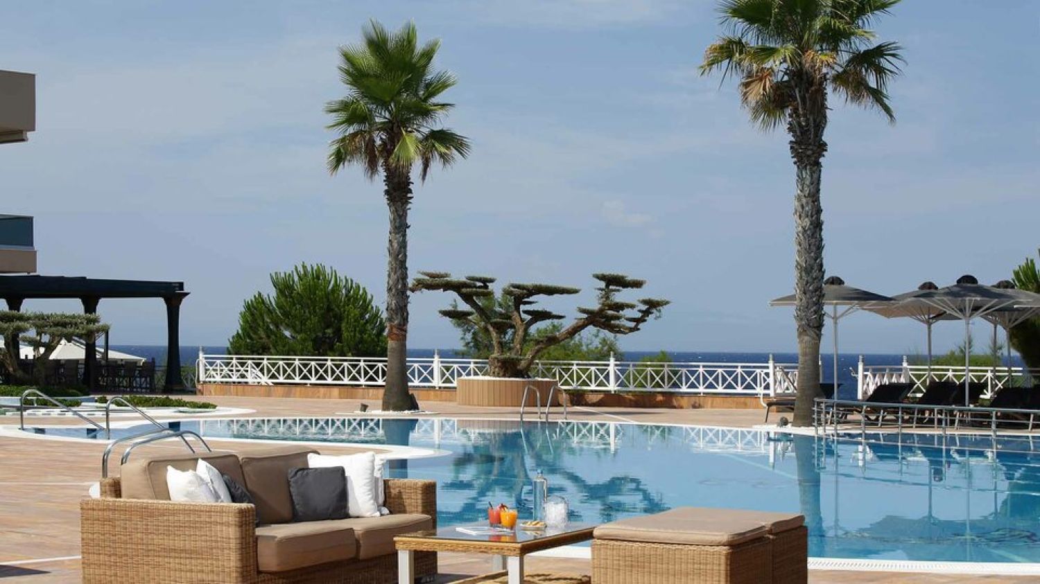 Azure of Aegean Sea, emerald greenery of dense forests and yellow gold of sandy beaches of Halkidiki Peninsula welcome you to antique paradise, the world of luxury and maximal relaxation. Welcome to the renovated Pomegranate Spa hotel! Formerly known as Portes Palace hotel, under the new ownership, the hotel has been totally renovated for the season 2013. Its new design harmoniously combines airy minimalist touch with delicate chic, original Greek flavour with up-todate hi-tech.