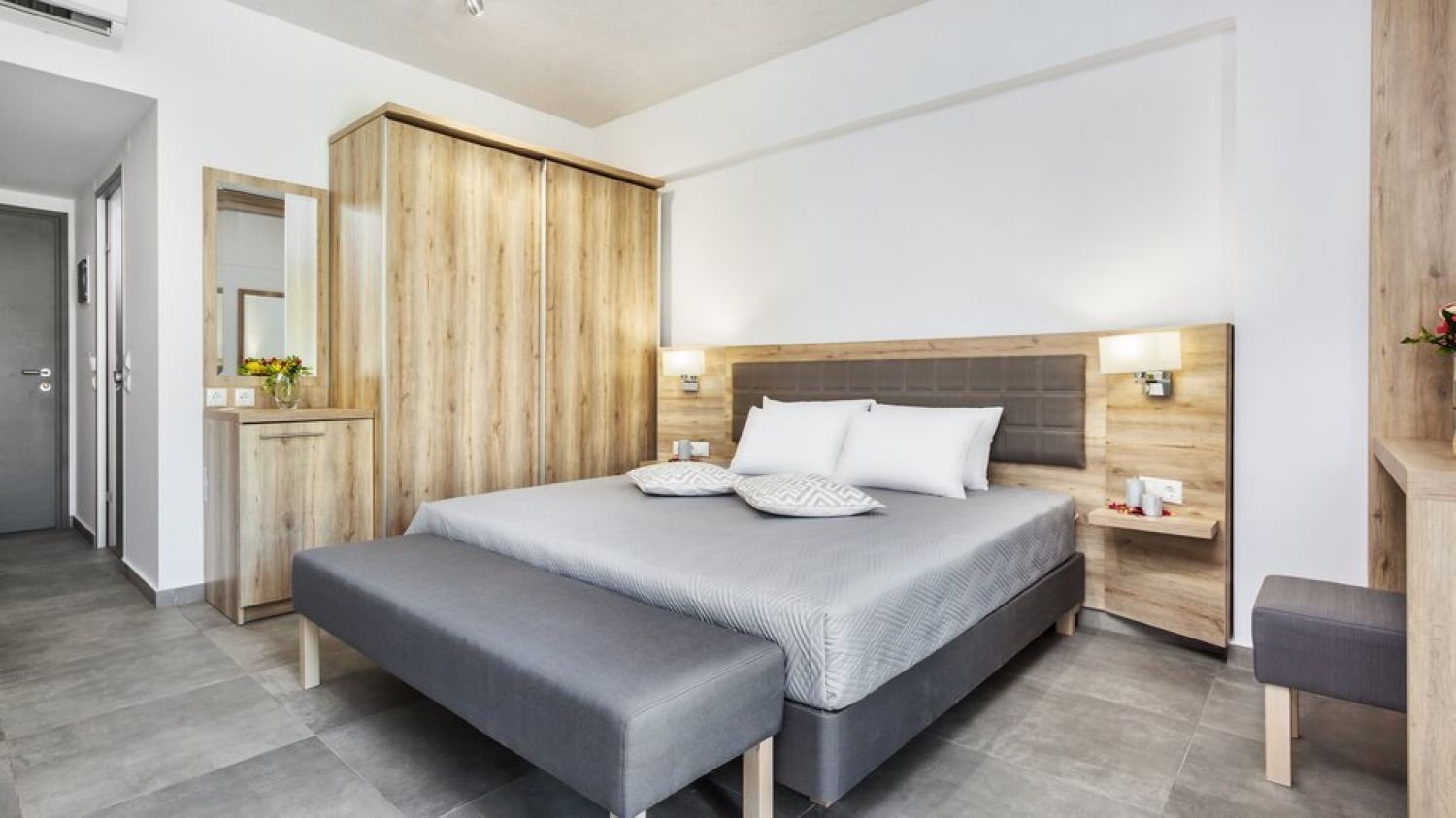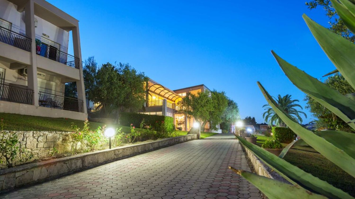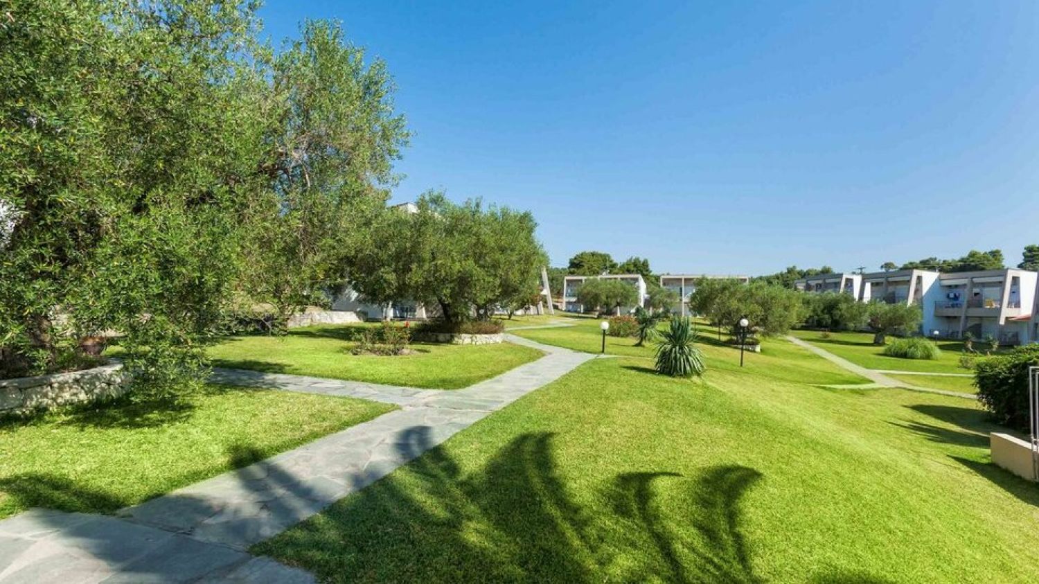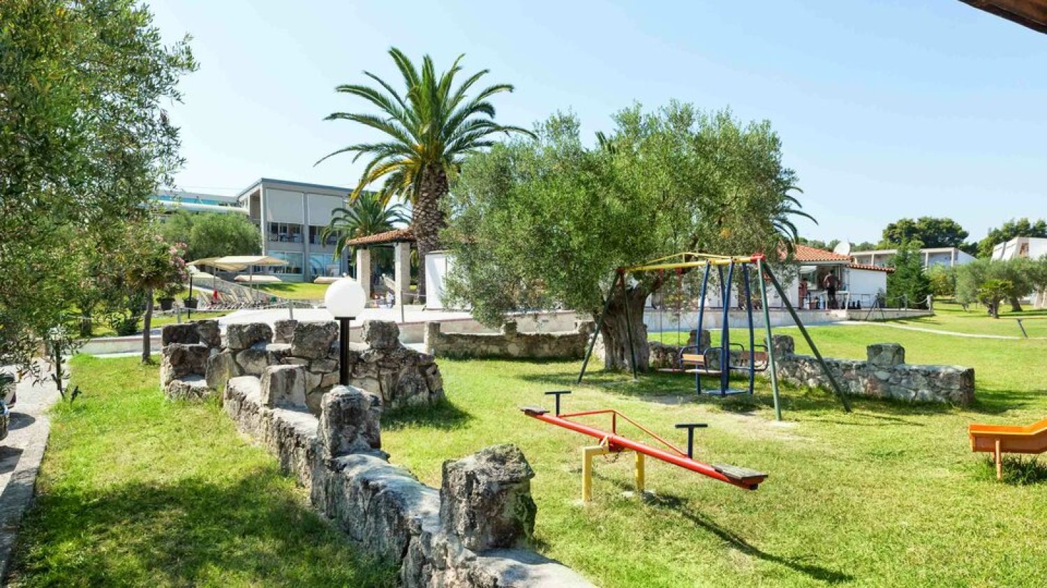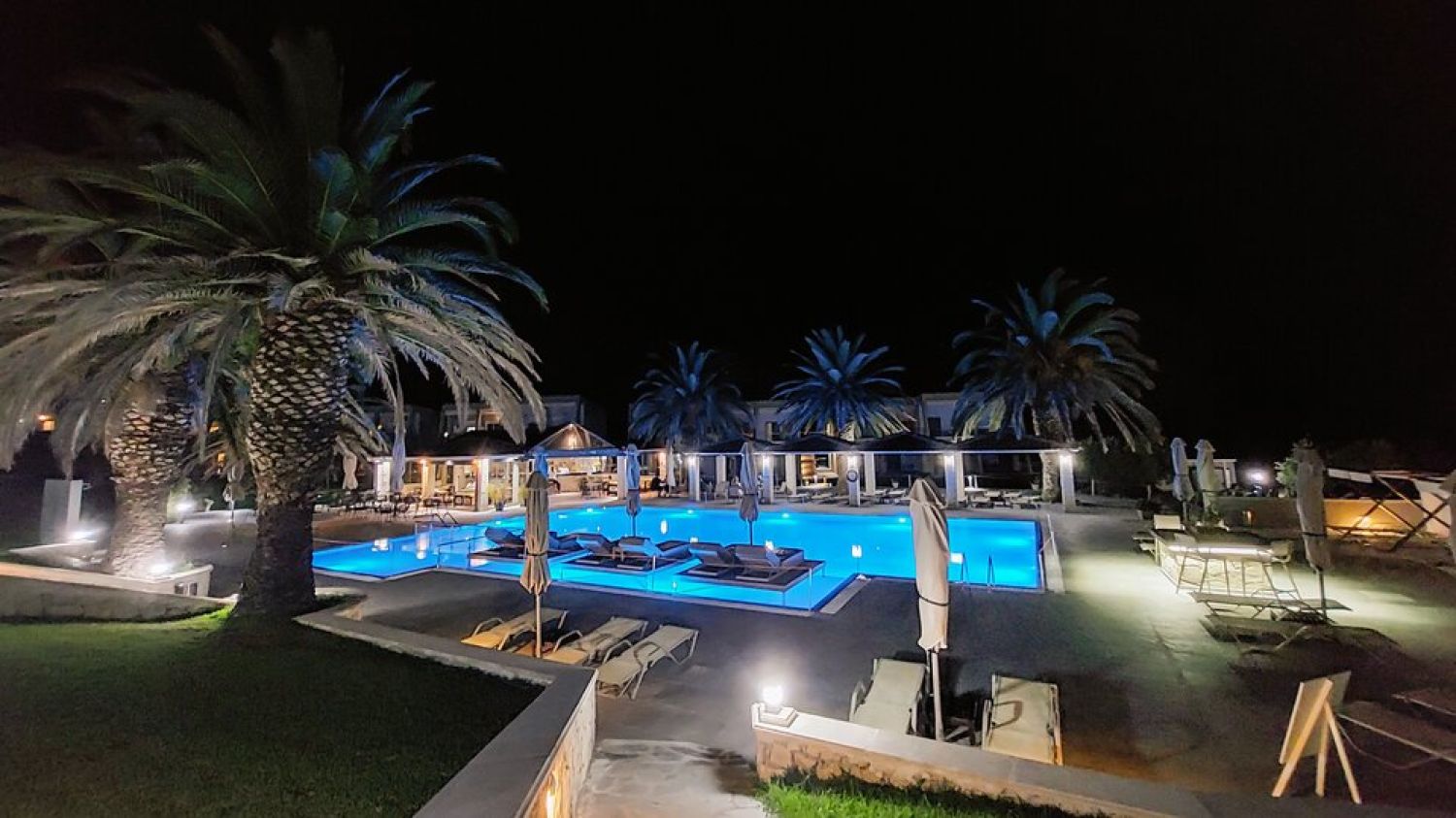 Nestled in one of the most laid-back areas of Kassandra, skirted by a lush pine forest, Iris Hotel is built on an area of 16 acres. Its 89 Rooms and 4 Deluxe Suites are positioned amphitheatrically, overlooking the pools and its large gardens, which are paved with grass, under the shadow of perennial olive trees, along with a variety of seasonal plants and large palm trees.Guests enjoy complimentary parking and breakfast, while the hotel features a laid-back buffet restaurant and an open-air bar. Moreover, the outdoor pool, dedicated kids’ pool, and a snack shop add to the leisurely ambiance. Beyond these, the property boasts lush gardens and sports courts, ensuring a well-rounded and enjoyable stay for all visitors.