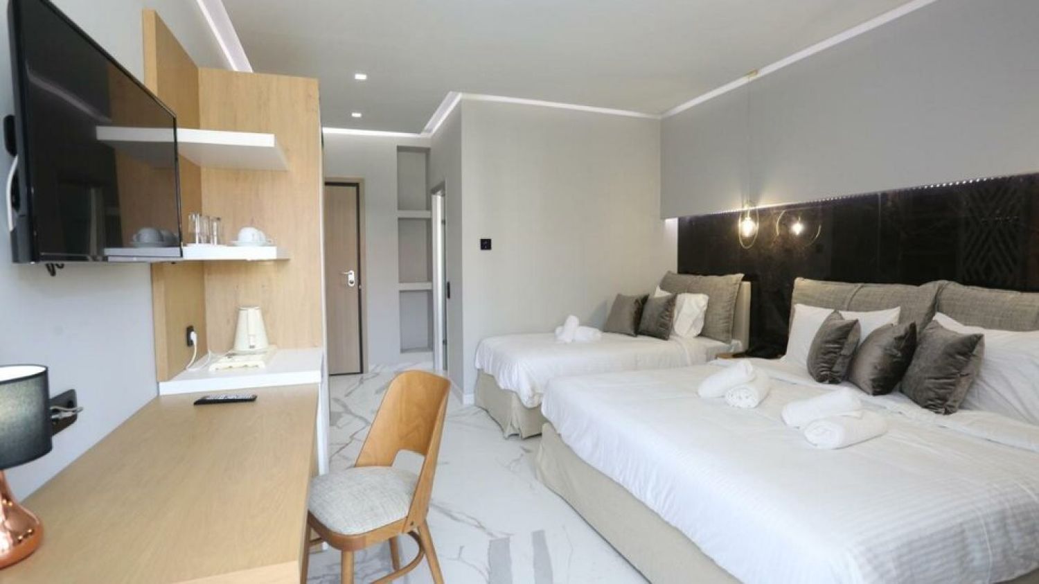 A family hotel set just off the main road of Hanioti, only 350 metres from the shops and 400 metres from the nearest beach, with tempting sands and inviting waters... Tropical is a 4-star, family run hotel, withing the walking distance of many attractions. The hotel consists of a 4-storey building ovelooking the outdoor pool with sunbeds and a pool bar. After extensive renovations in 2019, Tropical is featured as a 4-star hotel, with parking spaces, most fully renovated rooms, renovated reception, restaurant, pool area. It’s great location offering a world of pleasure with many alternatives with possibilities to explore the area and visit some of the cultural as well as entertaining sights.