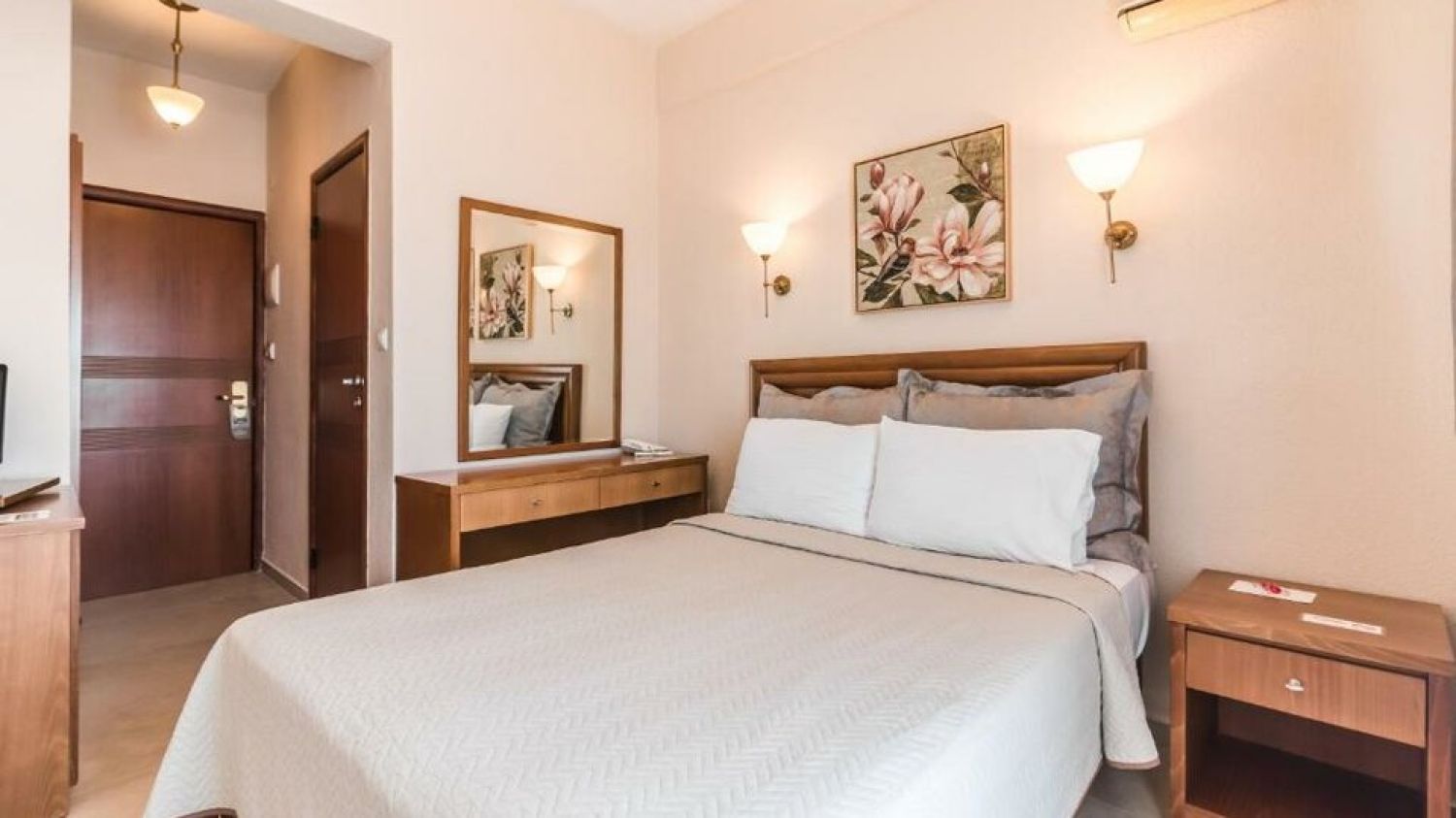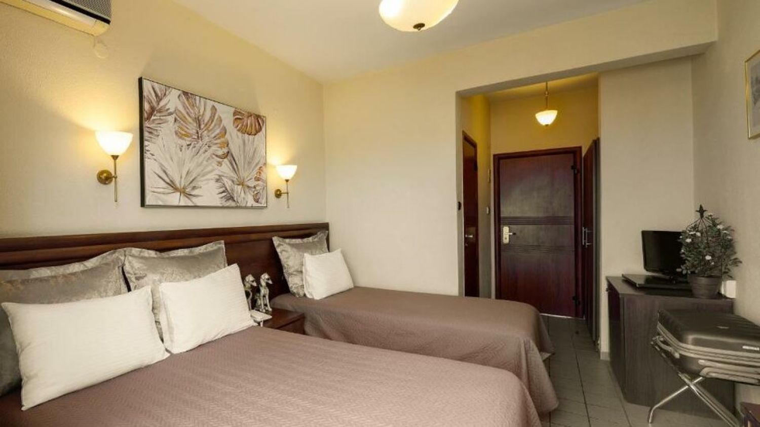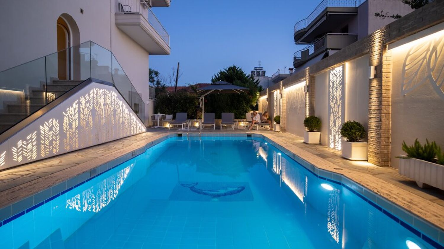 Explore the charm of Alkyonis Hotel in Nea Kallikratia, a lovely town on Halkidiki's Kassandra Peninsula. Just 25 kilometers from Macedonia Airport and 35 kilometers from Thessaloniki, this 3 star hotel boasts stunning views of the Thermaikos Gulf and Mount Olympus. Conveniently located 200 meters from the beach, Alkyonis Hotel is your year-round destination for relaxation and adventure. Whether you're into the inviting waters of Nea Kallikratia beach, city exploration, or discovering Macedonia's landscapes, this central spot makes it easy. Unwind by the peaceful outdoor pool, featuring comfy loungers and a laidback vibe, to elevate the essence of your rejuvenating holiday at Alkyonis Hotel.