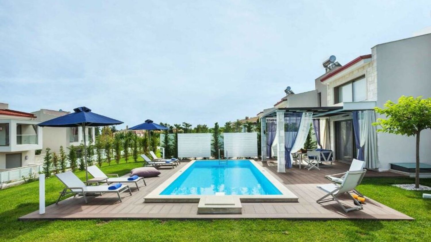 W Villas is a rejuvenating beachfront hideaway, right outside the cosmopolitan center of Pefkochori. Our exclusive collection of 10 Villas, offers superior accommodation within an ideal environment for genuine recreation: lush gardens and crystal clear sea water.