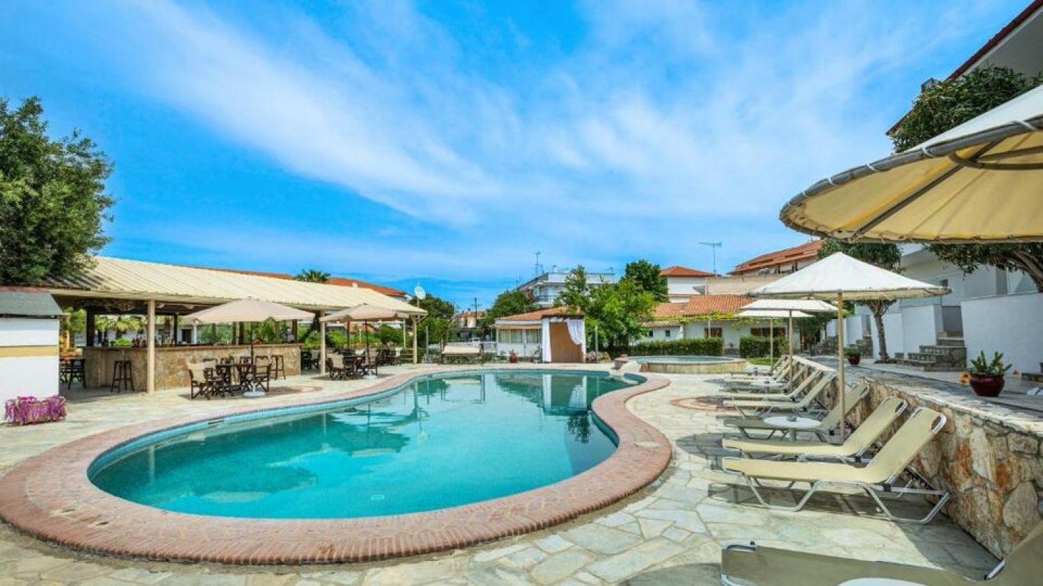 - Bars: pool bar: 10-18h, main bar Kassandra:18-01, beach bar Oasis:10-18