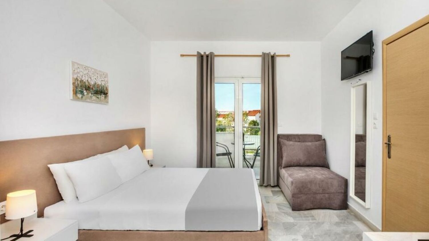 The accommodation at Nikiforos ensures utmost comfort, featuring air conditioning, complimentary WiFi, and convenient parking facilities. Catering to families, the establishment is child-friendly, boasting a complete playground and expansive gardens. Guests can unwind by the impressive, crystal-clear main pool while savoring coffee or cocktails throughout the day. Furthermore, a separate smaller pool dedicated to children ensures an enjoyable stay for everyone, creating an inclusive and delightful environment for all.