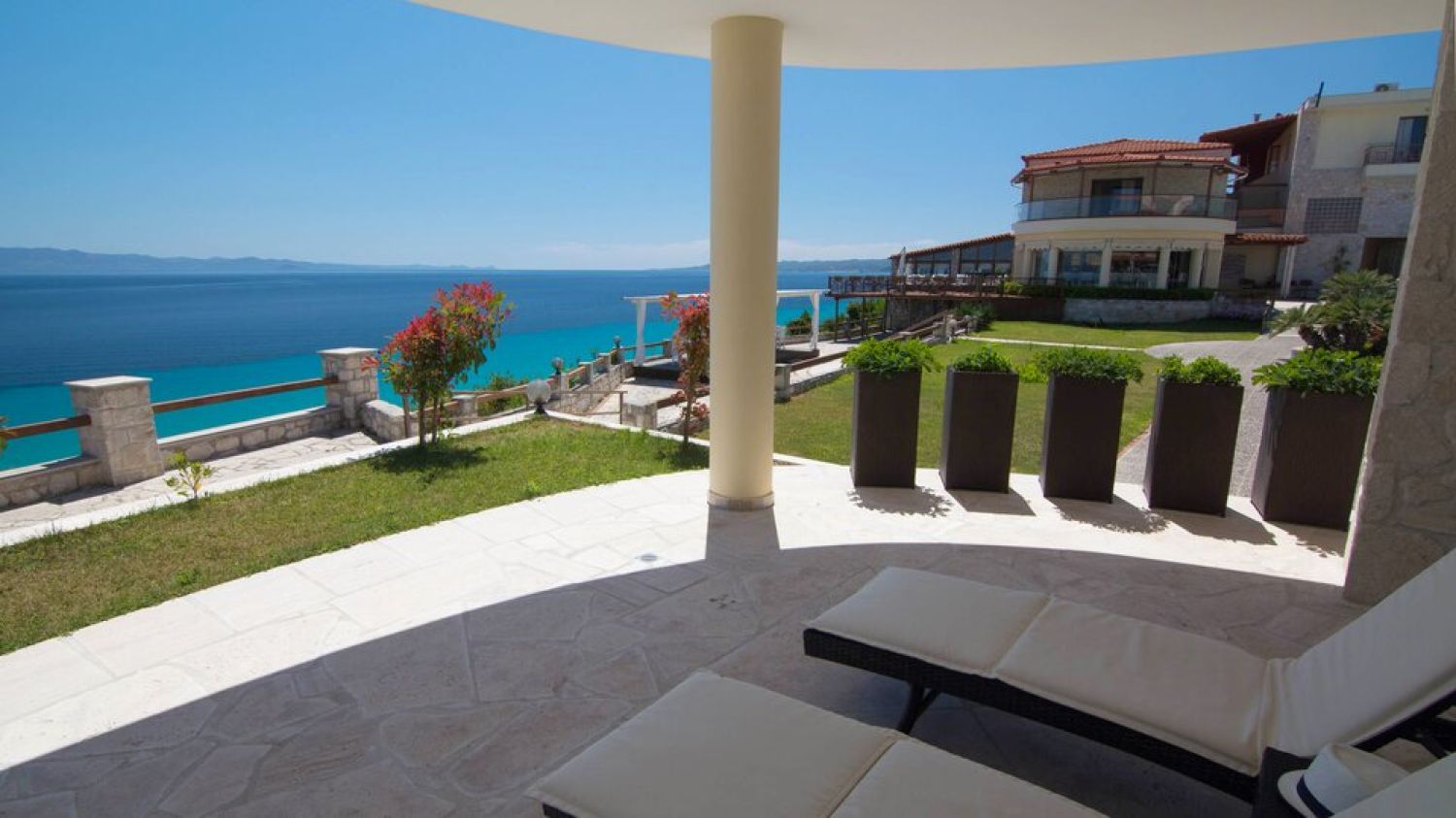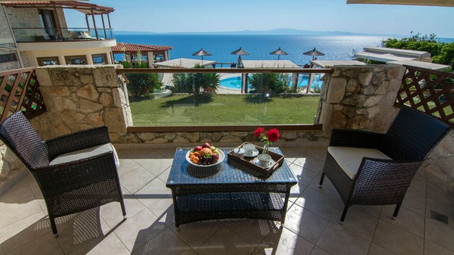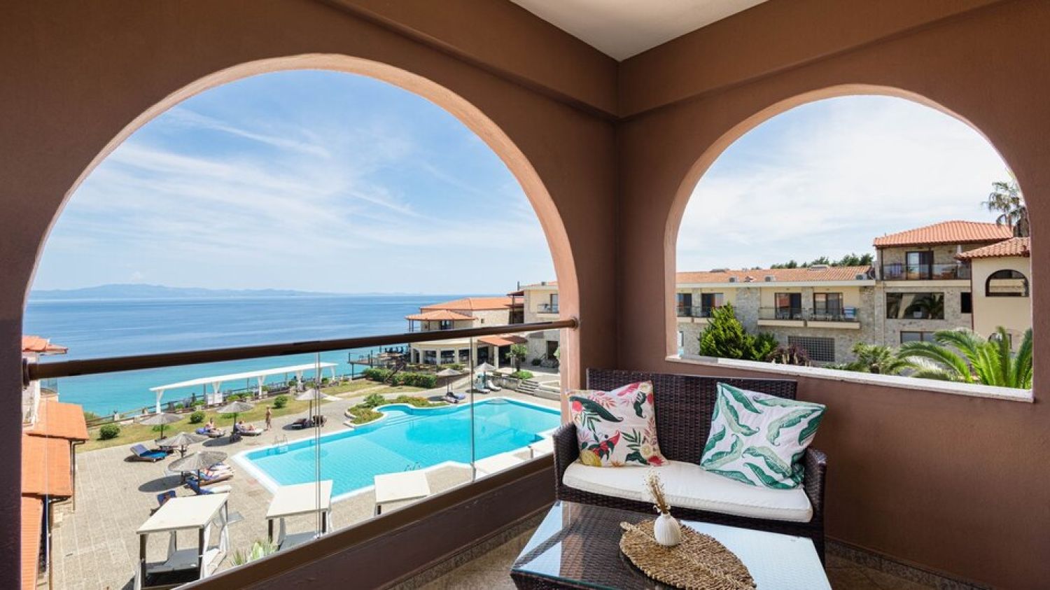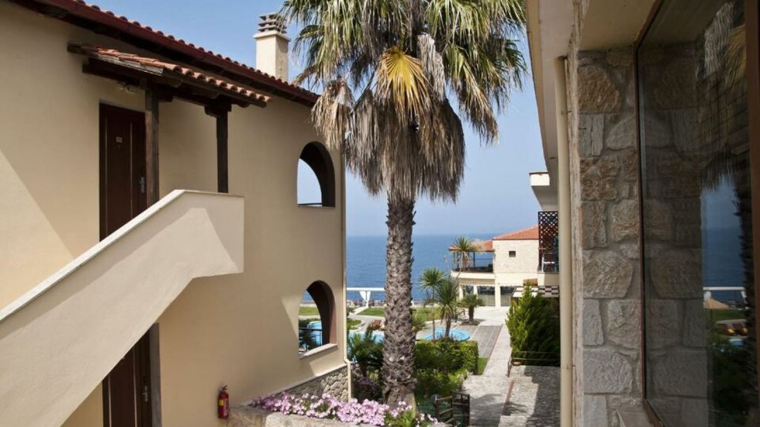 Nestled in an amphitheater on the hills, in the most beautiful part of the estate, 60 meters far away from the seaside and with a unique view to the endless blue of Toroneos Gulf and the Aegean.Established in 1997 with 22 rooms, Blue Bay Hotel marked its inception alongside the formation of Blue Bay S.A. In 2008, a significant expansion ensued, enhancing the hotel with new facilities and luxury services. Presently boasting 69 rooms and suites, each offering breathtaking views, our vision, guided by the Tsapanidis family, was to craft a haven of discreet luxury within a cozy atmosphere, nestled in a unique natural setting.The apartments are built with natural stones, exactly like those that were found in the ancient village of Afitos, that is near the hotel. The attractive, inviting turqoise waters of Halkidiki are accessible by a pathway, at 60m distance. The traditional stone built picturesque town of Afitos is at 1.3km, while the Thessaloniki airport is at 75km distance.Blue Bay Hotel serves as the perfect retreat for couples seeking serene relaxation, peaceful repose, and intimate moments amidst the captivating Greek summer ambiance.
