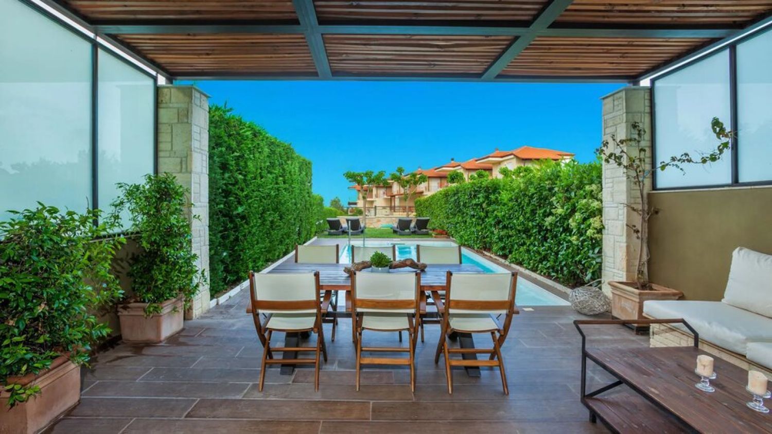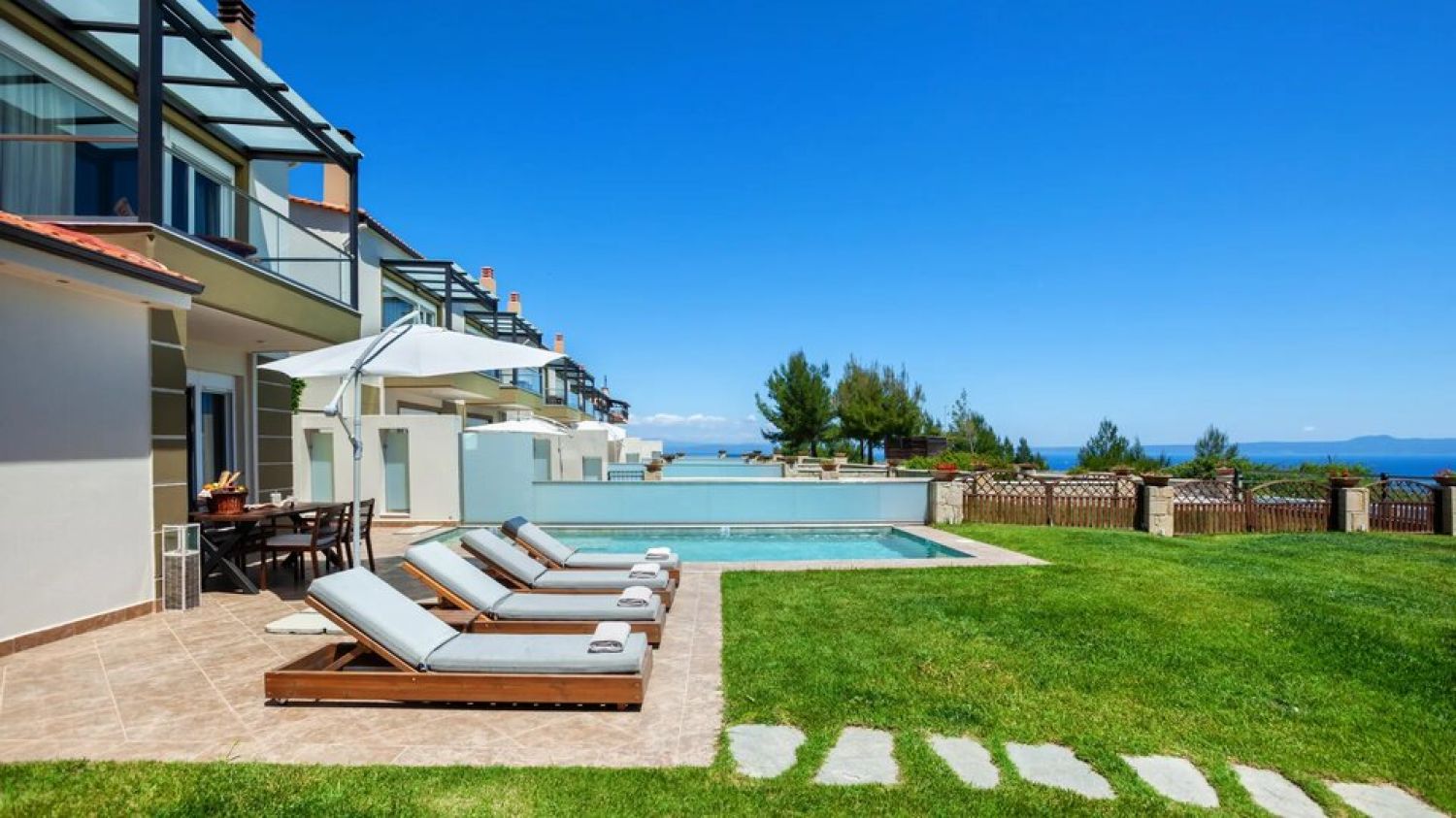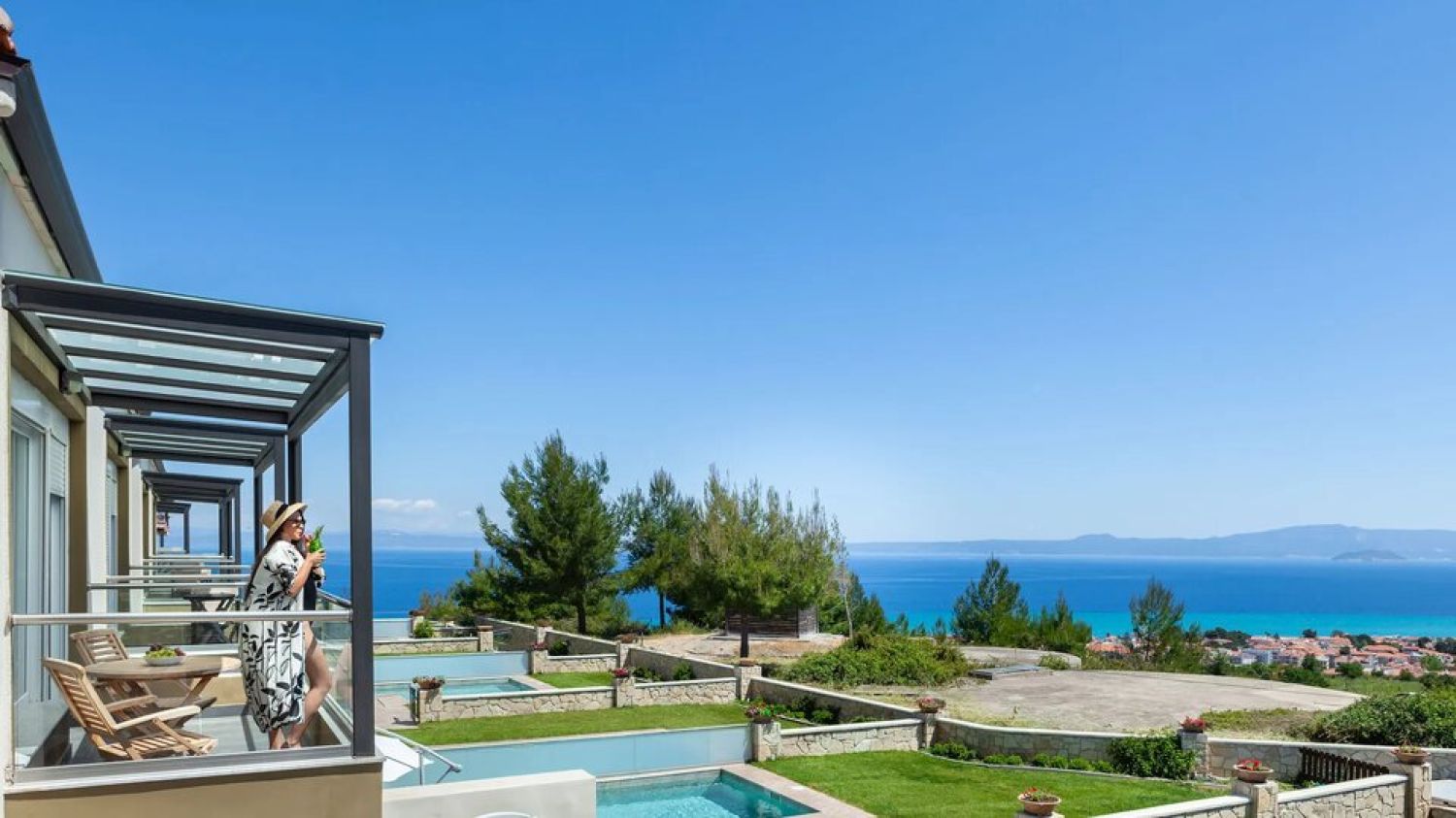Welcome to our captivating complex comprising 11 luxurious villas, nestled atop a hill that offers an inspiring view of the Toroneos bay.