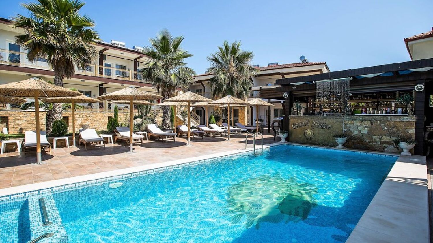 Welcome to Greek Pride Hotels, an embodiment of natural beauty and authentic Greek hospitality. Situated on the enchanting Chalkidiki peninsula, our hotels are nestled amidst sandy beaches, azure waters, and lush pine forests with a backdrop of the renowned Mount Olympus.Experience the charm of Paralia Fourkas village in Kassandra, where unforgettable holidays. Our family-operated hotels, supported by a dedicated staff, are poised to deliver an unparalleled holiday experience.The hotel consists of three buildings and includes 43 rooms. There are standard double, standard triple rooms as well as family suites with a separate bedroom, equipped with a kitchenette. The hotel is located 300 m from the sea and 200 m from the center of Paralia Fourkas village.